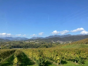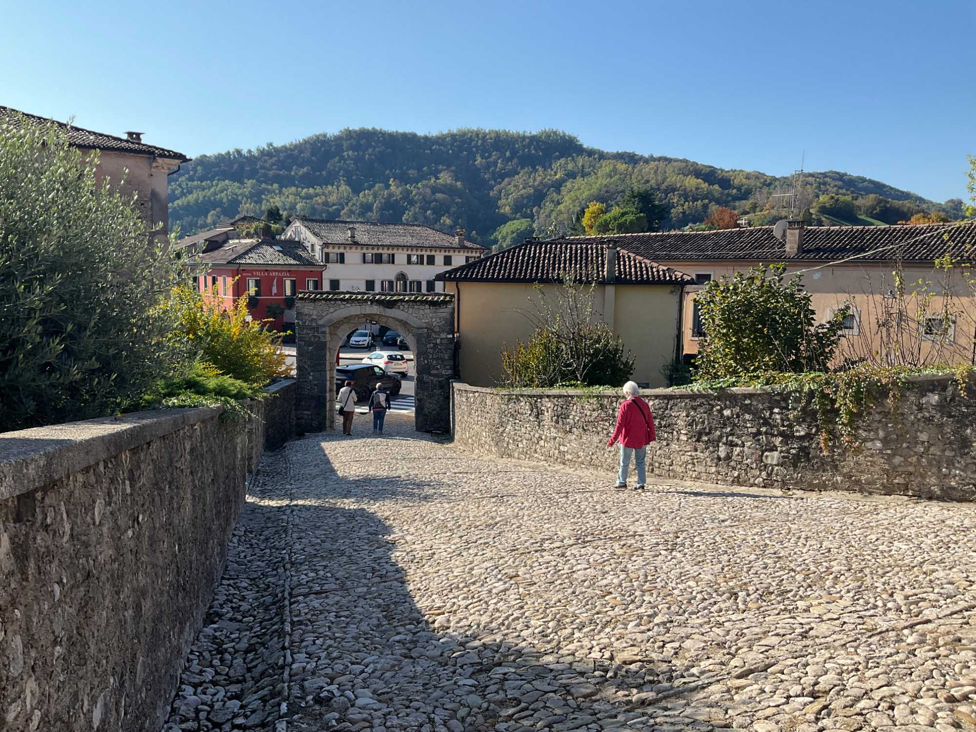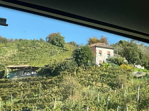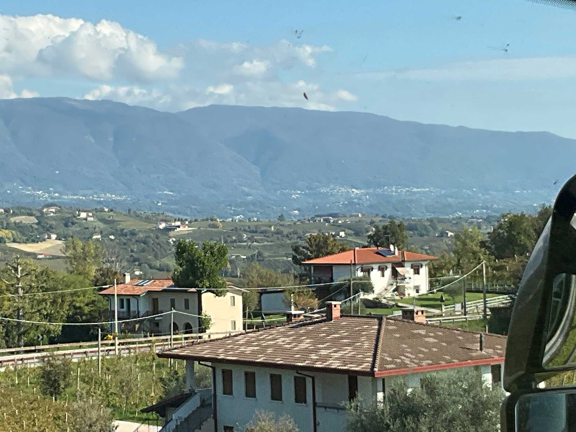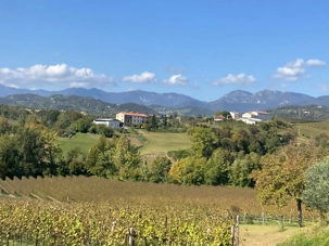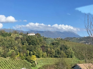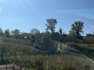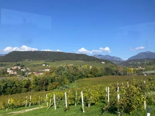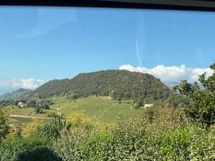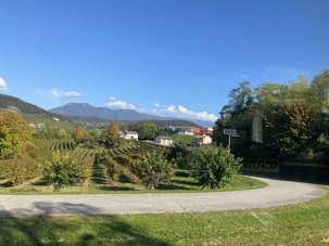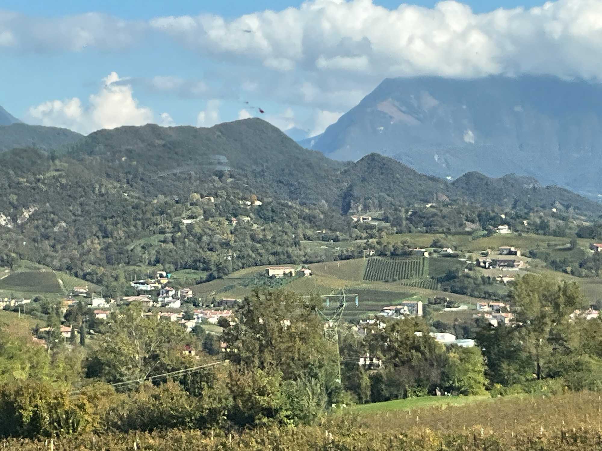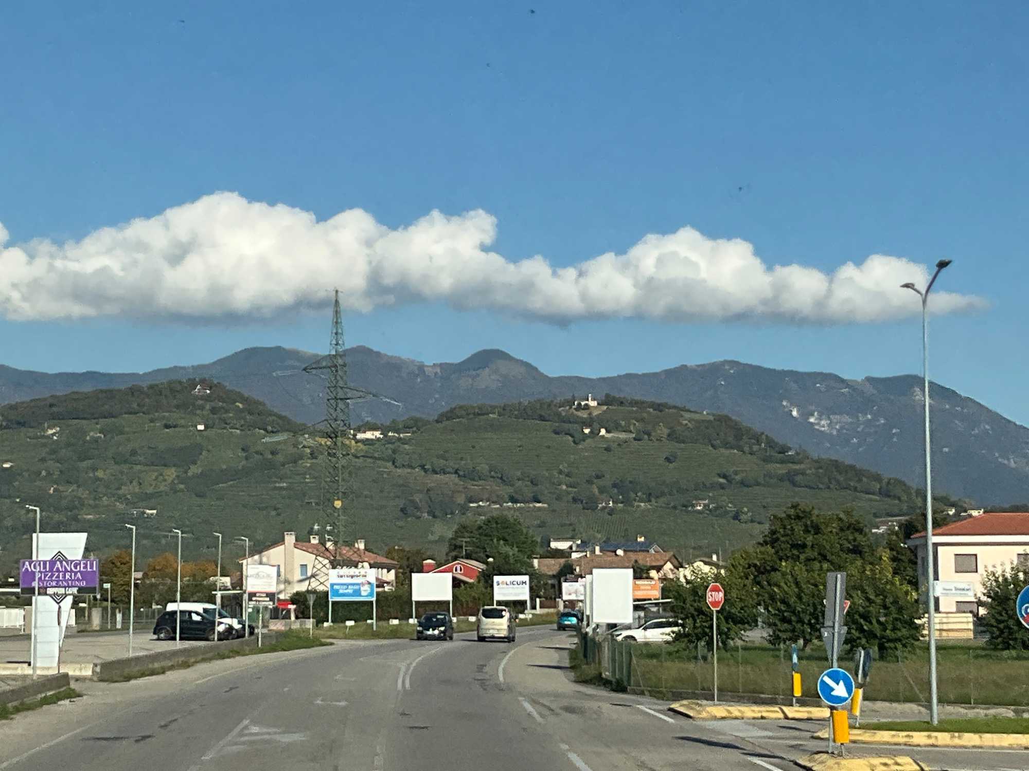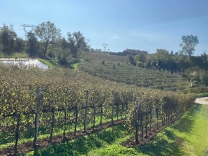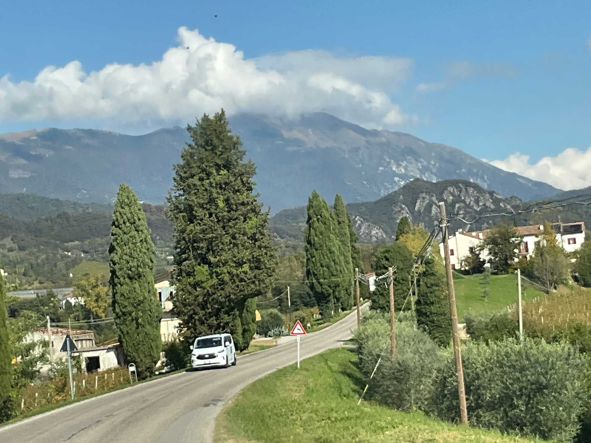 En passant par Spresiano, nous sommes dans les Pré Alpes mais déjà on voie apparaître les collines. C’est ici, entre la plaine et les Alpes, que le terrain favorise les vignes pour le sépage appelé Glera, maître suprême du Prosecco. D’ailleurs c’est également ici qu’on voie notre première affiche « Conigliano », l’un des deux villages entre lesquels se situent officiellement les Collines du Prosecco.