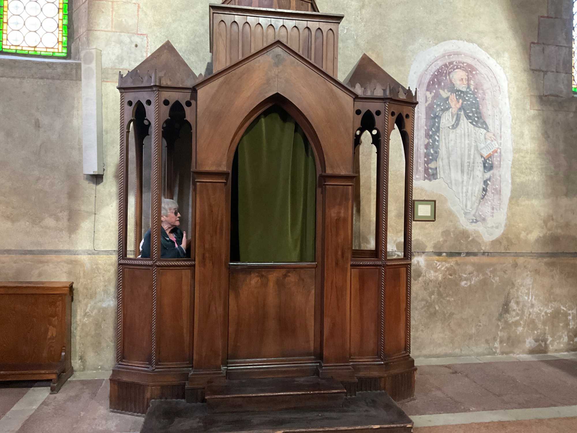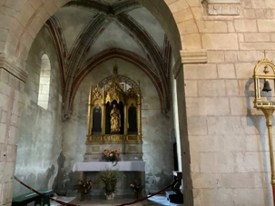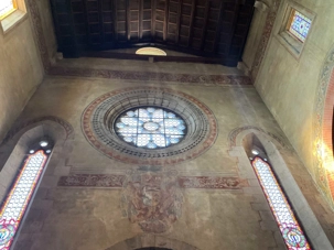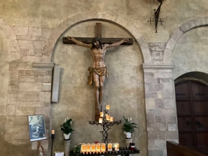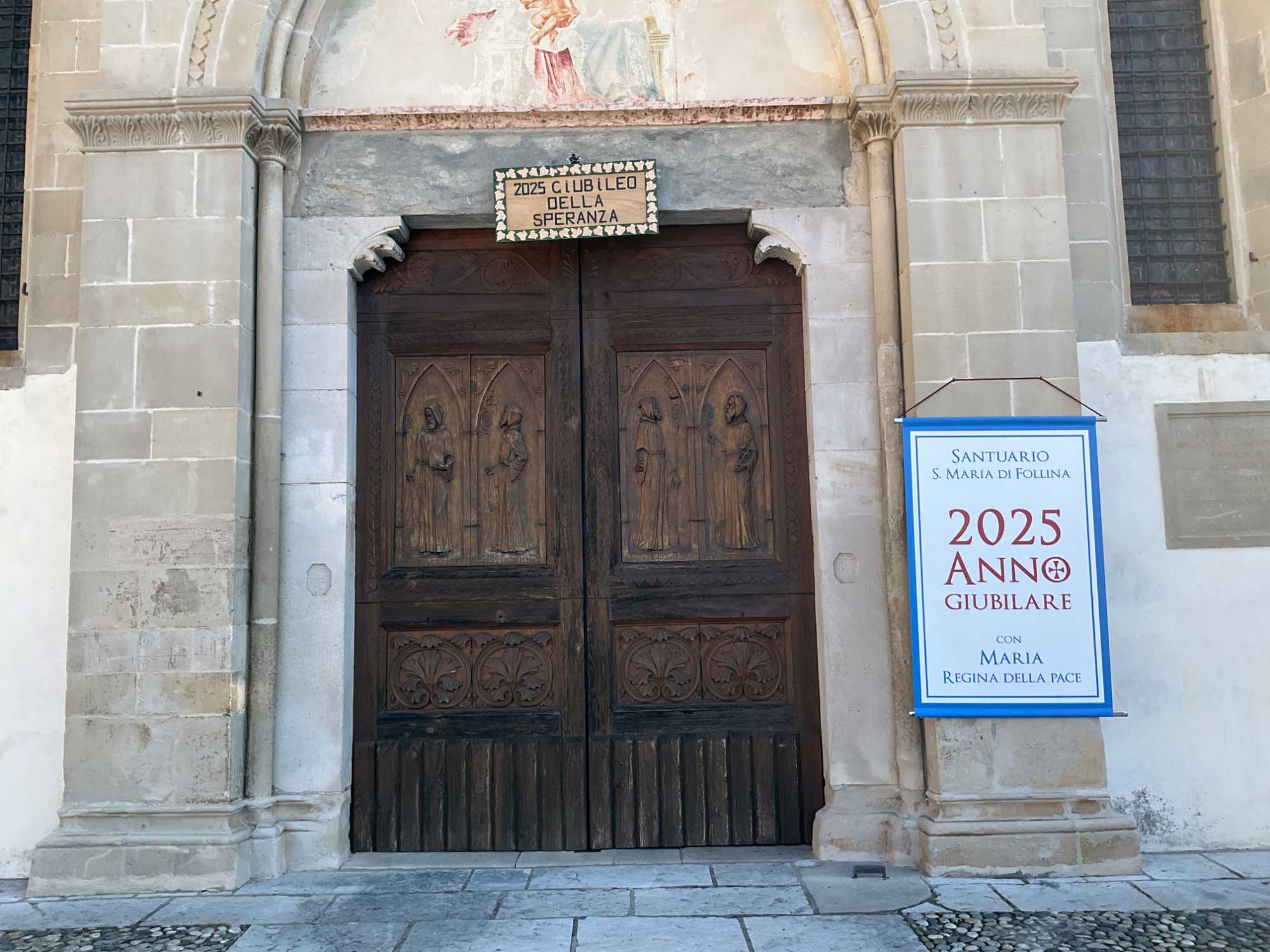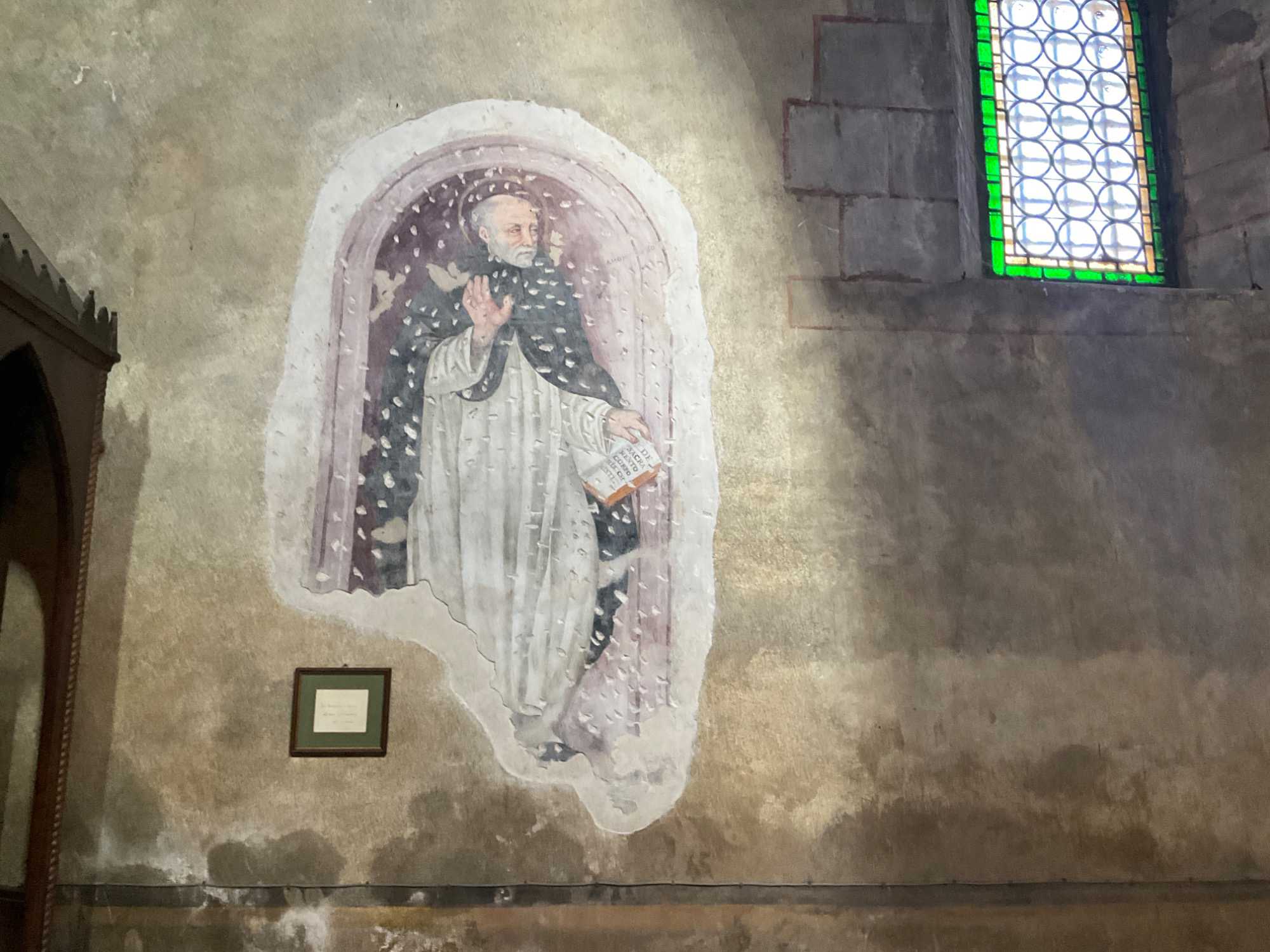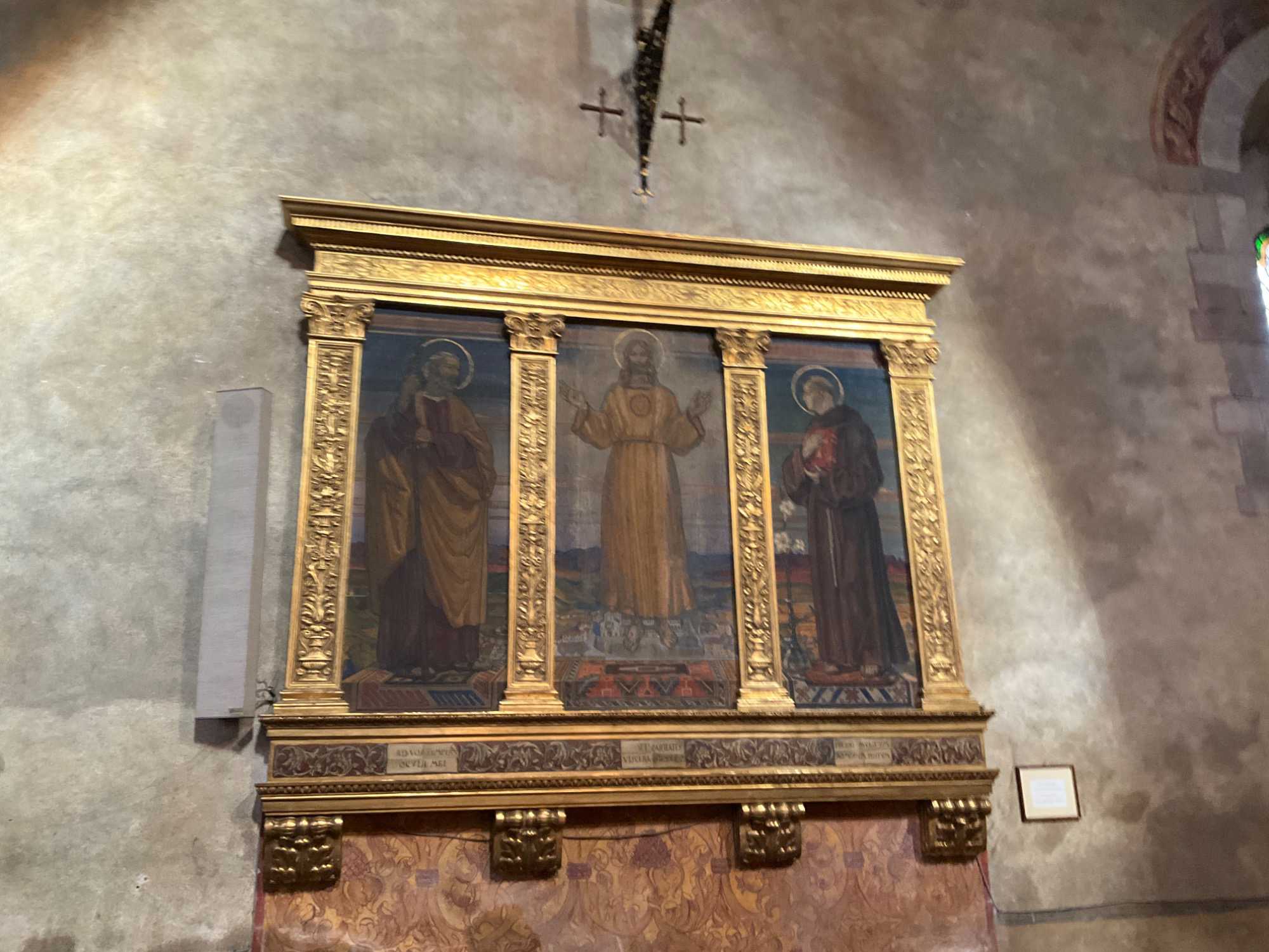 On s’arrête à l’un de ces petits villages de carte postale, Follina, pour y visiter un lieu religieux, une ancienne abbaye cistercienne de Santa Maria de Follina. On relate qu’il y avait eu une fondation bénédictine. Fondée en 1146, elle est fermée en 1771. Le démarrage probable de la construction du monastère aurait débuté en 1154. Vous imaginez, il y a pratiquement un millénaire. En 1229, le couvent a eu une vocation hospitalière. Puis les cisterciens sont remplacés par des moines camaldules (sorte de sous-branche des bénédictins). Par la suite, le cloître a été réparti entre plusieurs familles qui y construisent divers bâtiments. Puis en 1819, on lègue l’abbaye à la municipalité afin que celle-ci en fasse la paroisse de la ville. Durant la Première Guerre mondiale, l'abbaye s’est retrouvée au cœur des combats et a été fortement endommagée. Mais aujourd’hui, on a pu voir une restauration de grande ampleur, non seulement des dommages de la guerre, mais des destructions et pillages ayant affectés l'édifice depuis 1771, et tous ces travaux menés par des mains de maîtres… des communautés religieuses entre 1919 et 1922. À l’extérieur se niche la statue (1915) de la « bienheureuse Vierge de Follina ». La façade de l'abbatiale est de style roman. Ces ordres religieux nous laissent, de par leur mode de vie modeste, une église dénudée à l’intérieur, aucune décoration car, dit-on, notre regard doit se diriger vers le ciel…vers Dieu. Ce bâtiment est de style gothique italien. Des bénévoles assurent une présence qui nous permets de visiter la cour intérieure soit le cloître et sa fontaine,