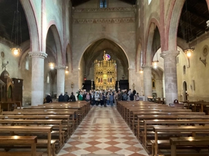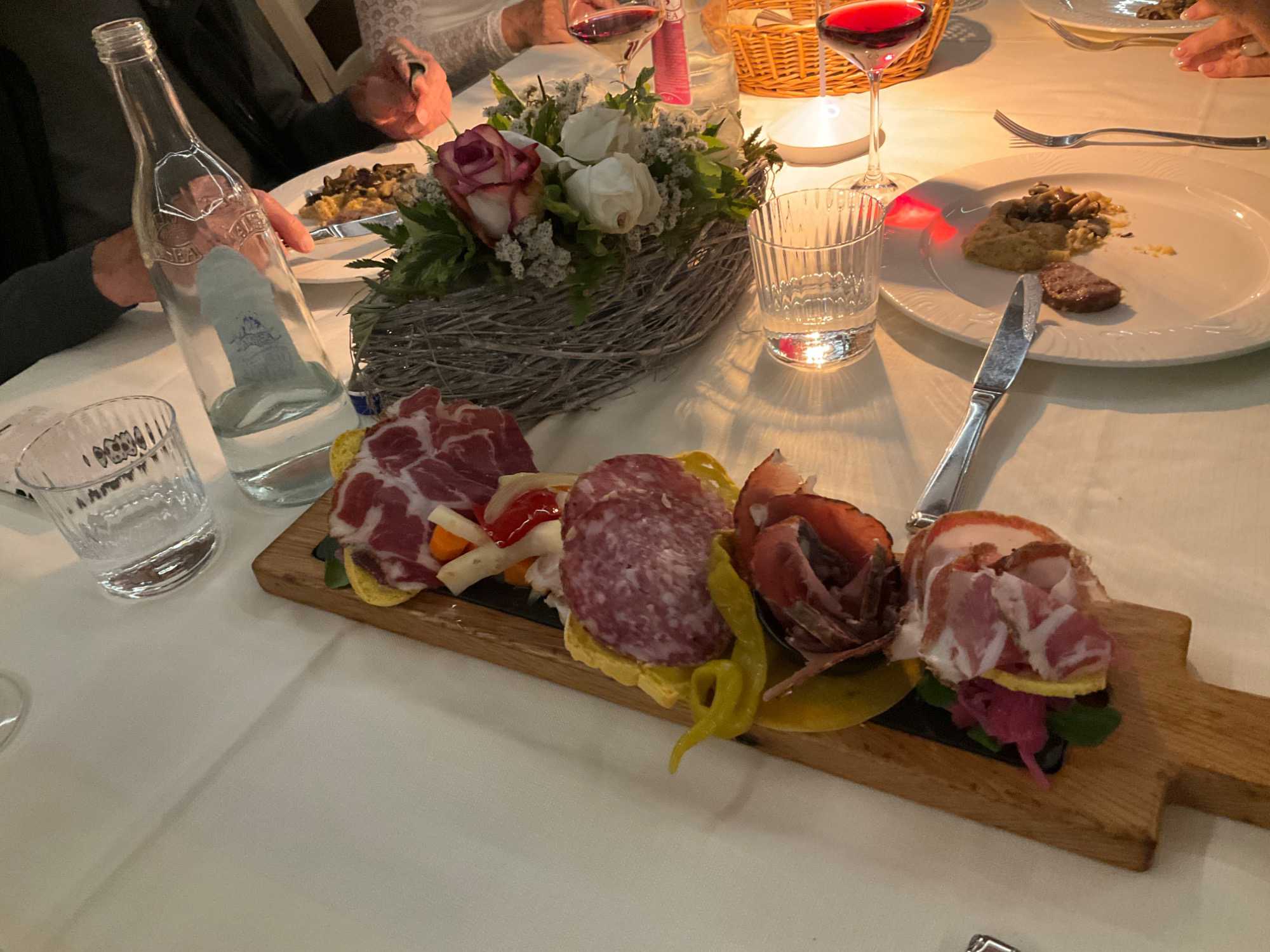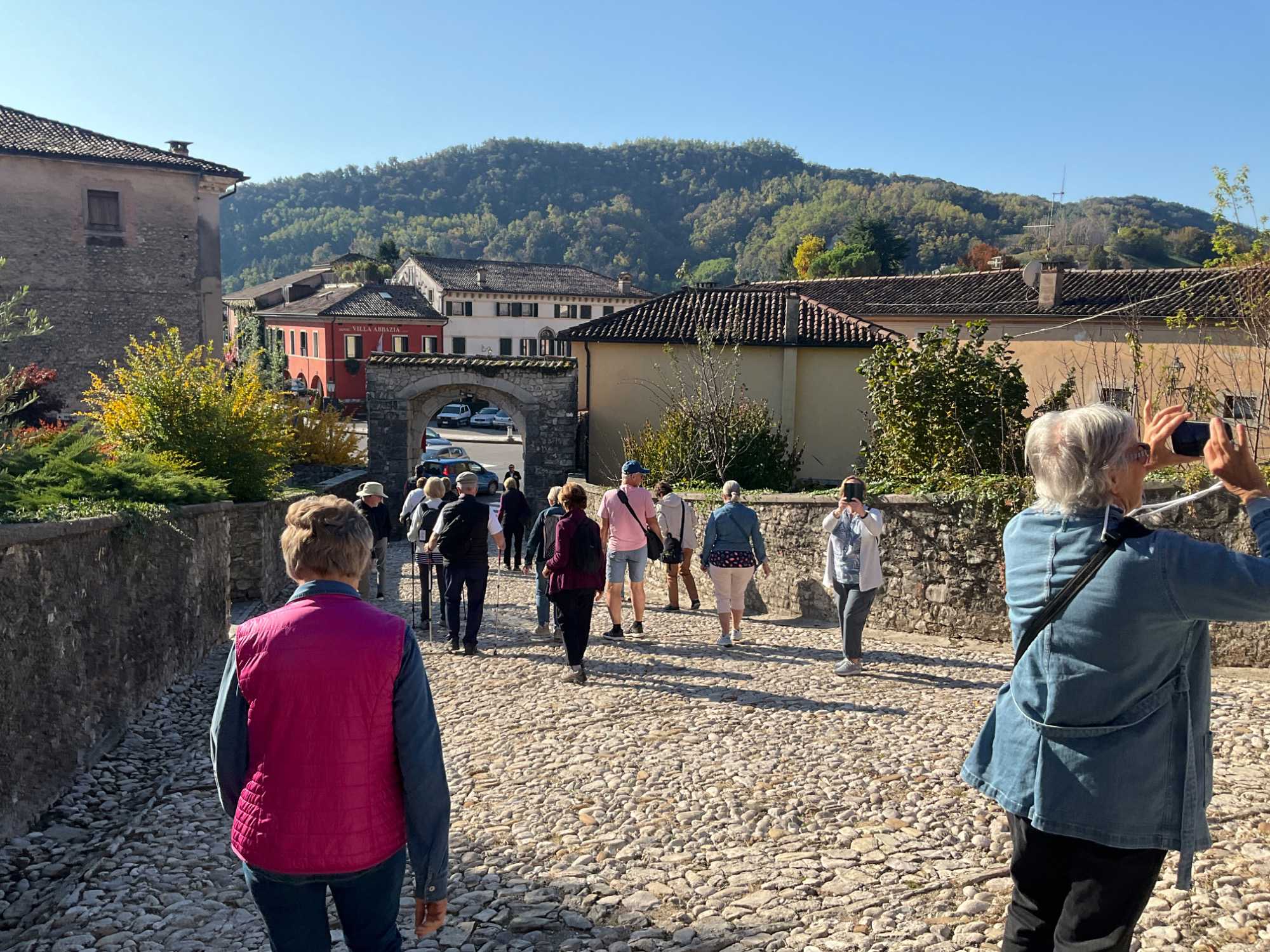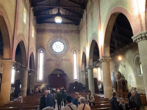 Mais avant, il y a un dernier souper de groupe dans un agrotourisme appelé « La coda dell gatto », La queue du char! Quelques minutes pour s’y rendre et nous voilà en pleine campagne pour goûter les produits du terroir « de la terre à la table ». Une entrée de polenta, champignons, lardons et radichio dans une sauce succulente est suivie d’une planche de salami et de légumes marinés, un risotto (on est déjà rendu au troisième service), puis un risotto et comme mets principal de la pintade et même si vous n’avez plus faim juste lire ces lignes, sachez qu’on a tous enfilé le mille-feuilles qui était un vrai péché! Mamma mia! Quel souper et tout ça dans un chaleureux restaurant typiquement italien genre table champêtre du Québec avec un service impeccable. Quelle belle façon de se dire « arrivederci »