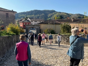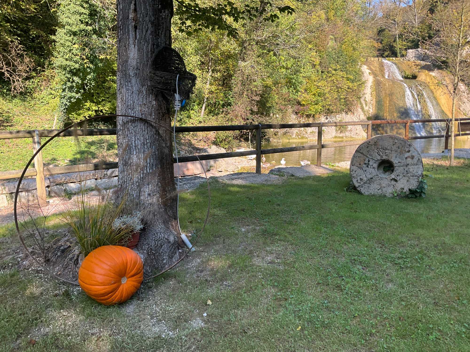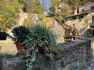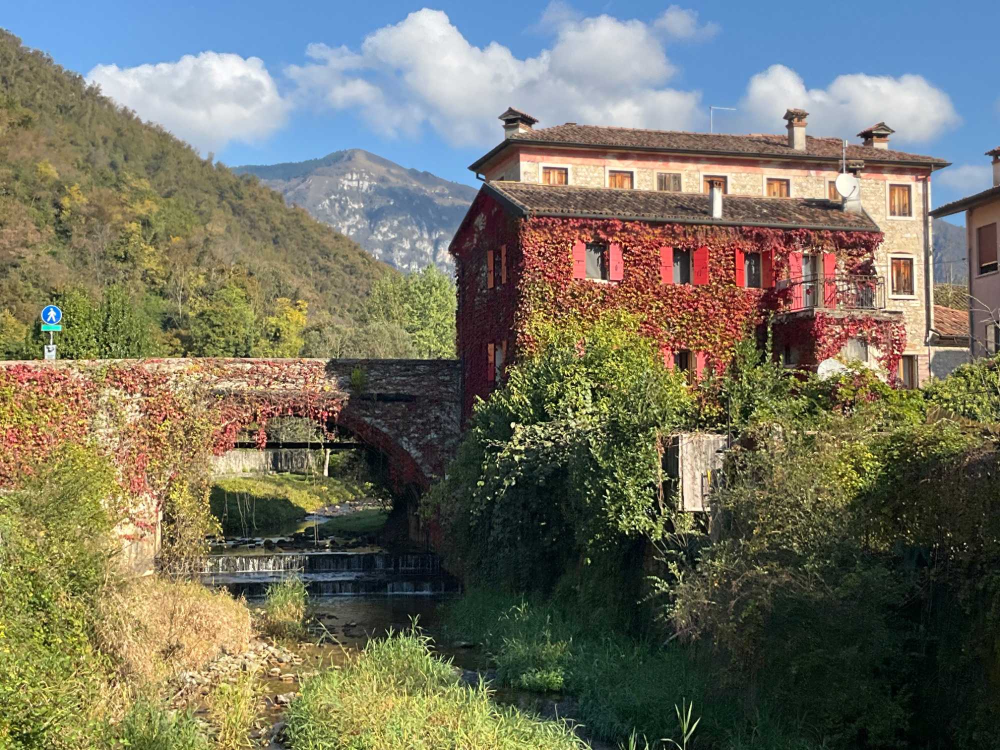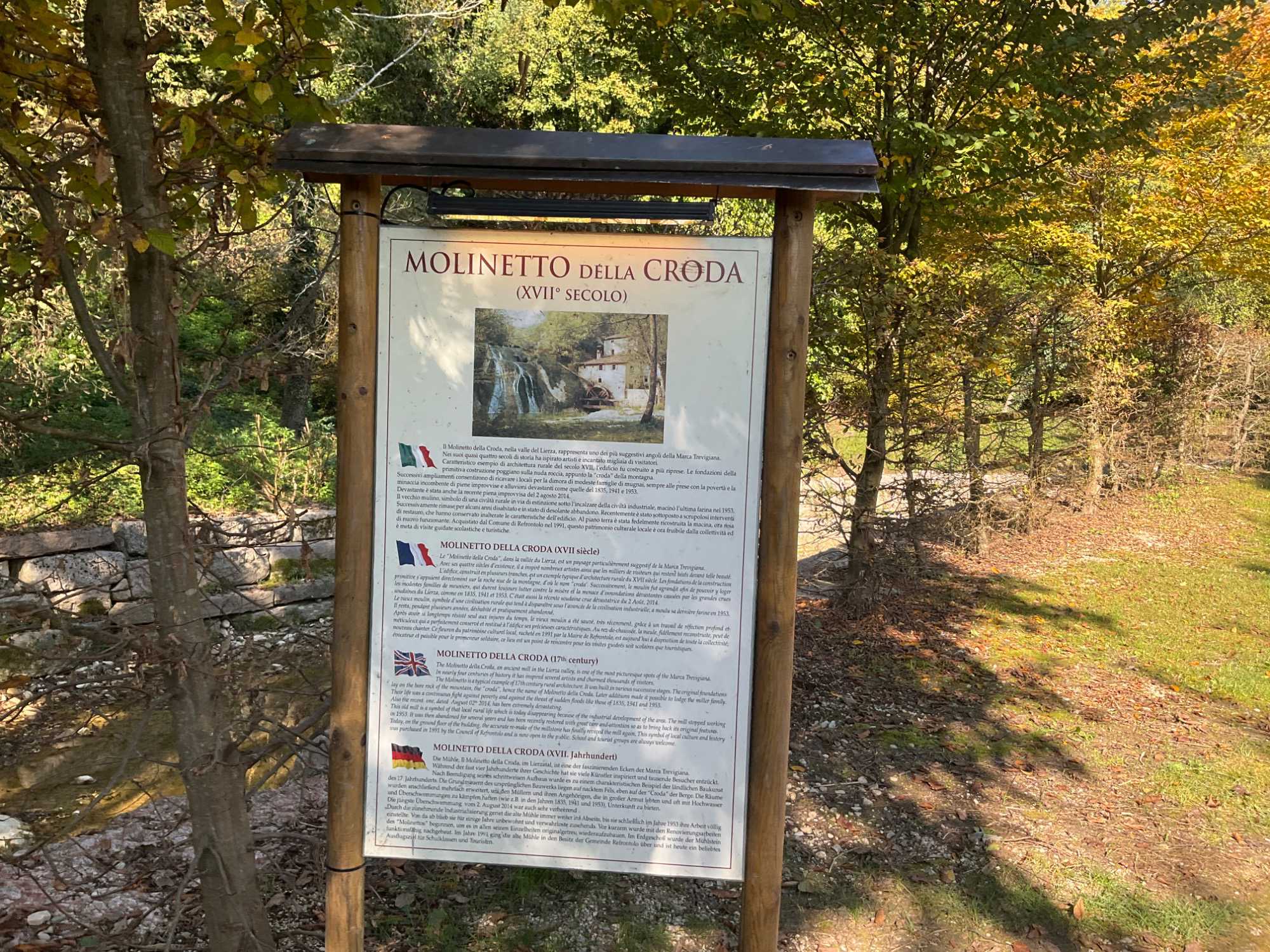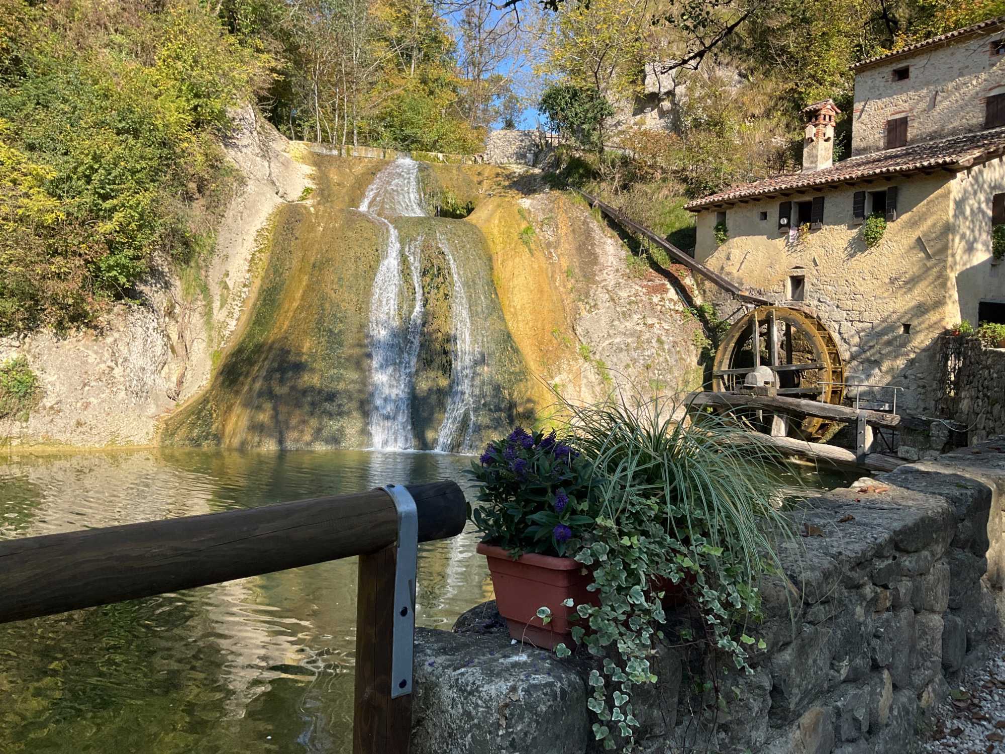Tout près de là, à Refrontolo se cache un ancien moulin des années 1600 appelé Molinetto della Croda, juste au pied de la cascade du torrent Lierza qui a l’allure d’un voile de mariée. Il est un des rares moulins à eau en activité qui a su conserver son charme. Ce dernier se positionne sur un site enchanteur, auquel se dresse son immense roue et, quelques oies lors de notre passage, notre coup de coeur! On a pu apprécier les caractéristiques de l'architecture rurale du XVIIe siècle. Des informations confirment que le bâtiment a été construit en plusieurs étapes. Les fondations de la construction originale reposent sur la roche nue, précisément la « croda » de la montagne. On apprend que des agrandissements ultérieurs ont permis de créer des logements pour des familles modestes de meuniers, (l’histoire ne dit pas si les familles étaient composées de plusieurs enfants à cette époque comme les familles québécoises) toujours aux prises avec la pauvreté et la menace imminente d'inondations soudaines et dévastatrices comme ils ont eu en 1941 et 1953. Il était intéressant d’entrer en contact avec ce symbole d'une civilisation rurale au bord de l'extinction sous la pression de la civilisation industrielle ici aussi. Il a moulu sa dernière farine en 1953. Par la suite, il est resté inhabité pendant plusieurs années et dans un état d'abandon. Mais on l’a remis au goût du jour grâce à des travaux de restaurations minutieuses. Les artisans ont fait un travail consciencieux qui a permis de préserver intactes les caractéristiques du bâtiment. Le moulin a été fidèlement reconstitué et… fonctionne à nouveau. Bravo!