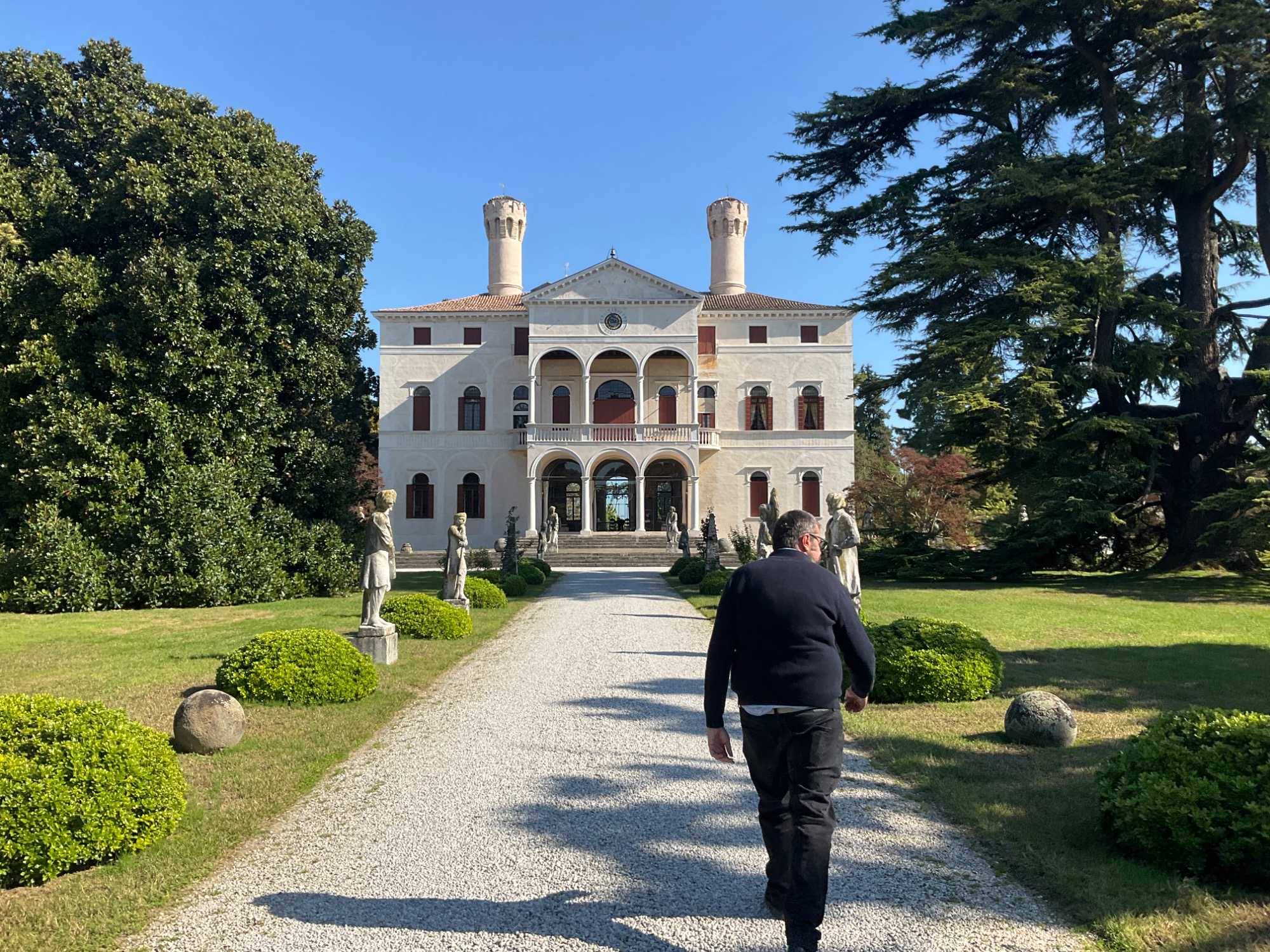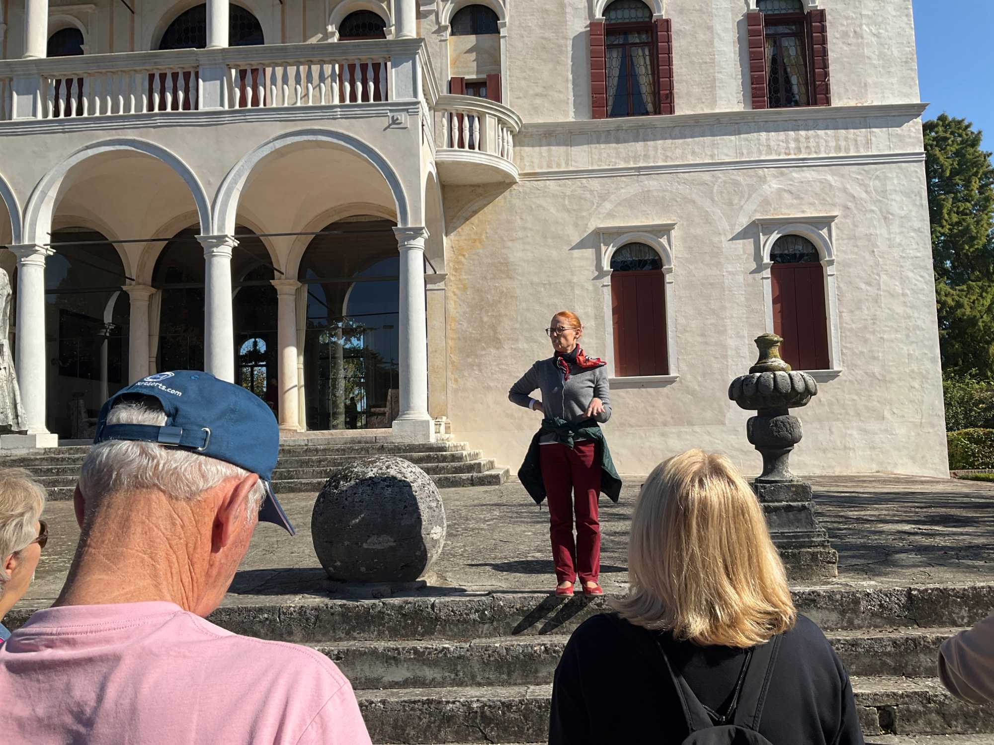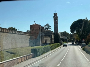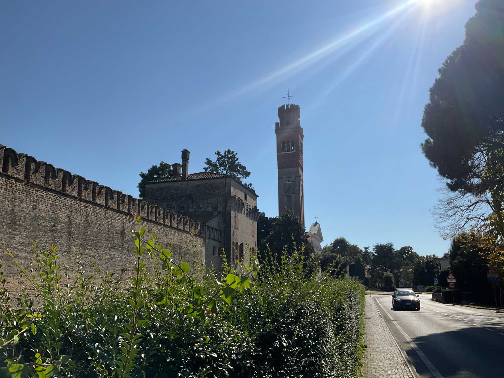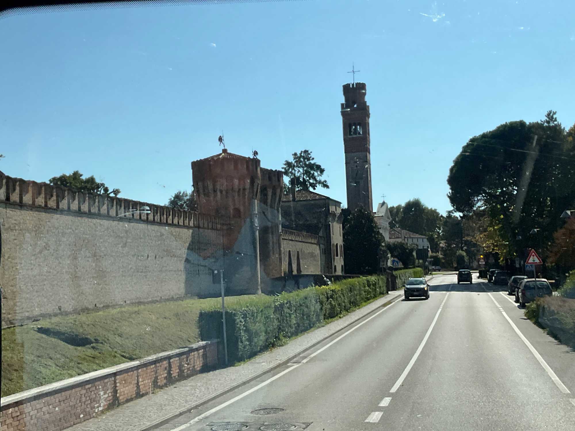 Chacun des petits villages est accompagné d’une allée d’immenses platanes. Au lieu d’être un tapis rouge qu’on déroulait pour nous, c’était…un tapis vert! En Vénitie les paysages changent et les anciennes villas de campagne des anciens nobles font partie du décor. À Fossalta di Piave, l’église avait tellement de pouvoir politique, et religieux que son campanile est au moins deux fois plus haut que l’église. Faut dire qu’en sonnant les cloches, c’était la façon de communiquer avec le peuple; le what’s App de l’époque quoi! Le village de Zenson dans Trévise doit sa réputation à sa salade rouge (radichio) avec lequel on prépare aussi le risotto.