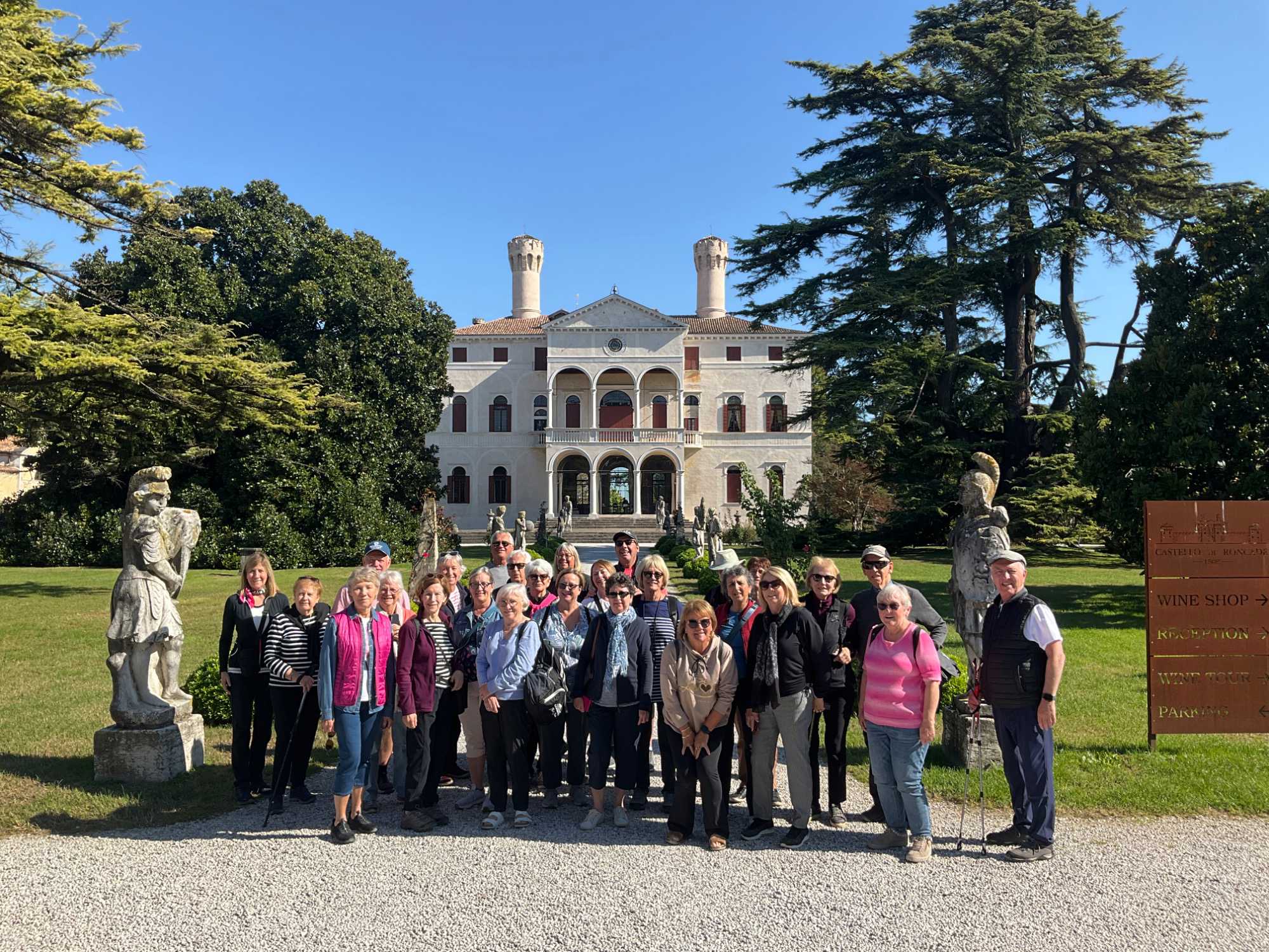Je crois bien que cette dernière journée va vous plaire…autant qu’à nous. Je sais qu’il est probablement un peu tôt en journée pour parler de ça mais pensez que nous, on a eu toute la journée pour faire une superbe balade dans les collines de la région …du Prosecco. Oui je sais, habituellement on va visiter des vignobles pour le vin blanc, le rouge ou le rosé mais dans la région où nous sommes, le Prosecco est à l’honneur, la spécialité de l’endroit comme…nos bleuets au Lac Saint-Jean.