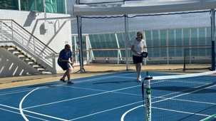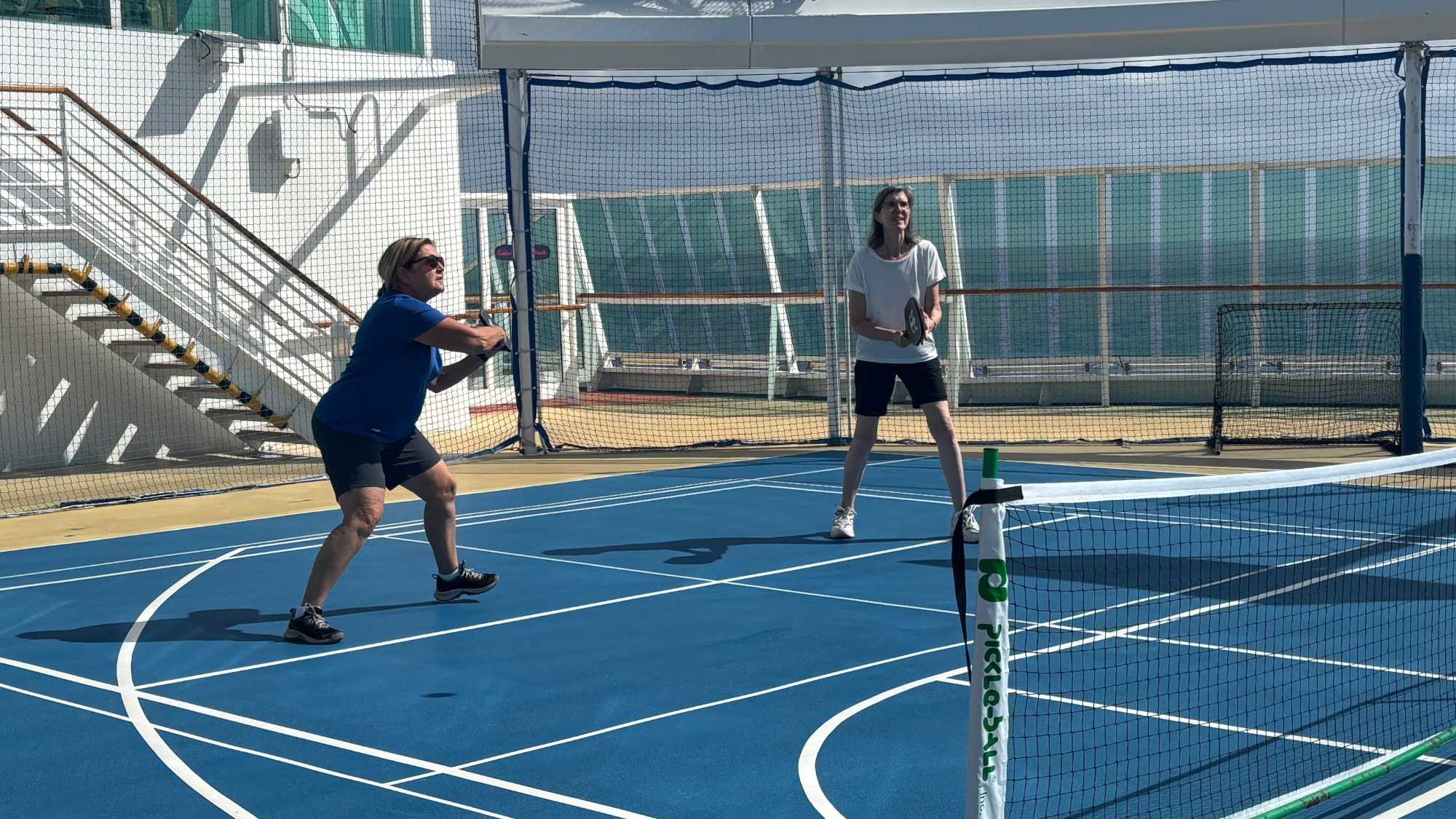 À peine le mini-putt terminé, il nous restait un peu de temps avant le dîner… alors pourquoi ne pas retourner au pickleball ? Allez, on y retourne !