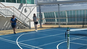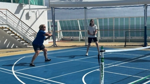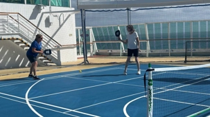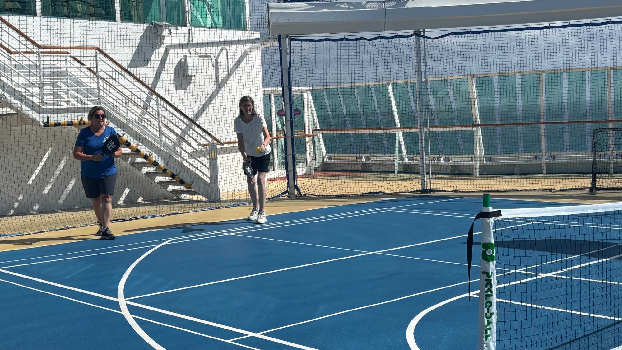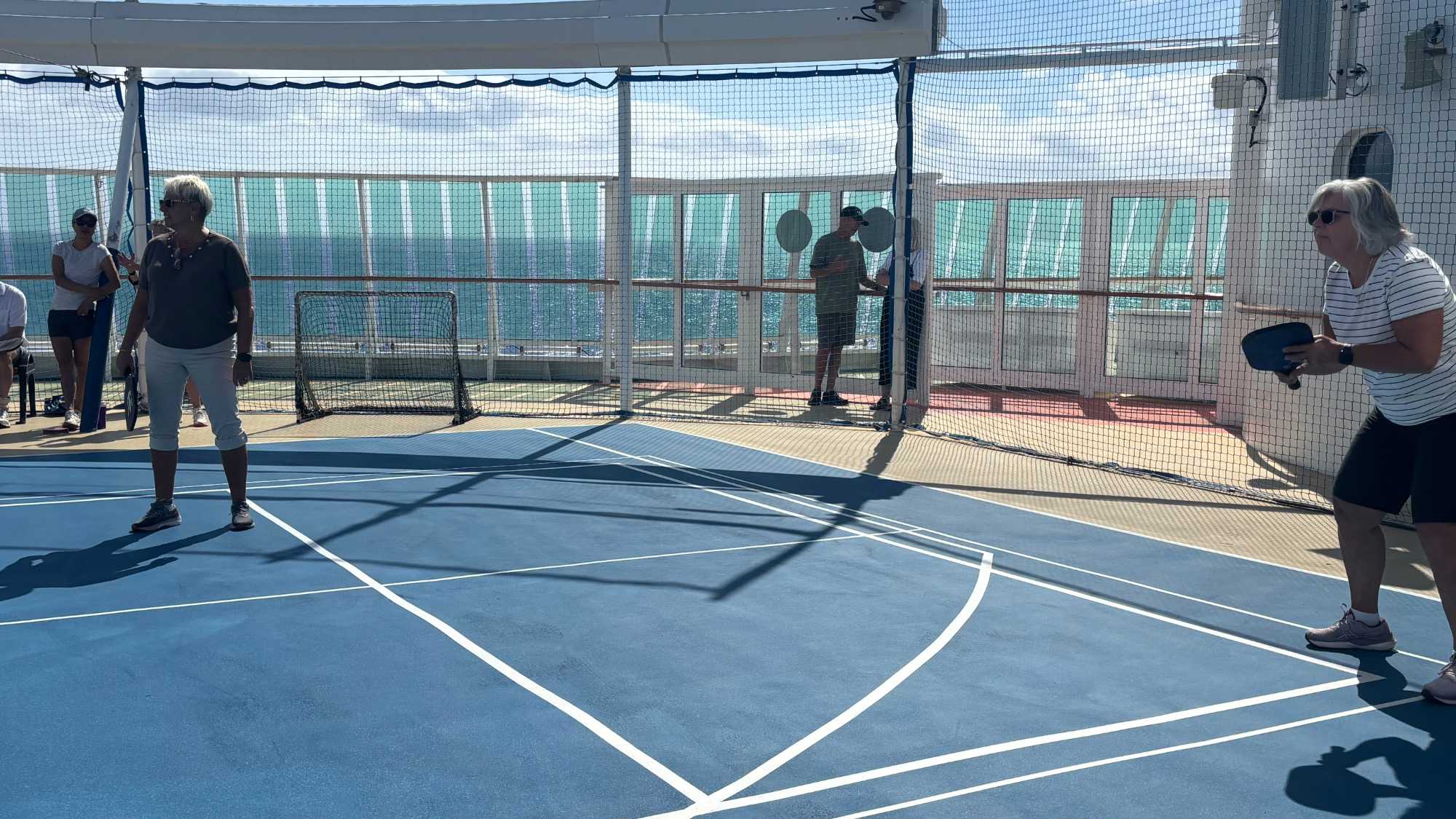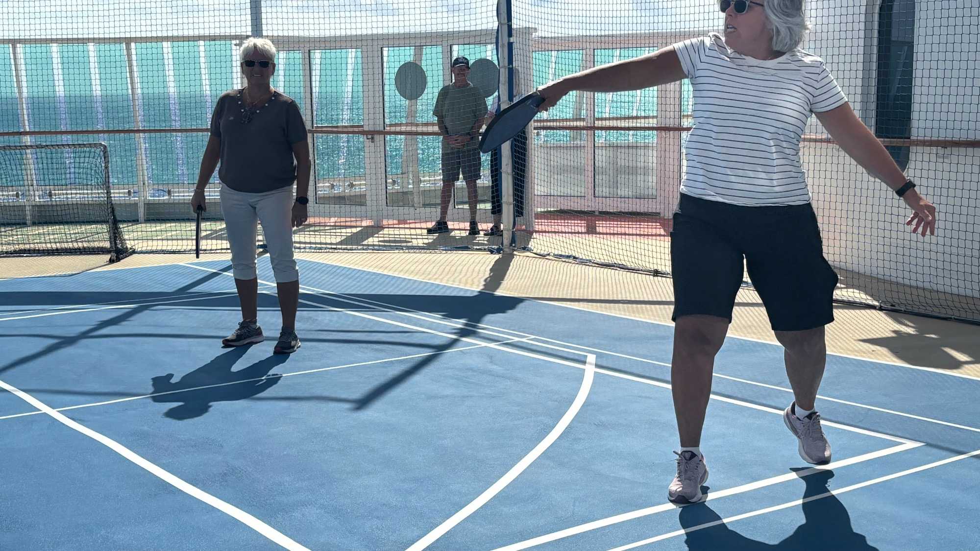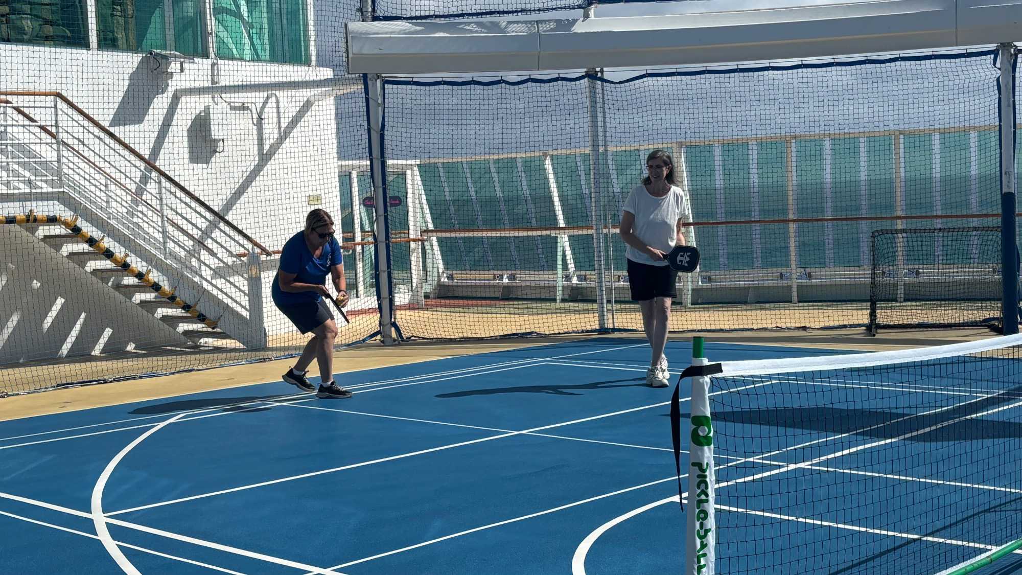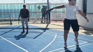 Après un bon déjeuner, place au sport ! C’est Christiane qui a lancé le défi : une partie de pickleball. Nous étions cinq de notre groupe, mais le terrain débordait d’énergie – impossible de ne pas se laisser emporter par l’ambiance !