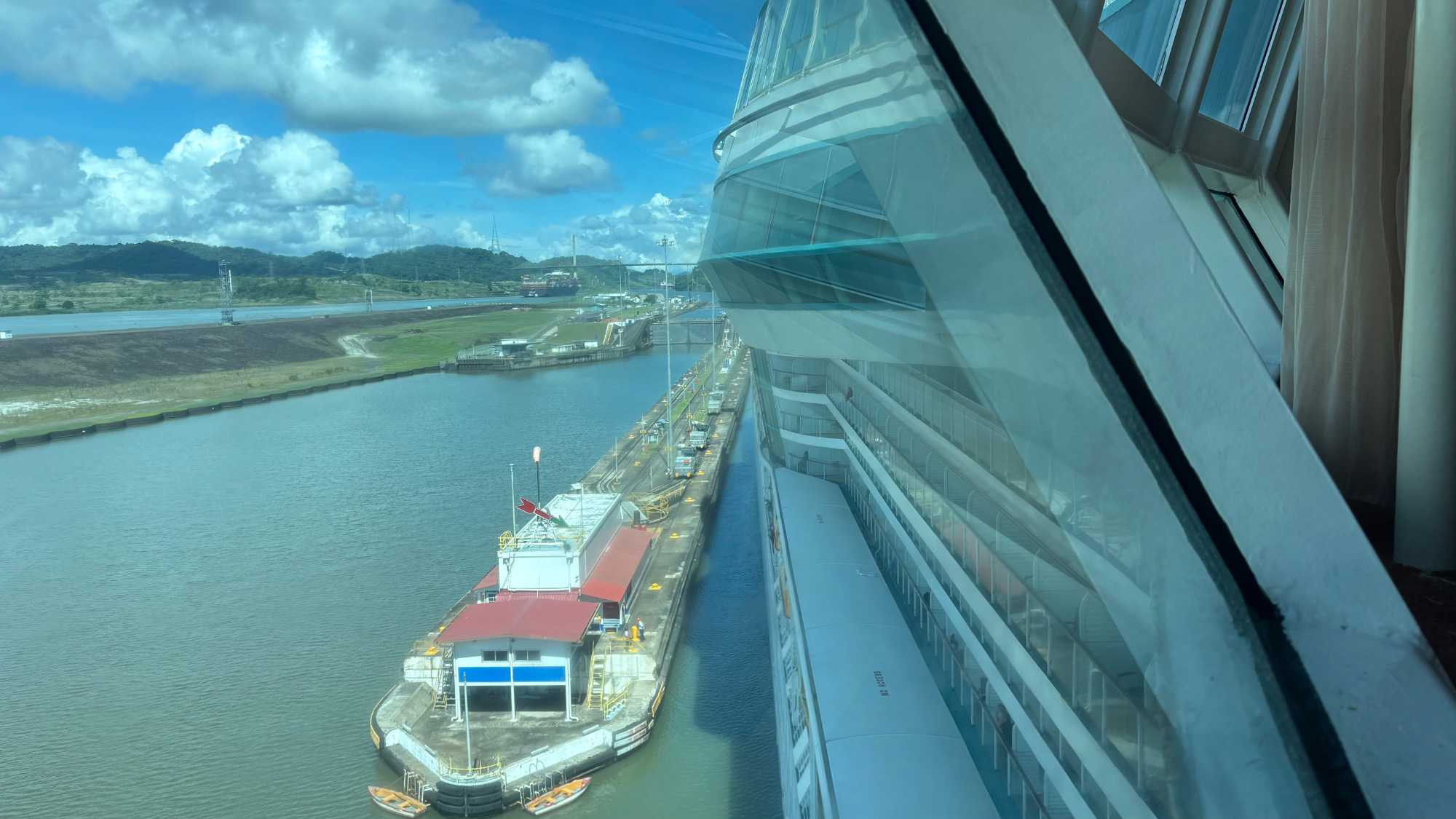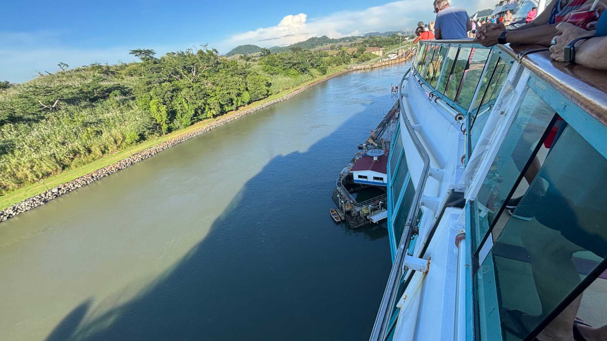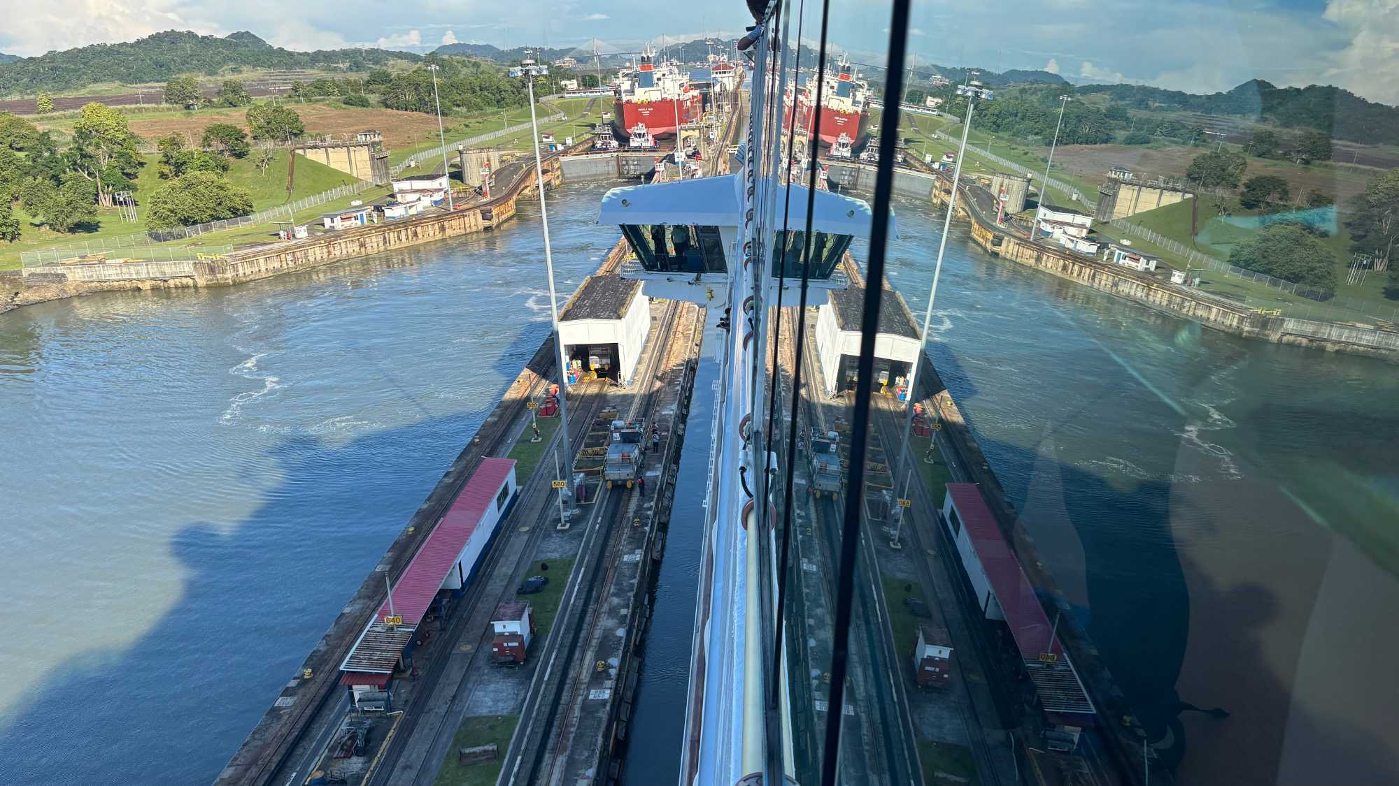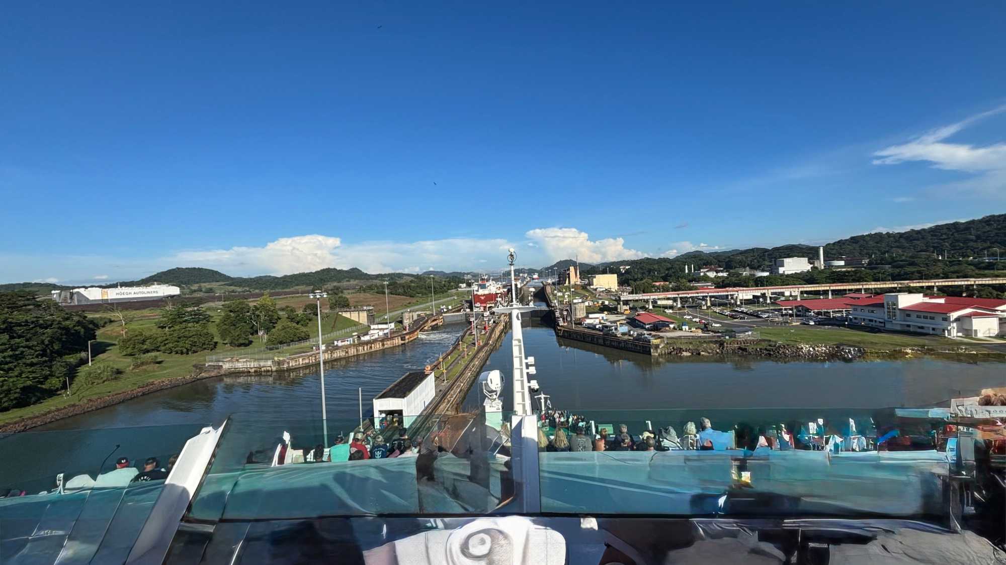 Aujourd’hui, le canal devient notre fil conducteur : ce matin, dès les premières lueurs du jour, nous glissons sur l’un des chefs-d’œuvre les plus impressionnants du monde moderne : le canal de Panama. Mais ici, la prouesse technique n’efface pas la beauté — elle la sublime. À travers les écluses gigantesques, les eaux s’élèvent comme par magie, soulevant notre navire vers un autre océan, un autre monde.