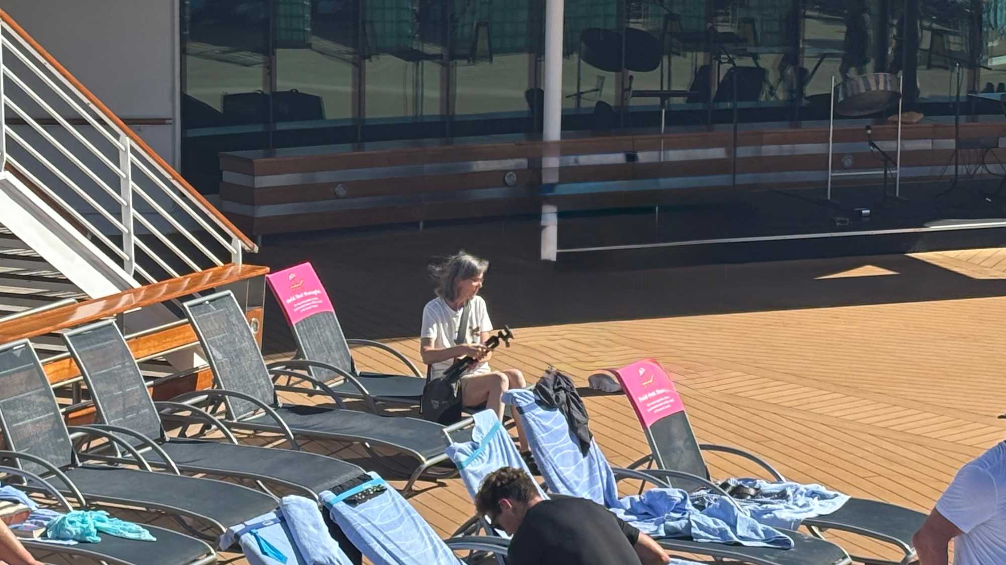 Le soleil se levait paresseusement sur l’horizon, étirant ses reflets dorés sur les flancs du navire. Elle s’était réveillée tôt, sans alarme, portée par le murmure des vagues et l’appel discret d’une journée rien qu’à elle.