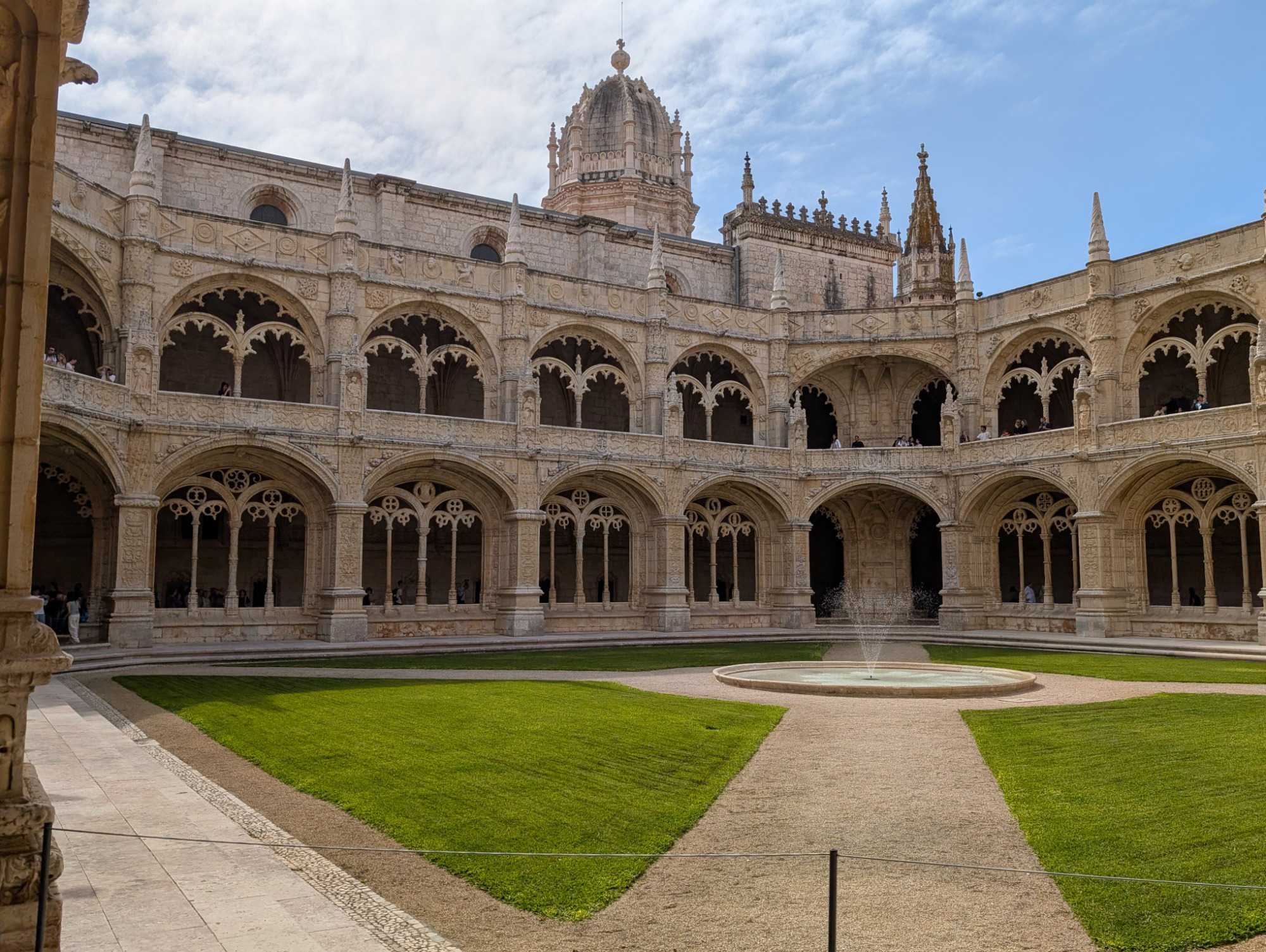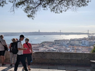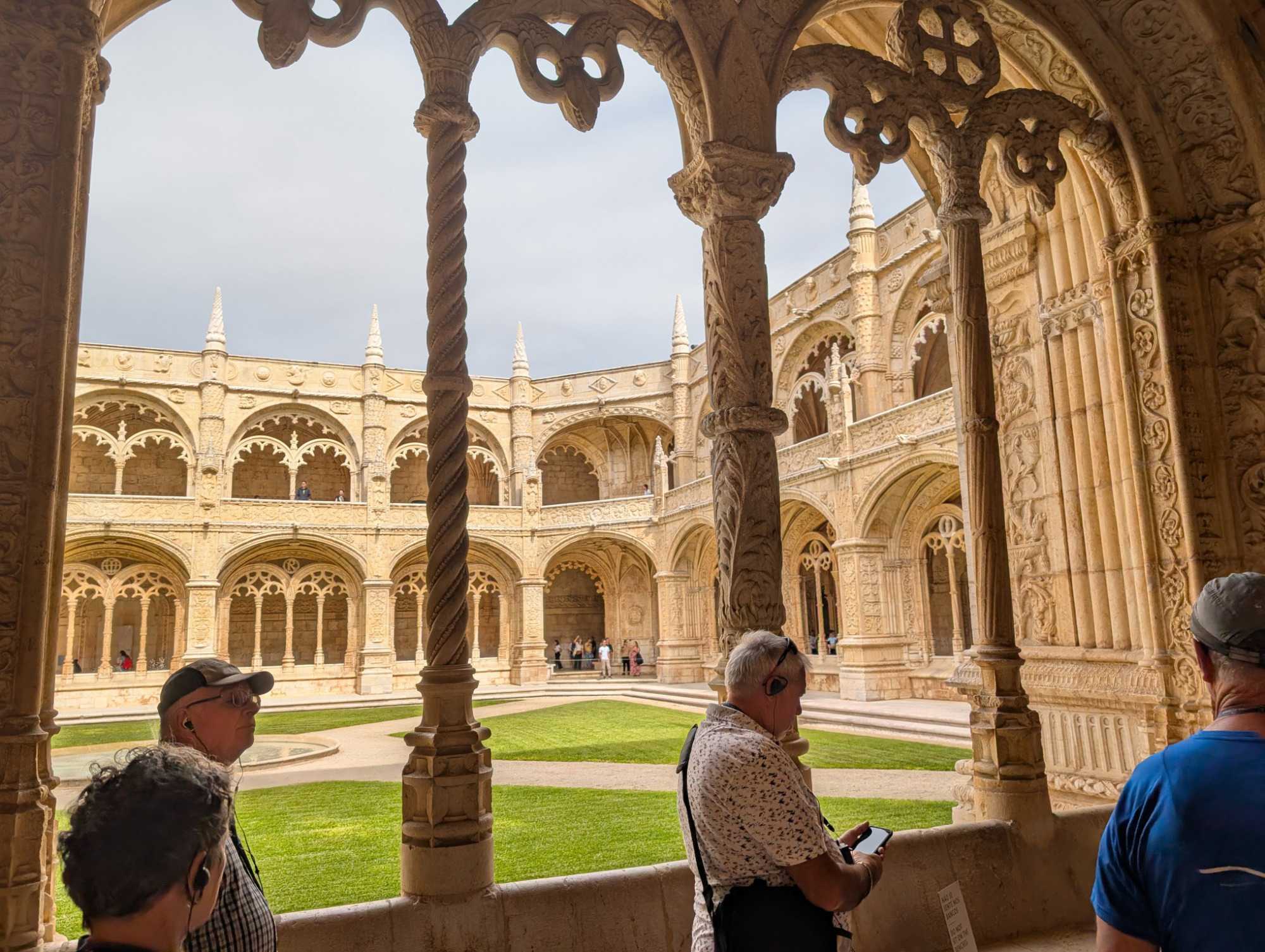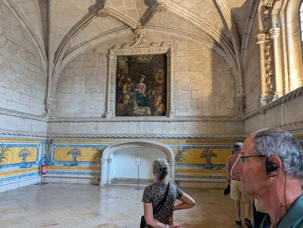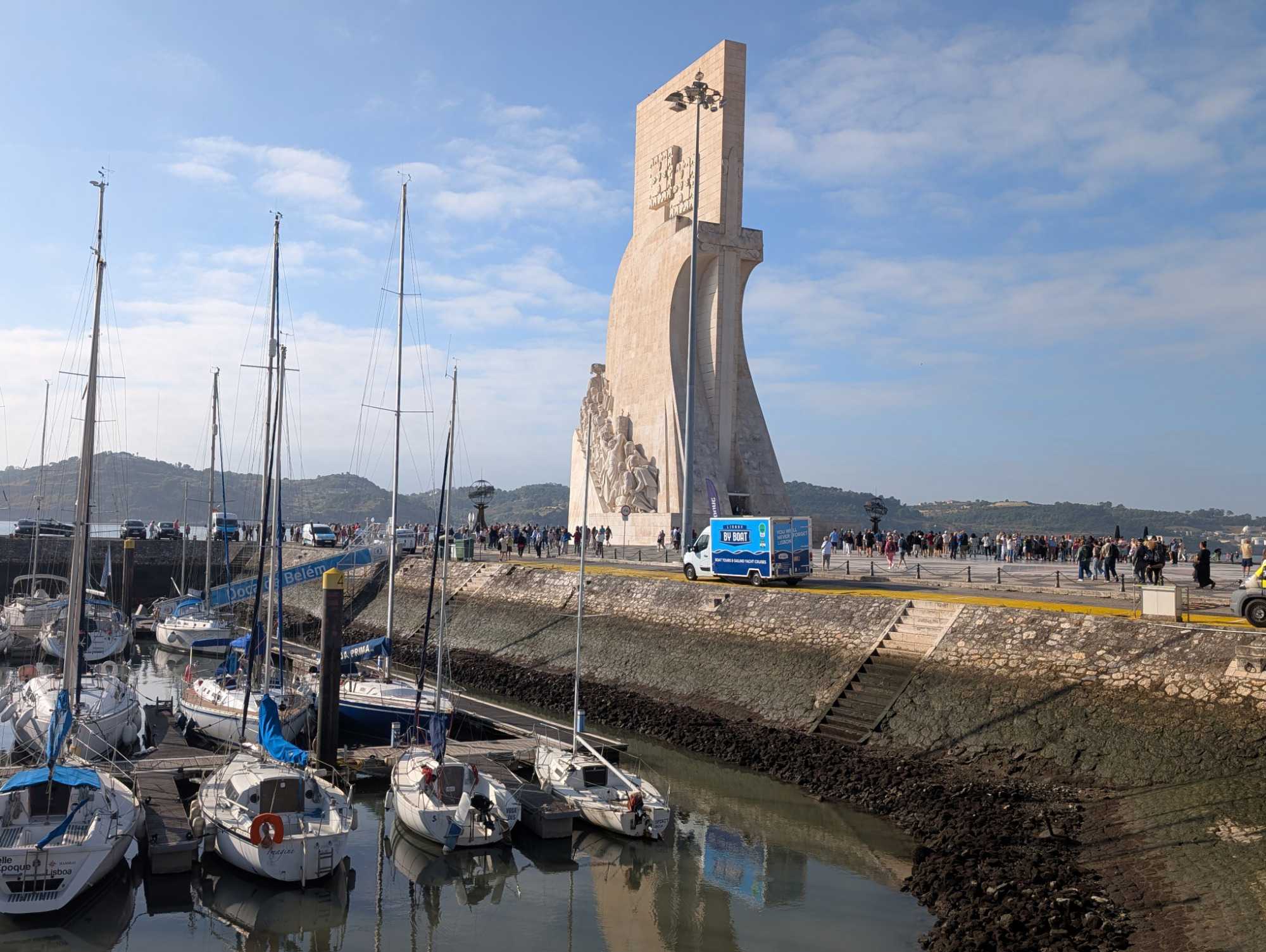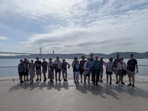 Après le petit-déjeuner, nous rencontrons à nouveau notre guide local, André, et nous mettons le cap à l'ouest en direction de la tour de Belém que nous ne pourrons malheureusement pas visiter car elle est en réfection. Construite au XVIe siècle, elle est un chef-d'œuvre de l'architecture manuéline, un style gothique tardif typiquement portugais, qui mêle des motifs marins (cordages de pierre, coquillages sculptés) à des influences mauresques et exotiques, rappelant les terres lointaines découvertes par les navigateurs.
