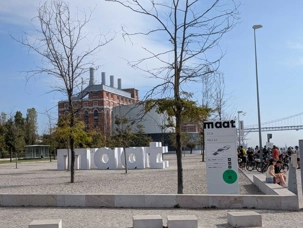 Nous faisons une petite pause photo sur le toit du MAAT avant d'aller au