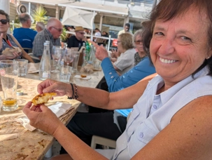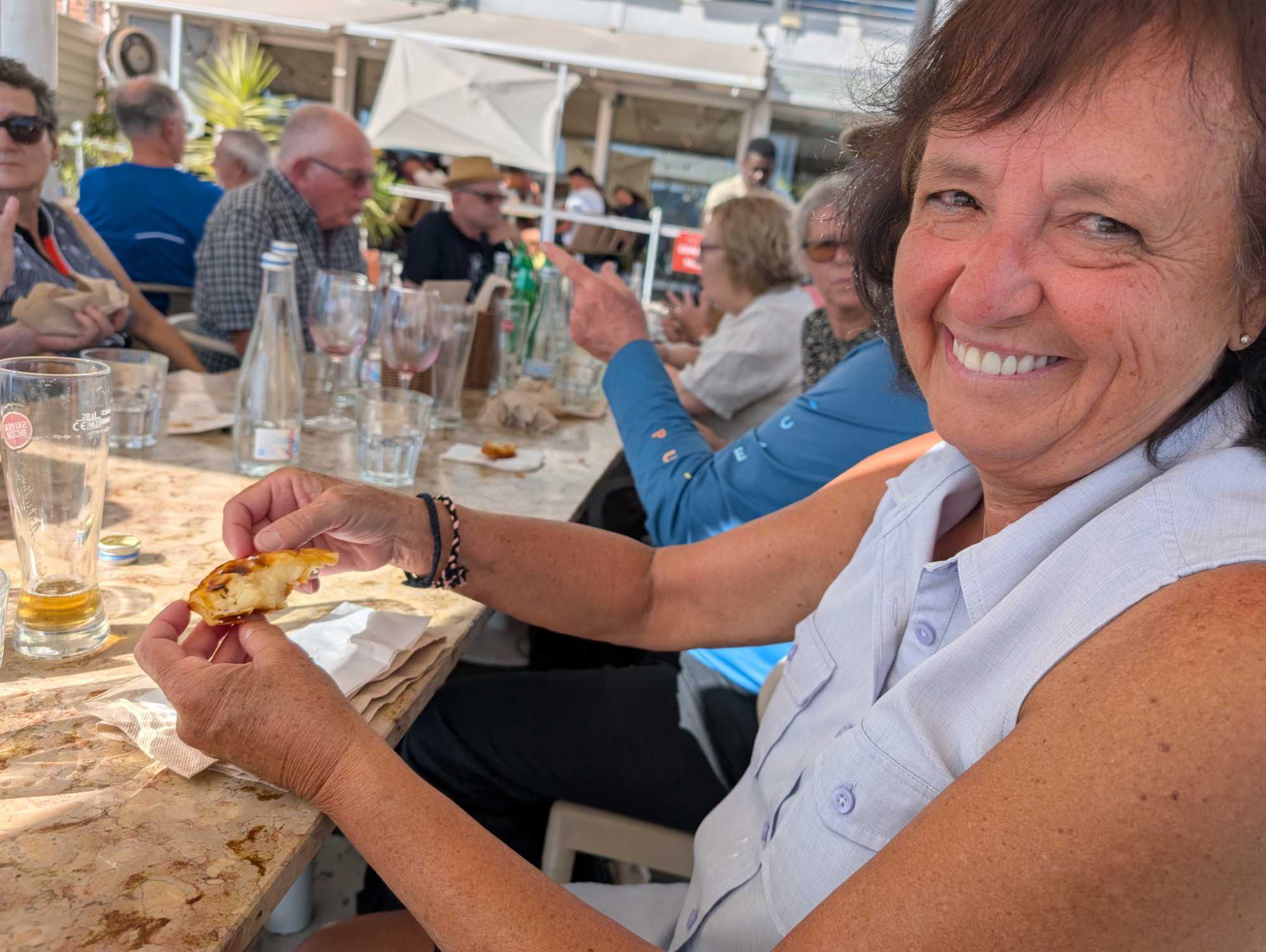 Comme cette visite nous a mis en appétit, nous suivons la rive du Tage jusqu'au Restaurante Capricciosa Doca de Santo Amaro pour de très bons mets italiens et des pastéis de Belém pour dessert, gracieuseté de Patrick Simard, notre guide