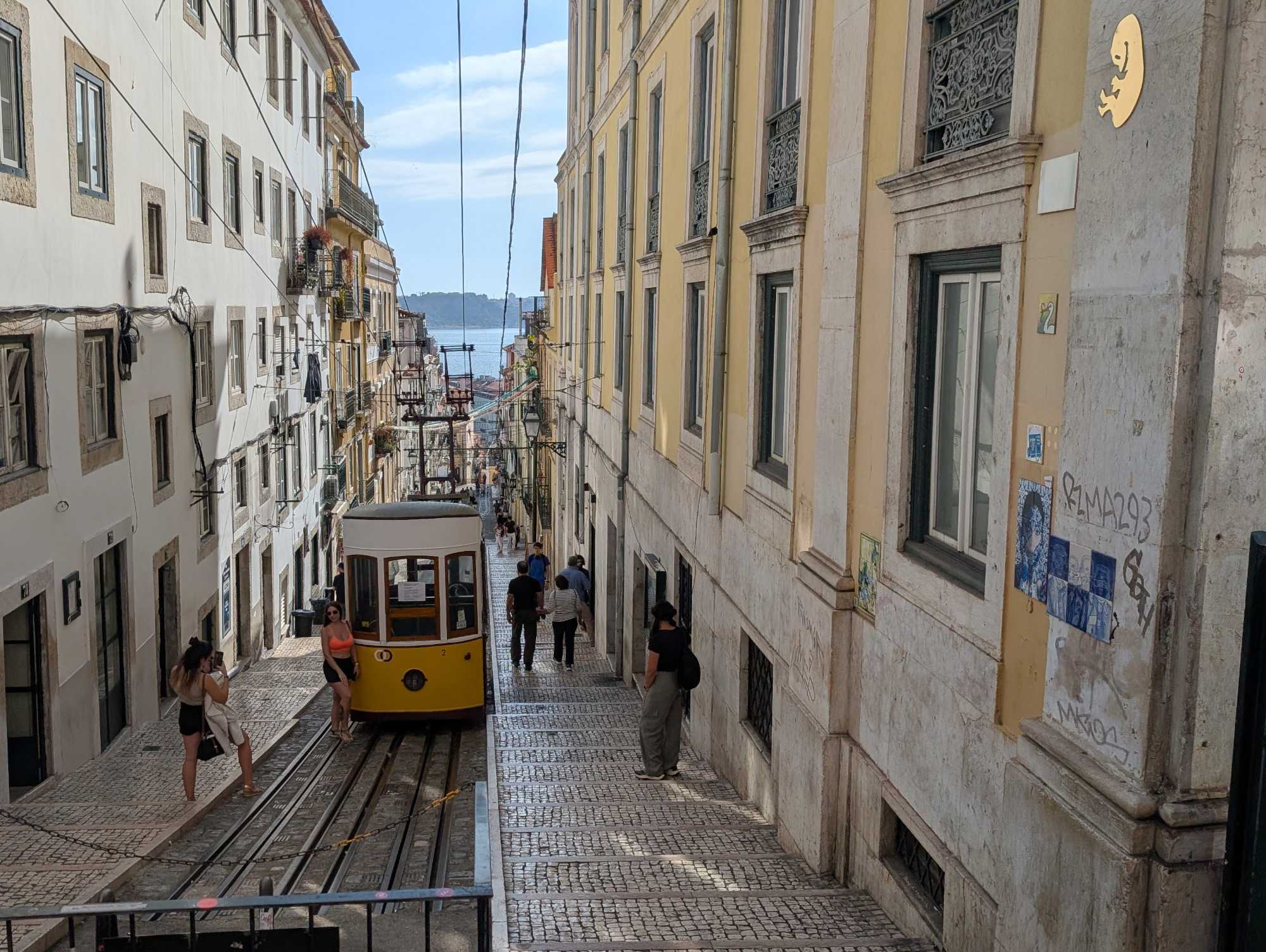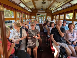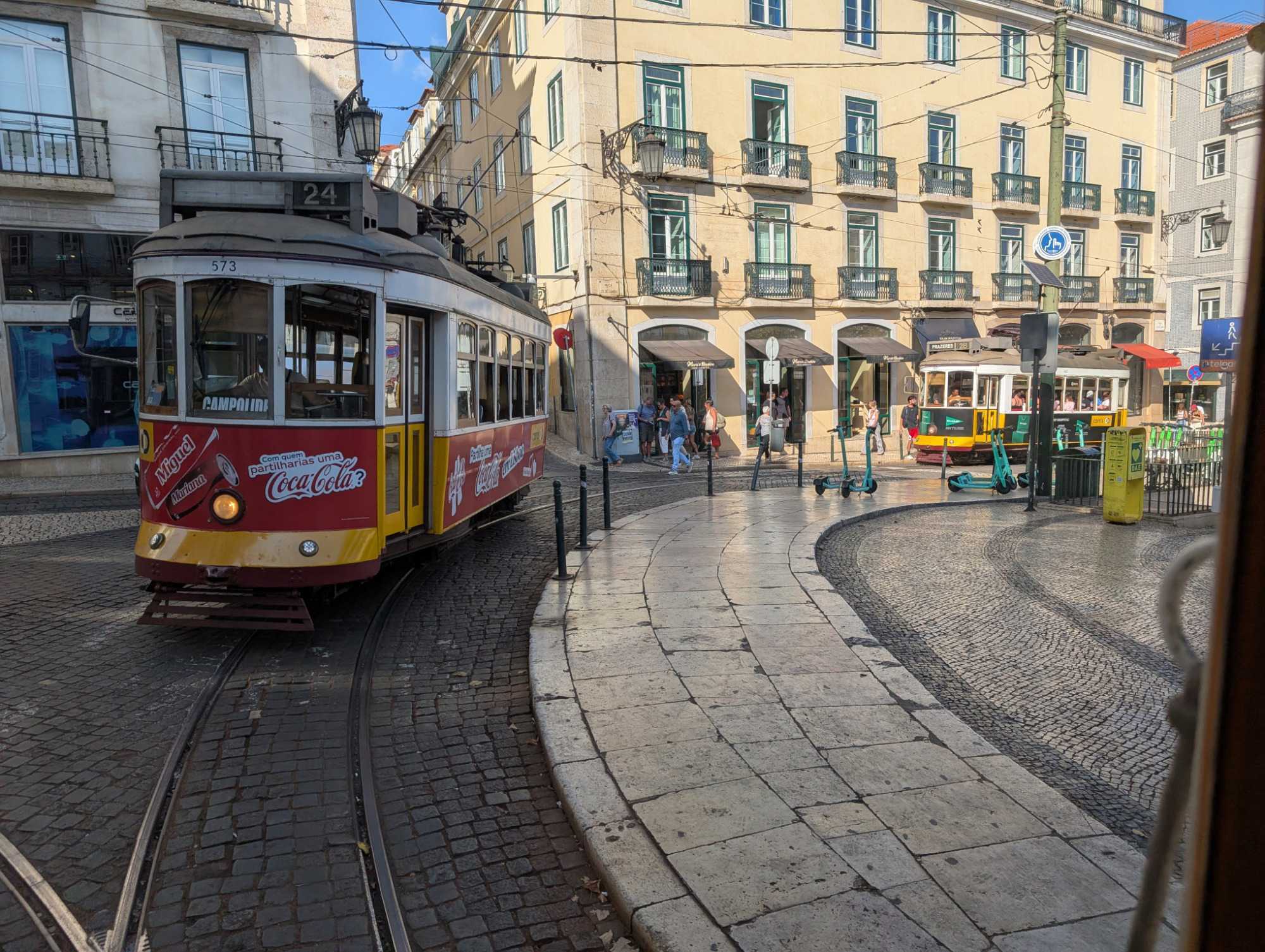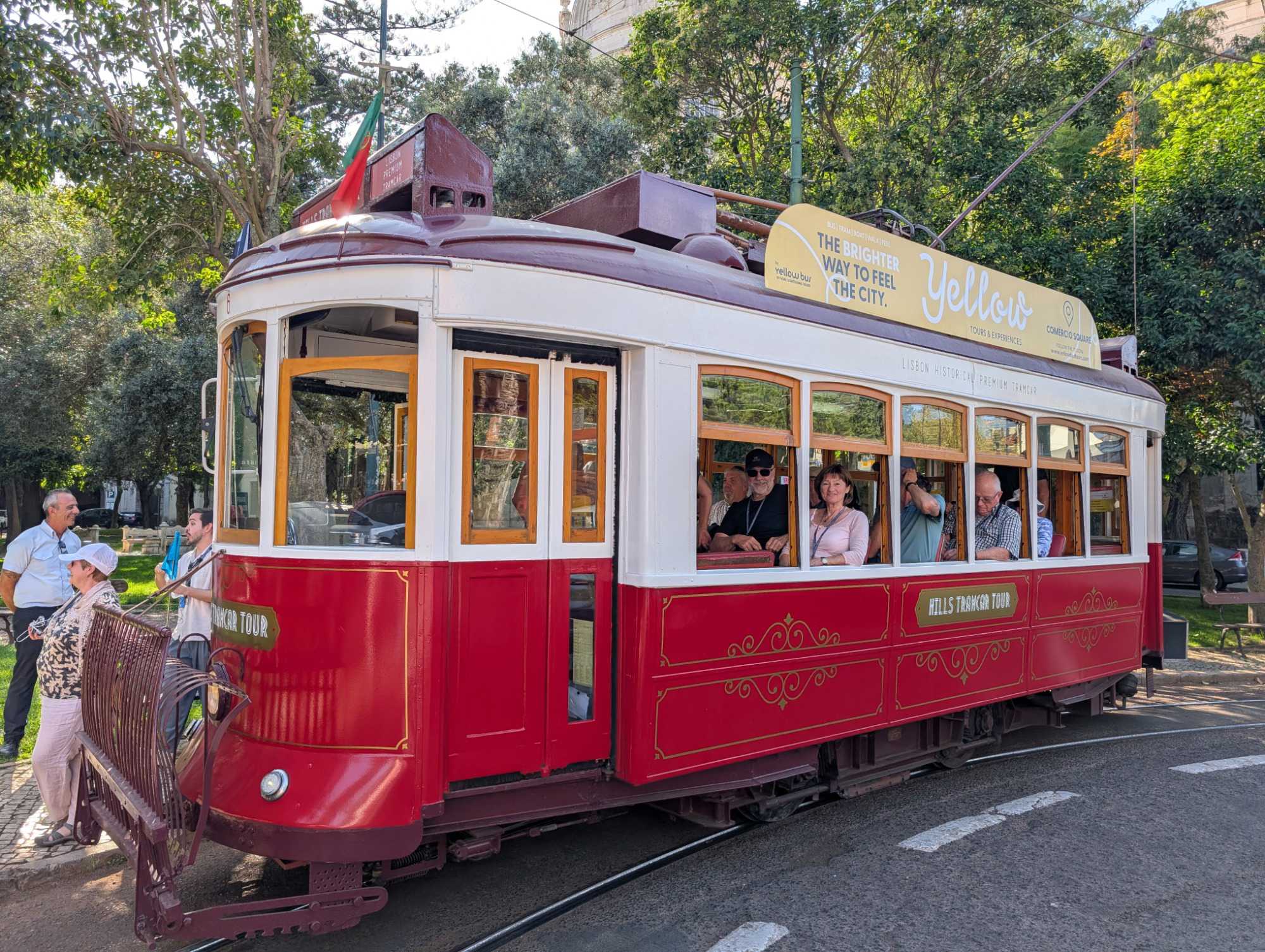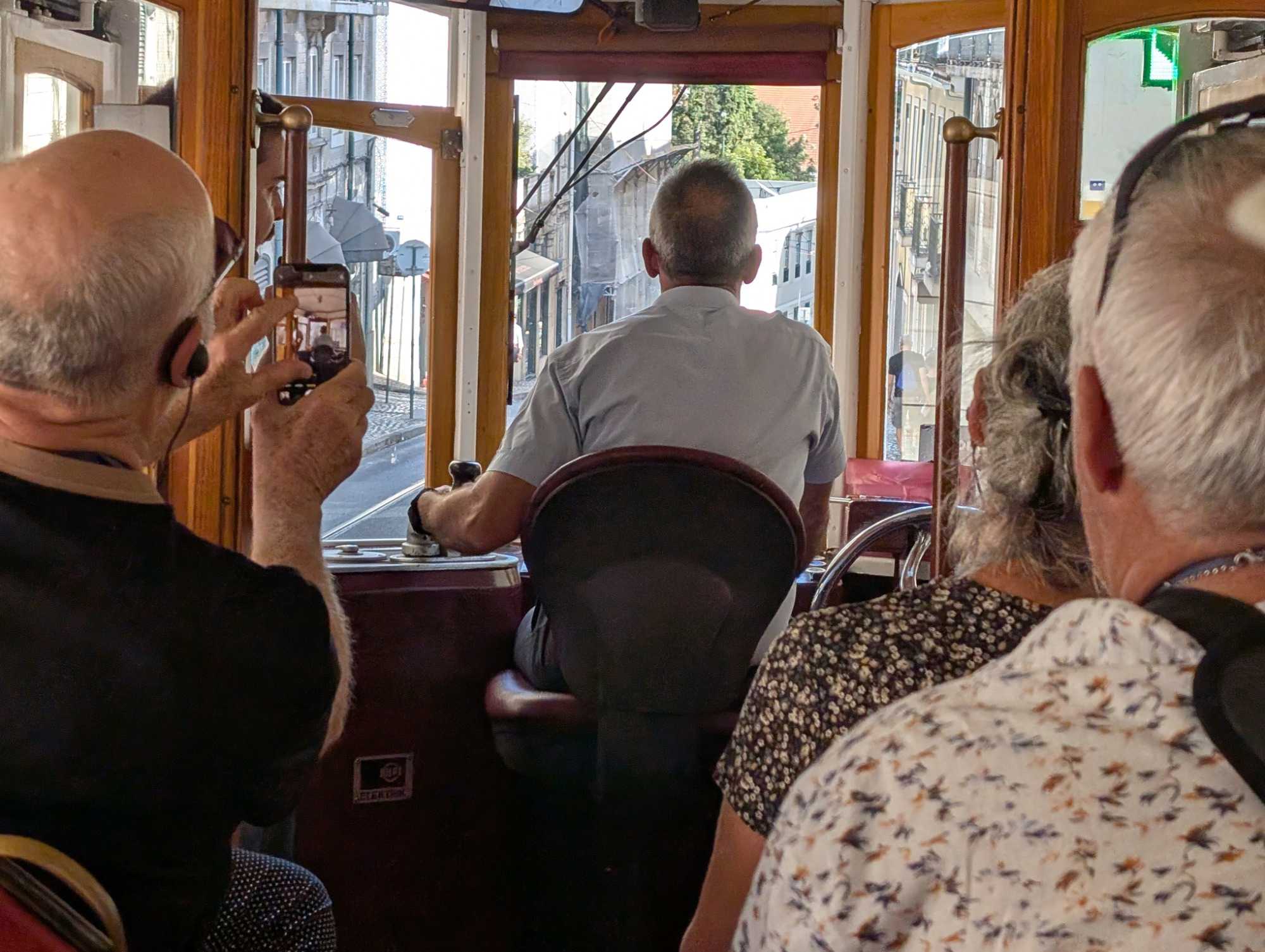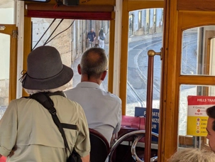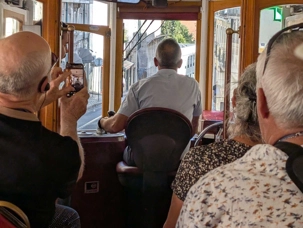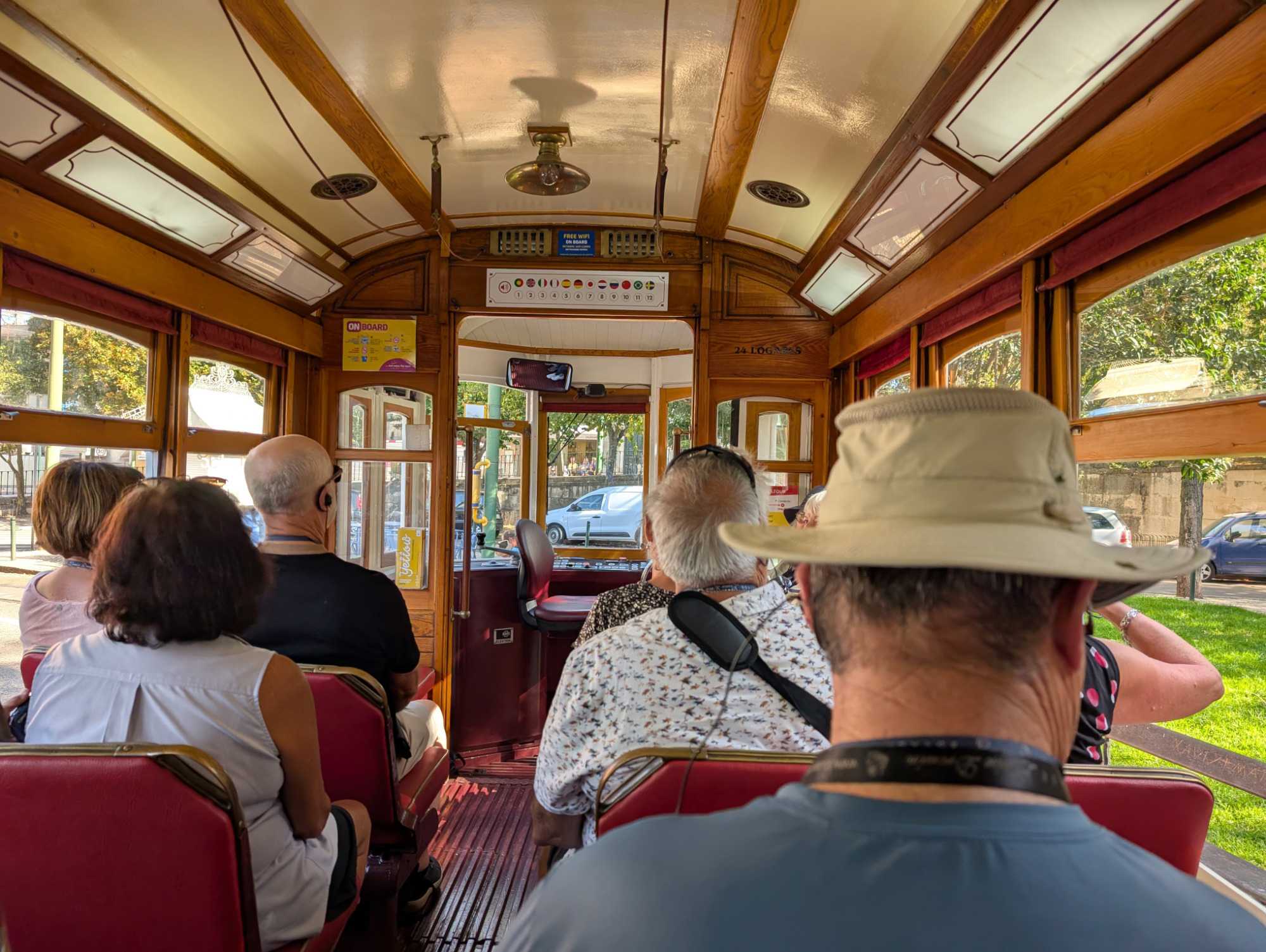 Une fois bien repus, nous quittons la rive du Tage et les bourdonnements du Pont du 25 avril pour changer de moyen de transport: nous passons de l'autocar à notre tramway "vintage" privé. C'est à bord de ce tramway de 1930 que nous continuons notre découverte des quartiers les mieux connus de Lisbonne.