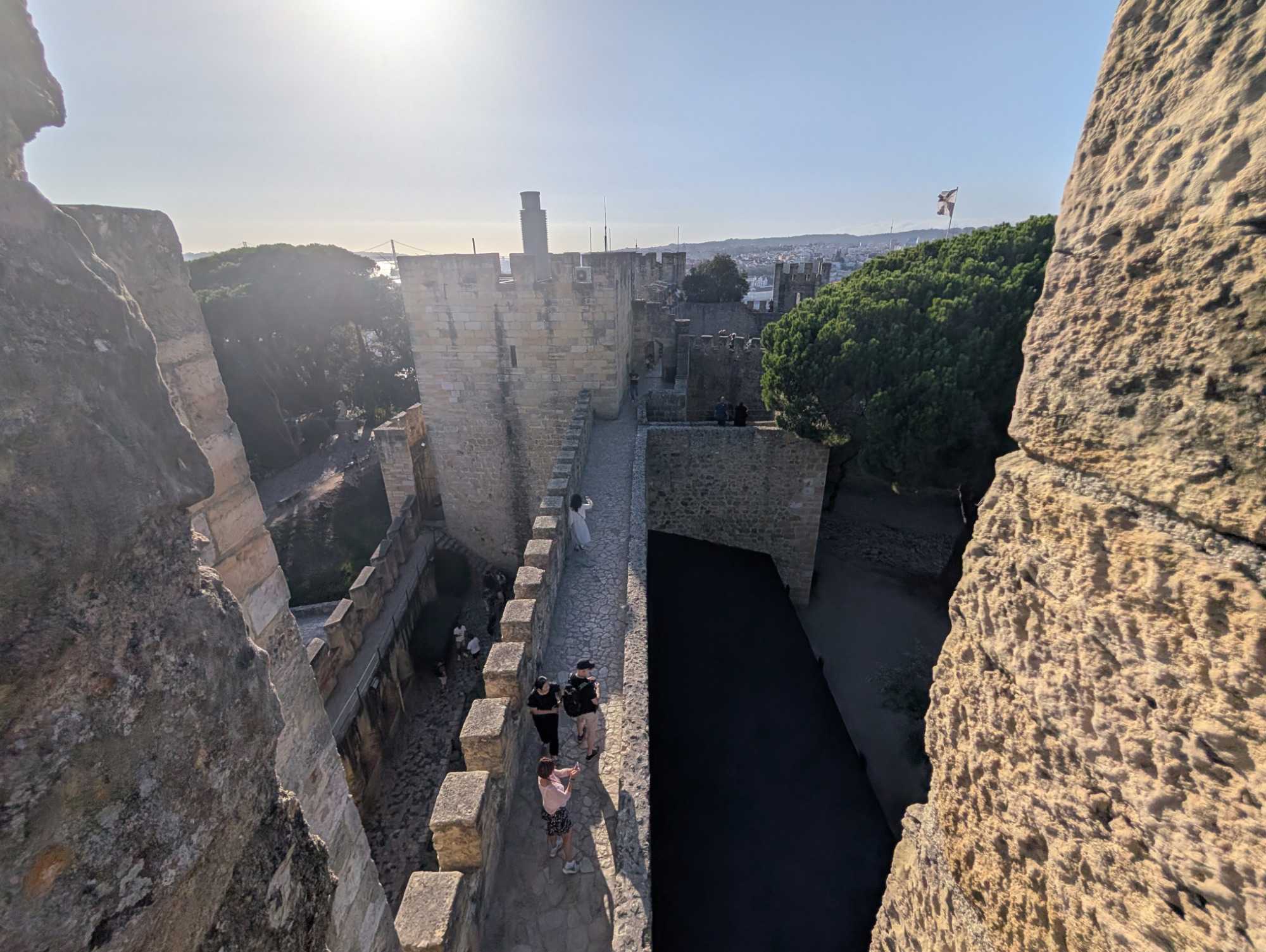 Dominant la ville du haut de sa colline, le château de Saint-Georges n'est pas seulement une forteresse, mais un gardien du temps. Ses remparts de pierre, usés par les siècles, racontent l'histoire de Lisbonne, depuis ses origines romaines et mauresques jusqu'à la reconquête chrétienne. C'est un lieu où l'histoire se ressent plus qu'elle ne se lit, dans le silence de ses cours intérieures et le murmure du vent sur ses créneaux. De ses tours, la vue est la plus belle qui soit, un panorama à 360 degrés où le regard se perd sur les toits de l'Alfama, les quartiers de la Baixa et du Chiado, et sur l'immensité argentée du Tage qui s'étend jusqu'à l'océan. Le château est un pont entre le passé légendaire de la ville et son présent vibrant, un lieu où chaque pierre semble chuchoter les secrets des époques révolues.