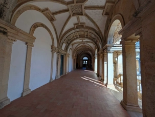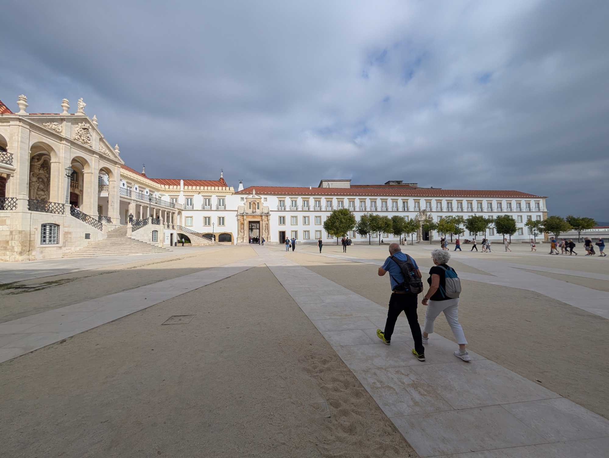Sur le Paço das Escolas (Cour des Écoles), le panorama est saisissant. Dominant les toits rouges de la ville et le ruban argenté du fleuve Mondego, la cour pavée exhale une aura de puissance et d'histoire. Je me sens immédiatement petit face à la majesté du lieu.