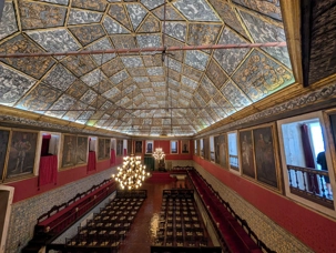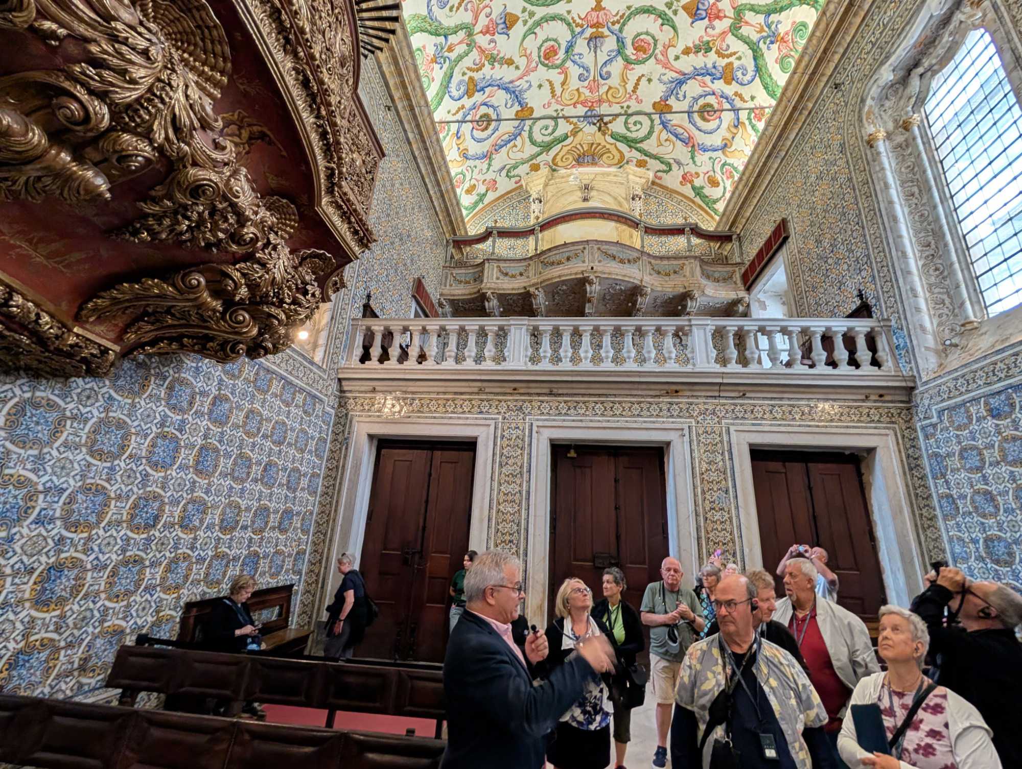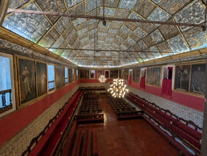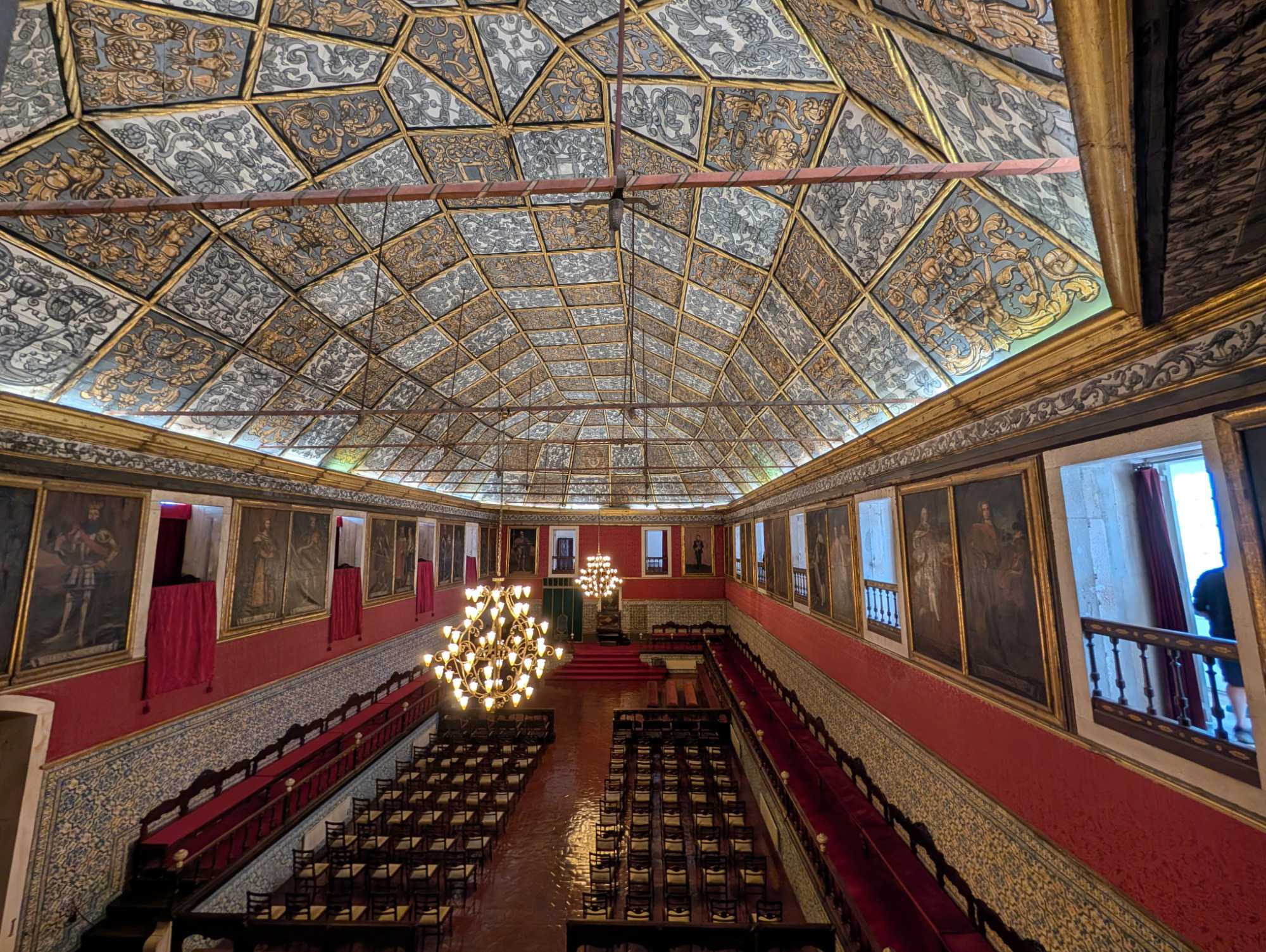 Juste à côté, la Salle des Actes (Sala dos Capelos) est tout aussi impressionnante. Ancienne salle du trône royal, elle est le théâtre des grandes cérémonies. Je m'imagine la solennité des remises de diplômes, les docteurs en toge colorée, faisant résonner cette pièce qui a vu naître tant d'élites portugaises. Les portraits des rois sur les murs rappellent que l'Université fut autrefois le palais du pouvoir.