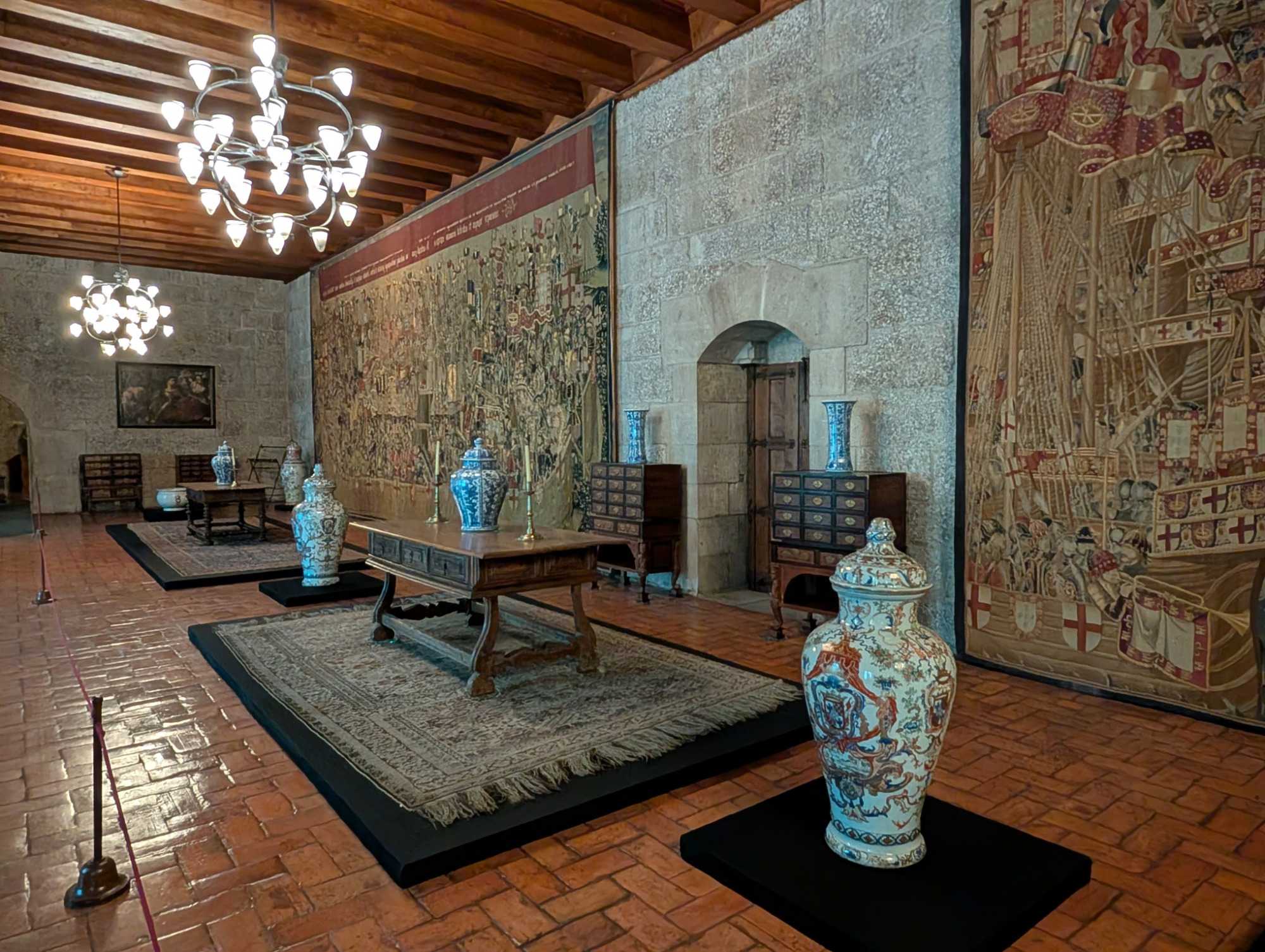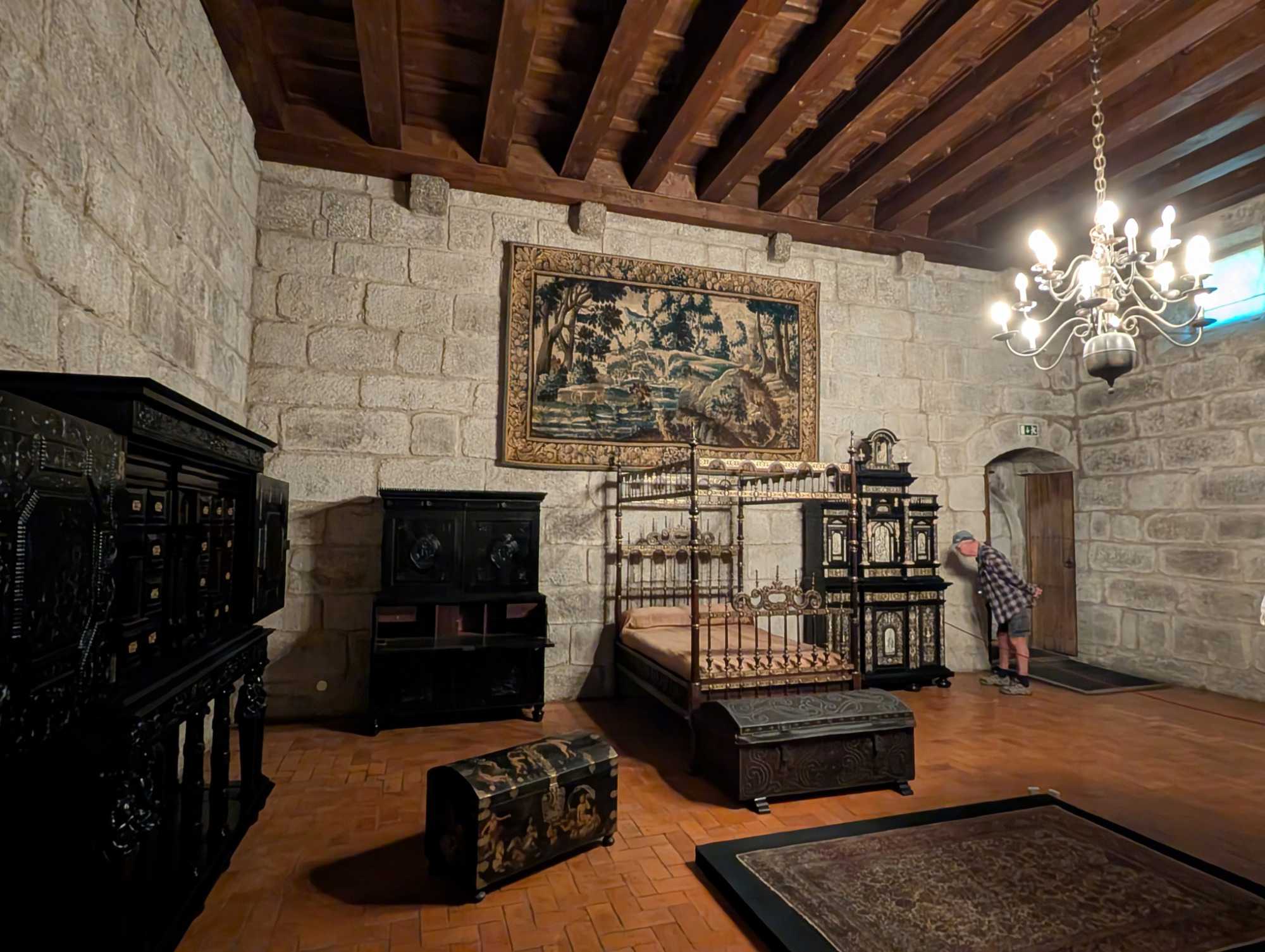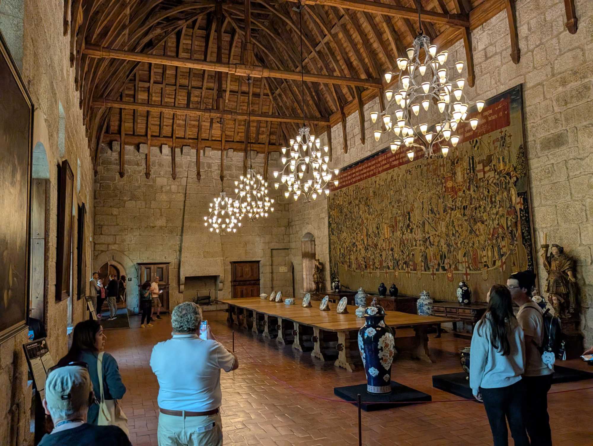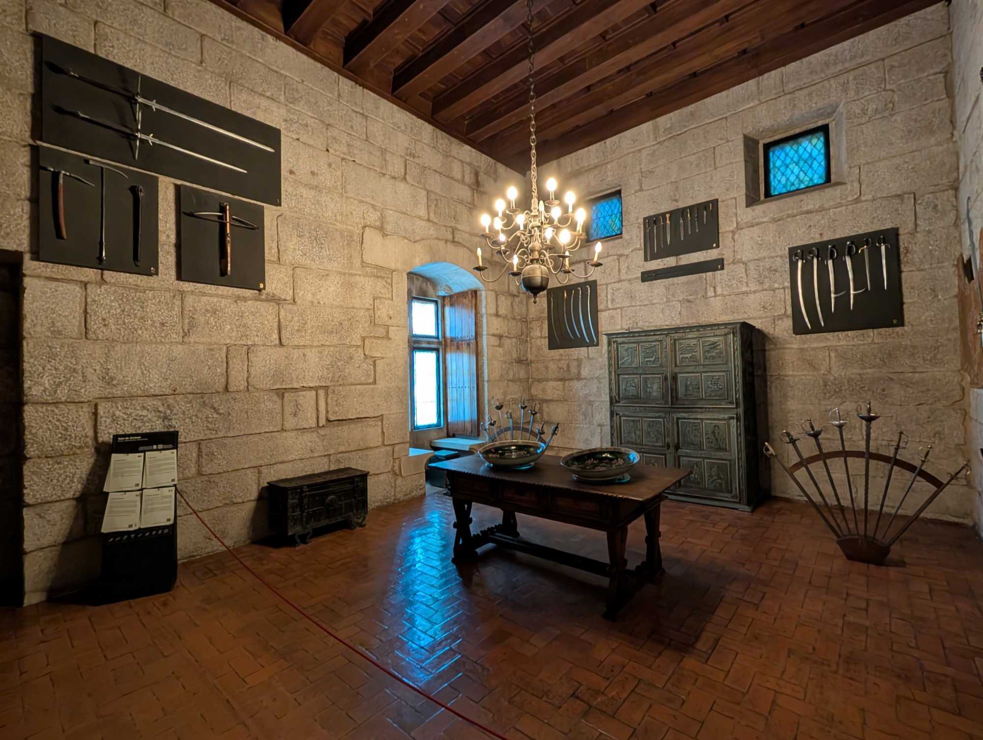 Le Palais des Ducs de Bragance à Guimarães est un château médiéval dont les murs de pierre et les cheminées massives évoquent un passé de grandeur. Sa silhouette imposante se dresse fièrement, racontant l'histoire de la maison de Bragance, la plus importante famille noble du Portugal. L'intérieur est une immersion dans le temps, avec des salles aux plafonds en bois, des tapisseries majestueuses et des meubles d'époque. L'air y est imprégné d'un sentiment de solennité, et l'on peut presque entendre l'écho des banquets et des cérémonies qui ont eu lieu dans ces murs. C'est un palais qui ne se contente pas d'être vu, il se vit, comme un livre d'histoire ouvert. Le Palais est aussi la résidence officielle du Président du Portugal.