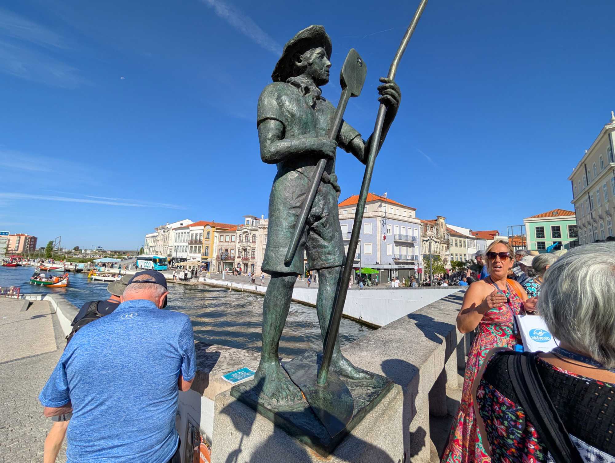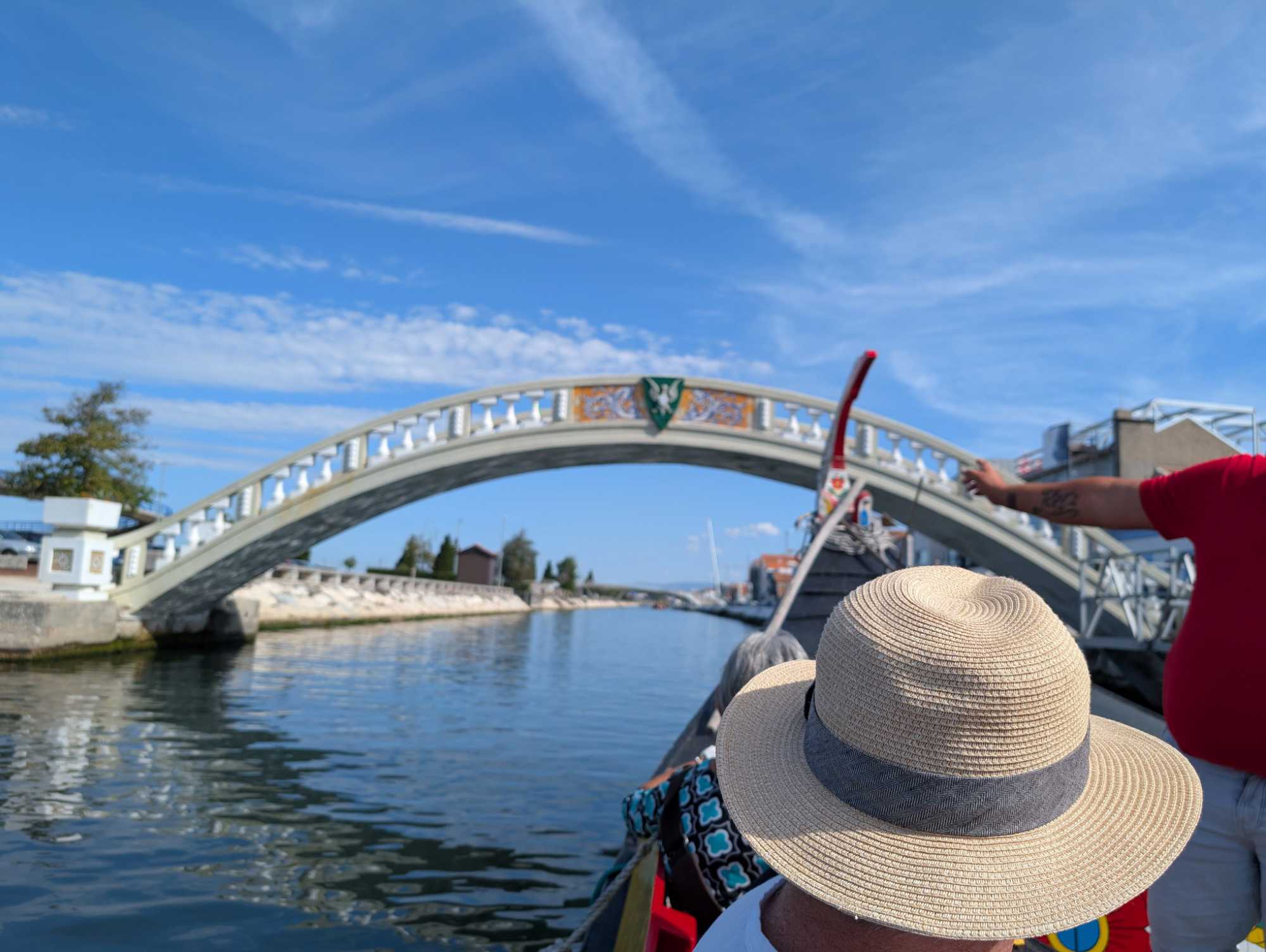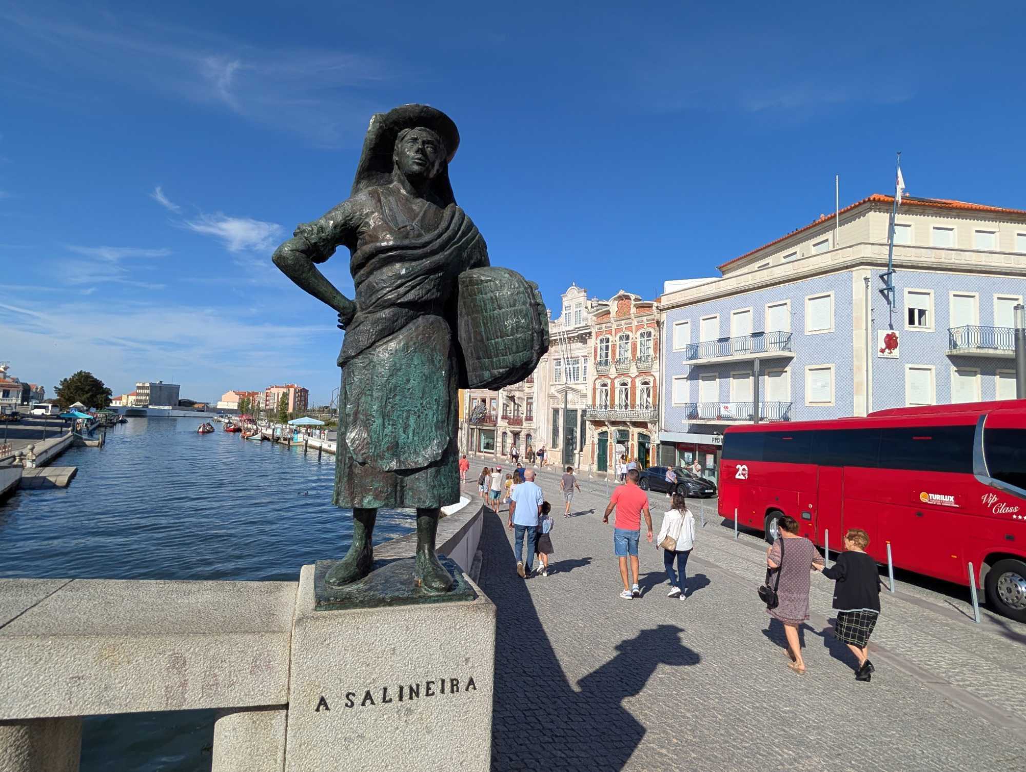 Nous remercions Catarina de nous en avoir mis plein la vue avec son tour de ville et montons à bord d'un moliceiro de Viva a Ria pour une petite croisière sur les canaux d'Aveiro. Vue des eaux, la ville prend une toute autre dimension. On peut y ressentir pleinement la symbiose entre l'eau et la terre, la raison d'être même d'Aveiro. Au bout de cette petite aventure, nous arrivons à notre restaurant pour la pause déjeuner: le restaurant Salpoente. Nous reprenons l'autocar pour poursuivre notre visite de la Côte d'Argent.