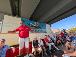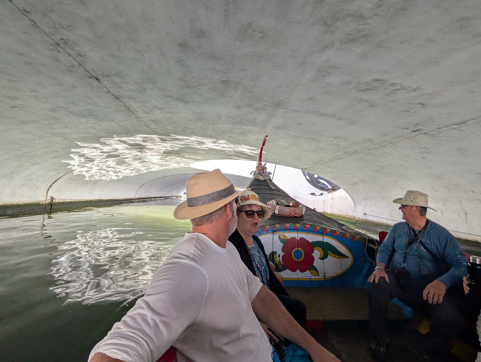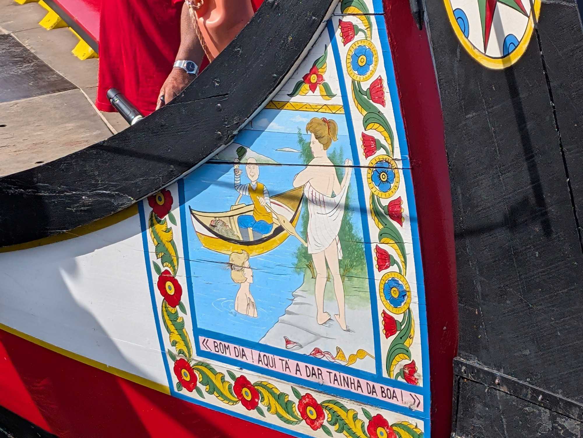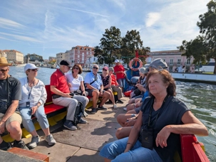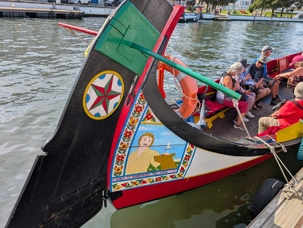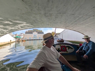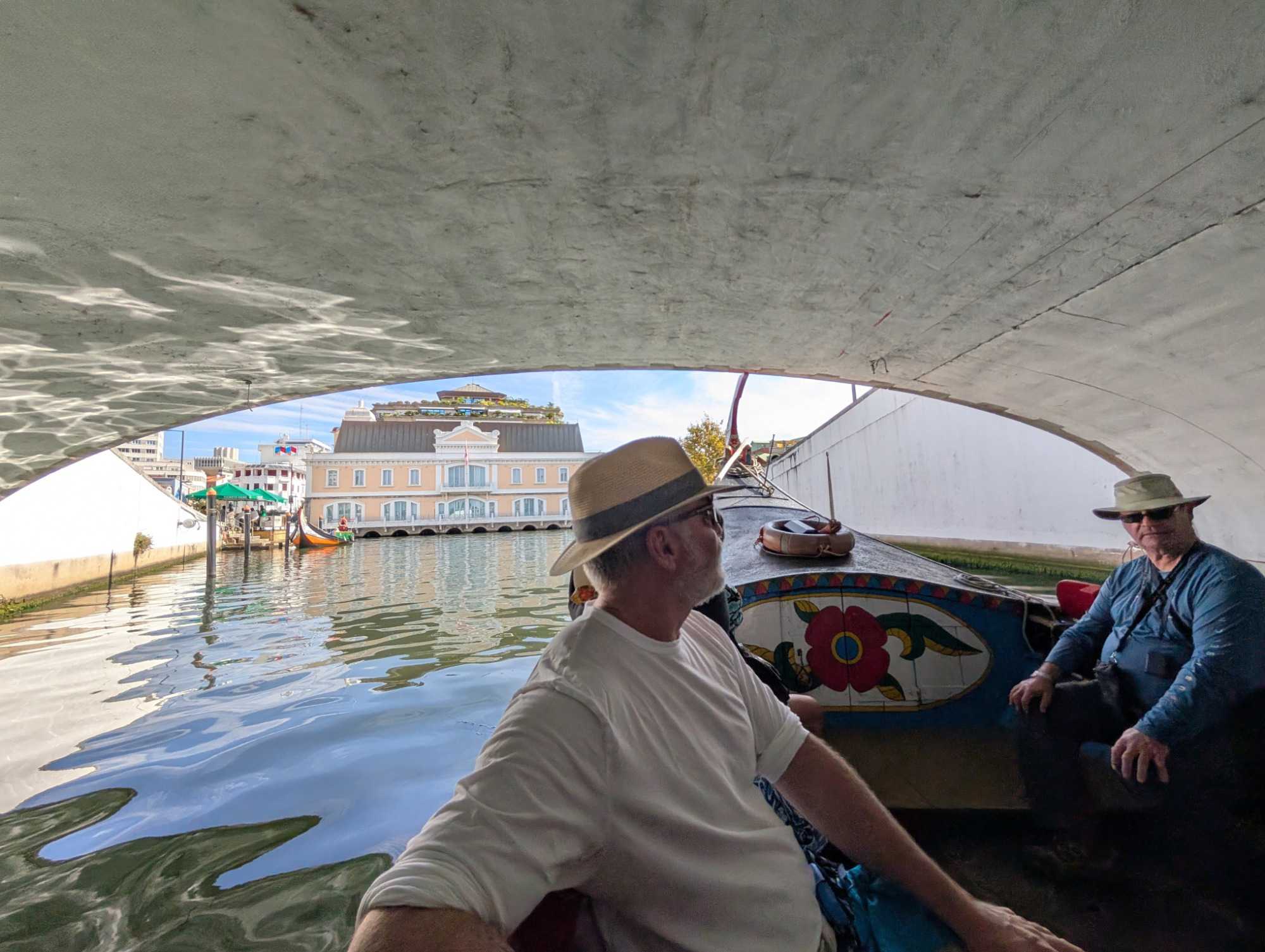 Nous remercions Catarina de nous en avoir mis plein la vue avec son tour de ville et montons à bord d'un moliceiro de Viva a Ria pour une petite croisière sur les canaux d'Aveiro. Vue des eaux, la ville prend une toute autre dimension. On peut y ressentir pleinement la symbiose entre l'eau et la terre, la raison d'être même d'Aveiro. Au bout de cette petite aventure, nous arrivons à notre restaurant pour la pause déjeuner: le restaurant Salpoente. Nous reprenons l'autocar pour poursuivre notre visite de la Côte d'Argent.