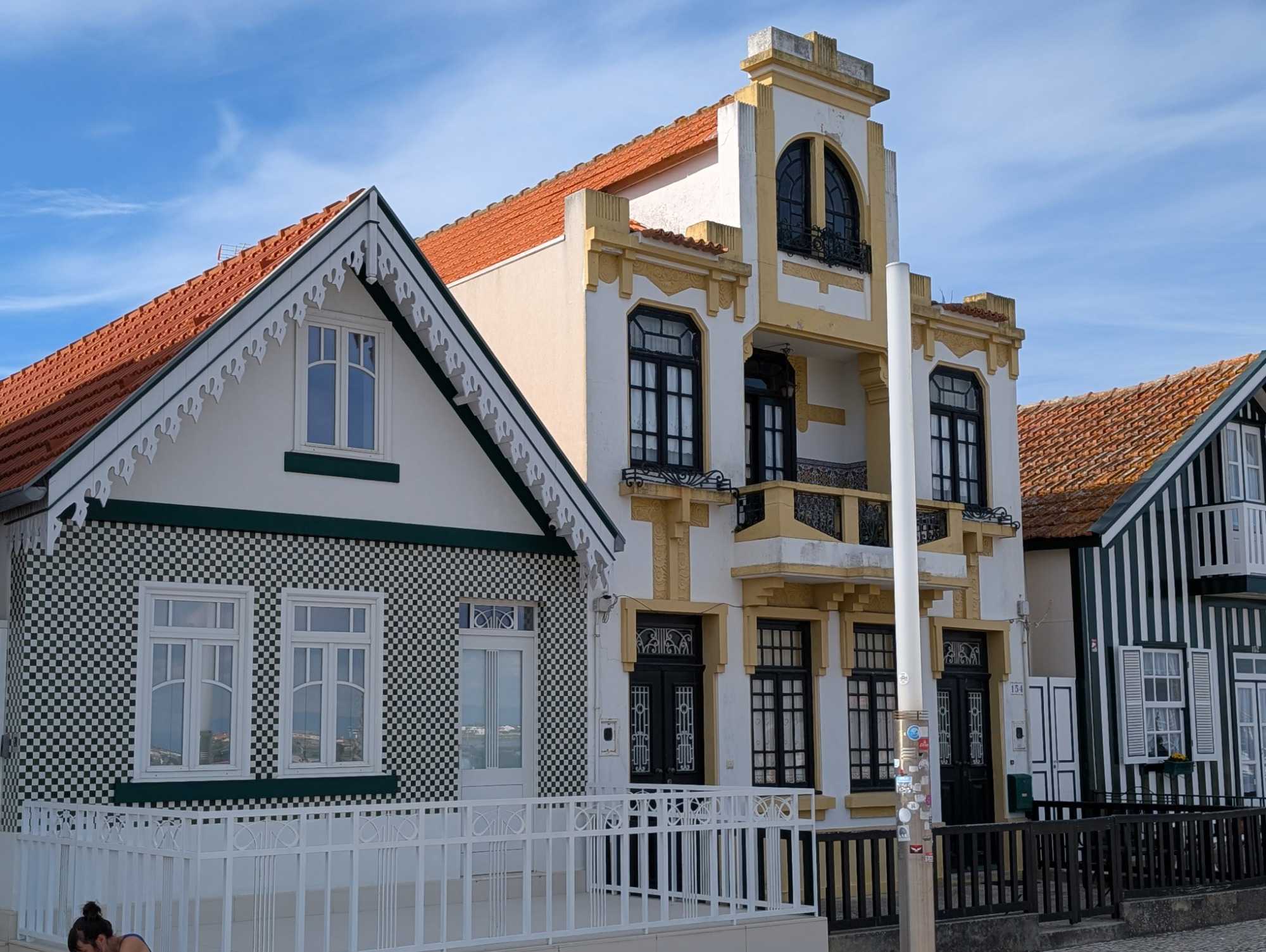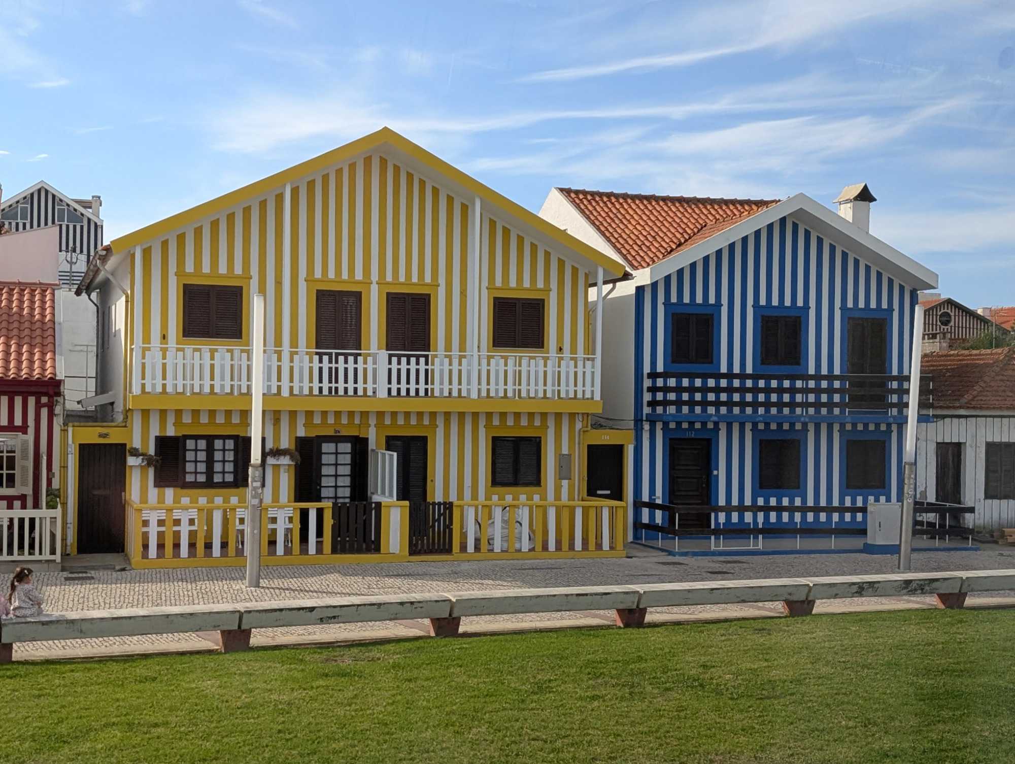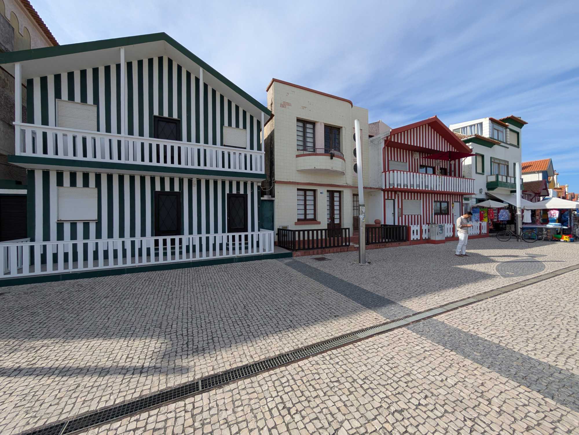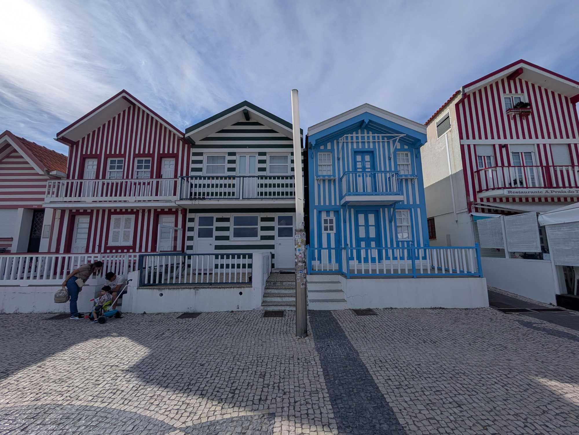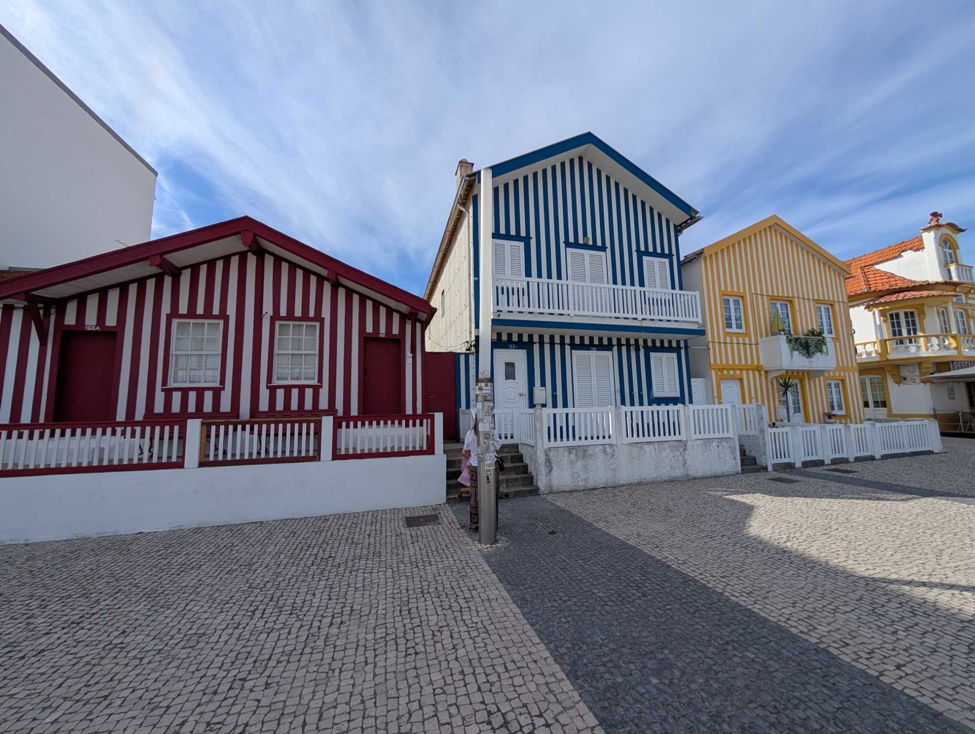 Le cœur du village réside dans ses célèbres "Palheiros", d'anciennes cabanes de pêcheurs et entrepôts de sel qui ont été transformées en petites maisons d'habitation et de vacances. Des bandes vives (rouge, vert, bleu, jaune, ocre) alternant avec le blanc, conférant au village un air de fête perpétuelle et de tableau graphique. Ces rayures, d'abord utilitaires (pour signaler les maisons aux pêcheurs), sont devenues la signature de Costa Nova.