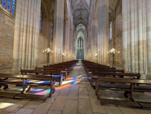Après le petit-déjeuner, nous entreprenons la Route du Cister. C'est un chemin à travers l'histoire et la spiritualité du Portugal. Elle relie trois monuments d'une splendeur incomparable, témoins de l'influence de l'ordre cistercien et de la grandeur de la monarchie portugaise. Ce n'est pas une route tracée par des panneaux, mais par les émotions qui se dégagent de ces monastères. Elle relie le Monastère d'Alcobaça, pur et majestueux, le Monastère de Batalha, chef-d'œuvre du gothique flamboyant, et le Couvent du Christ à Tomar, que nous avons déjà exploré. Parcourir cette route, c'est se plonger dans un passé où la pierre racontait les histoires de foi, d'amour et de batailles, où chaque couloir, chaque cloître, chaque voûte est un hymne à l'art et au silence.