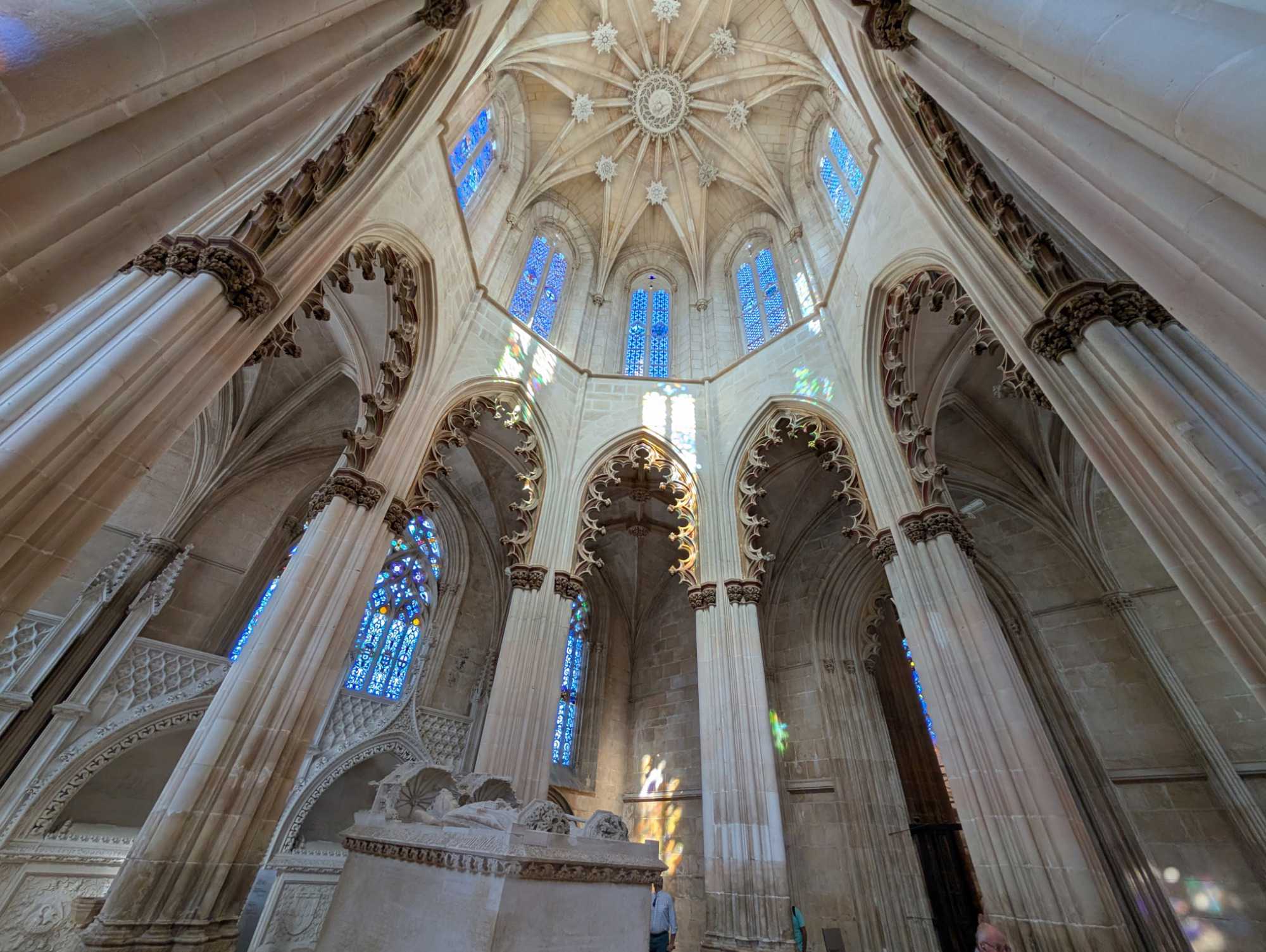 Les Chapelles Inachevées (Capelas Imperfeitas) ne sont pas seulement un monument, mais un hymne à la beauté de l'incomplétude. Cet octogone de chapelles, accolé au monastère de Batalha, est un rêve de pierre qui n'a jamais été achevé. Au lieu d'un toit, le ciel s'offre à la vue, encadré par des arcs de pierre d'une finesse exquise. Les portails, chefs-d'œuvre de l'art manuélin, sont sculptés avec une profusion de détails qui racontent des histoires de foi et d'ambition. On dirait de la dentelle à même la pierre. Marcher à l'intérieur, c'est ressentir la grandeur d'un projet interrompu, c'est contempler un passé figé dans son inachèvement, un lieu où la nature et l'art se rejoignent dans un silence solennel.