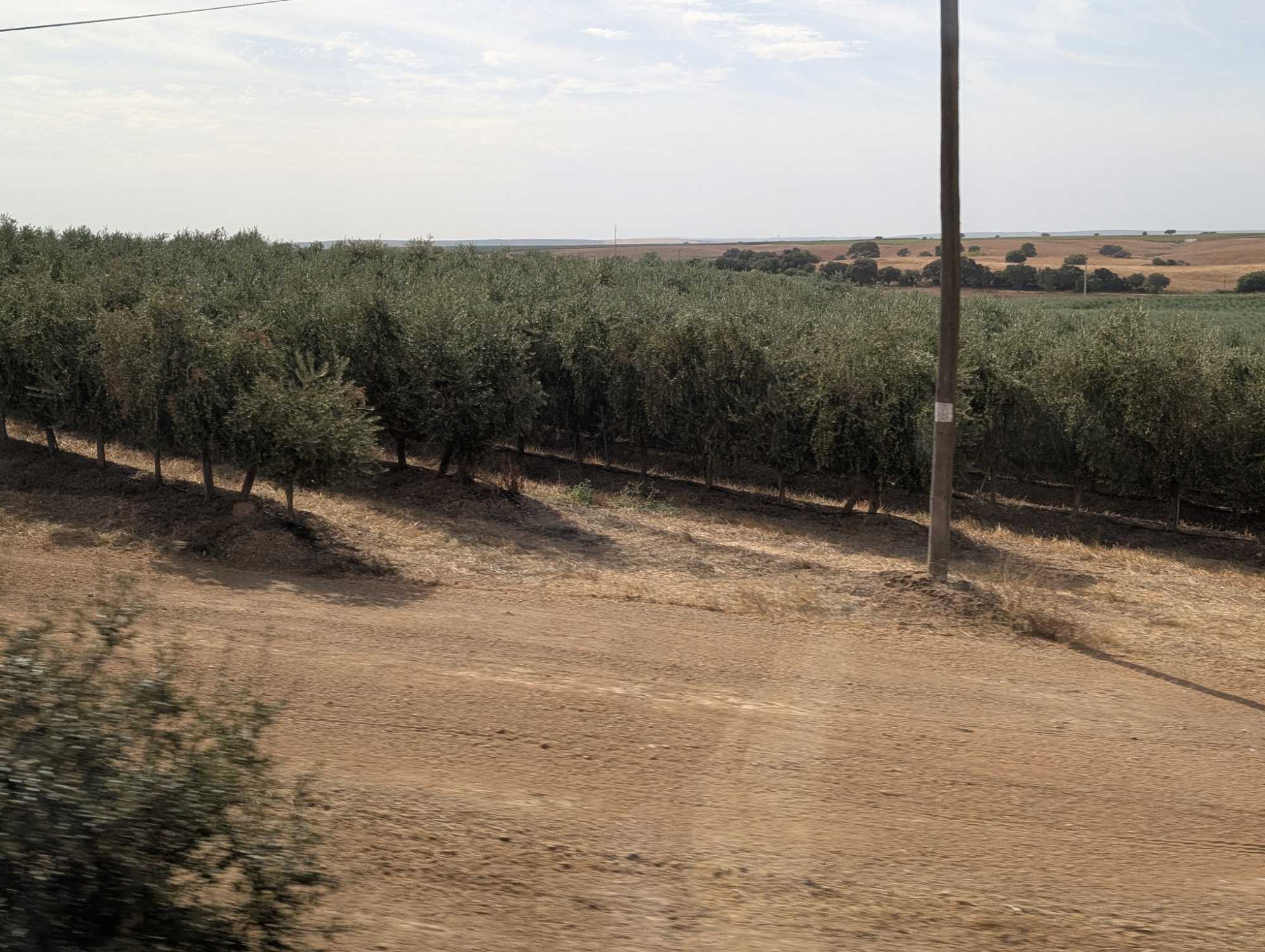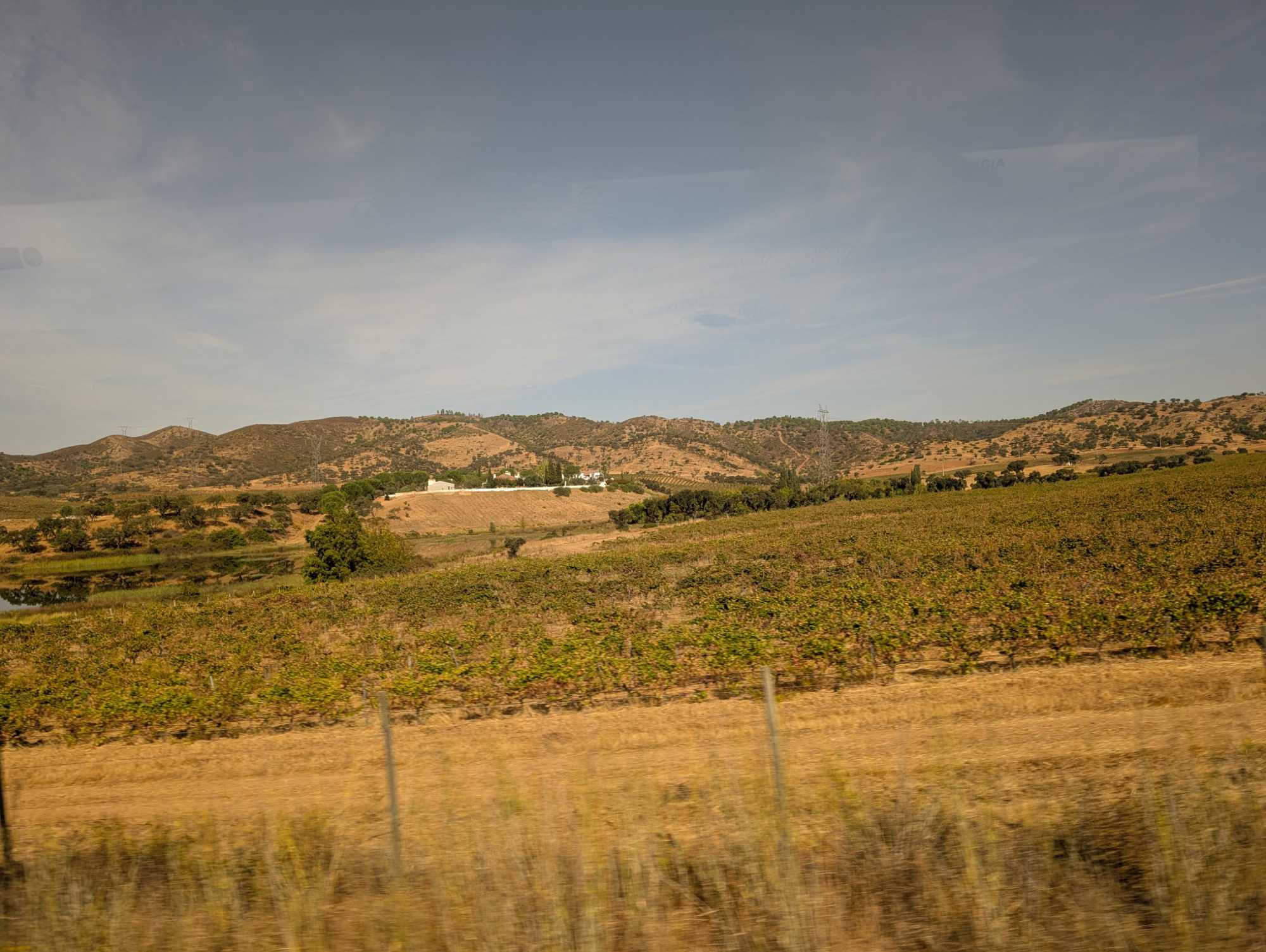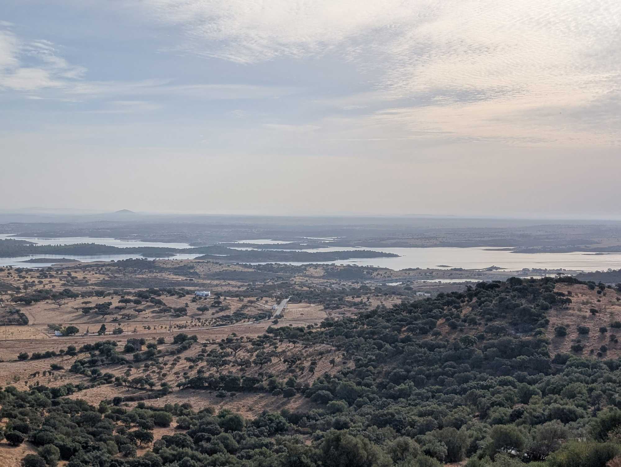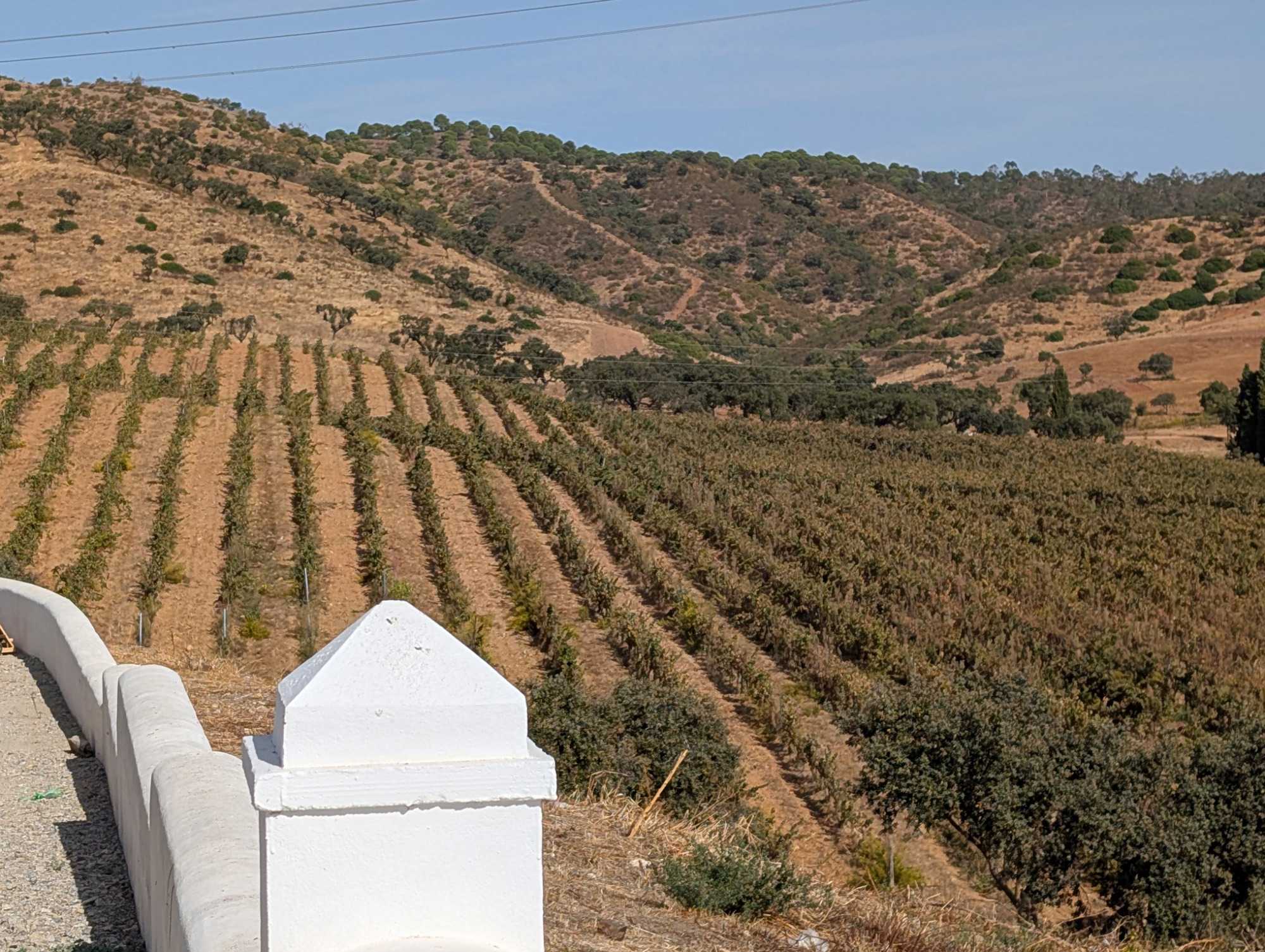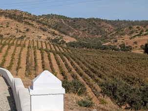 Le trajet d'Évora à Monsaraz est une traversée de l'Alentejo, où la route se déploie à travers un paysage doux et vallonné. Les champs d'oliviers argentés et de chênes-lièges majestueux s'étendent à perte de vue, ponctués de temps à autre par des monticules de granit et des villages blanchis à la chaux. L'air, souvent parfumé par le thym sauvage et le romarin, porte le murmure de l'histoire ancienne de la région. En Alentejo, les vignes, les amandiers, les oliveraies et les chênes-lièges sont les trois piliers du paysage et de l'économie. Les vignobles dessinent des lignes géométriques sur les collines, produisant des vins robustes et élégants. Les oliveraies, avec leurs arbres séculaires aux troncs tordus, semblent veiller sur la terre, et l'huile qu'elles donnent est une véritable richesse. Quant aux chênes-lièges, rois de cette terre, ils se dressent majestueusement, leur écorce ocre témoignant de la récolte passée, et leur ombre offrant un refuge précieux.
