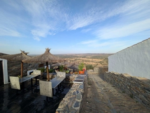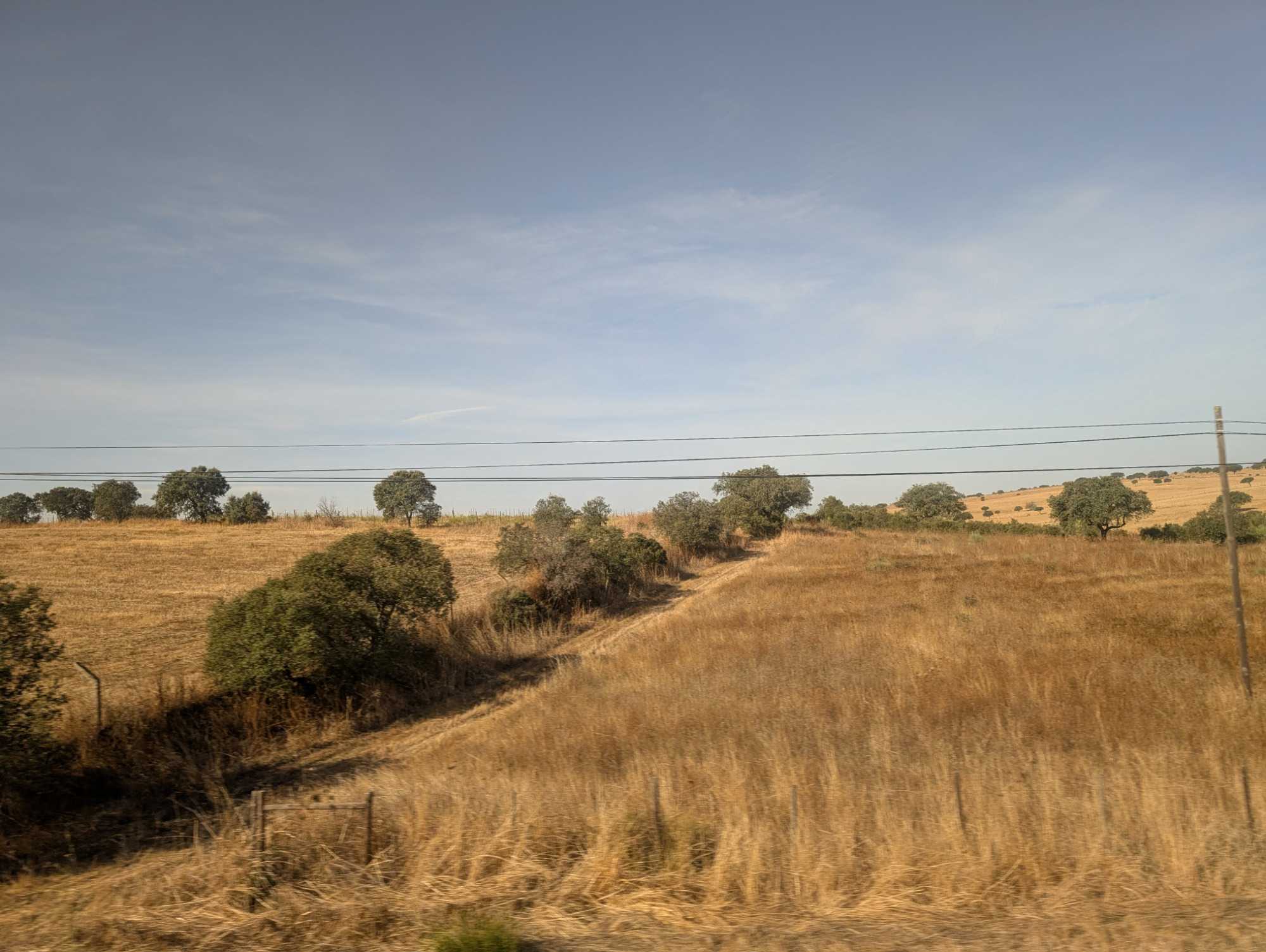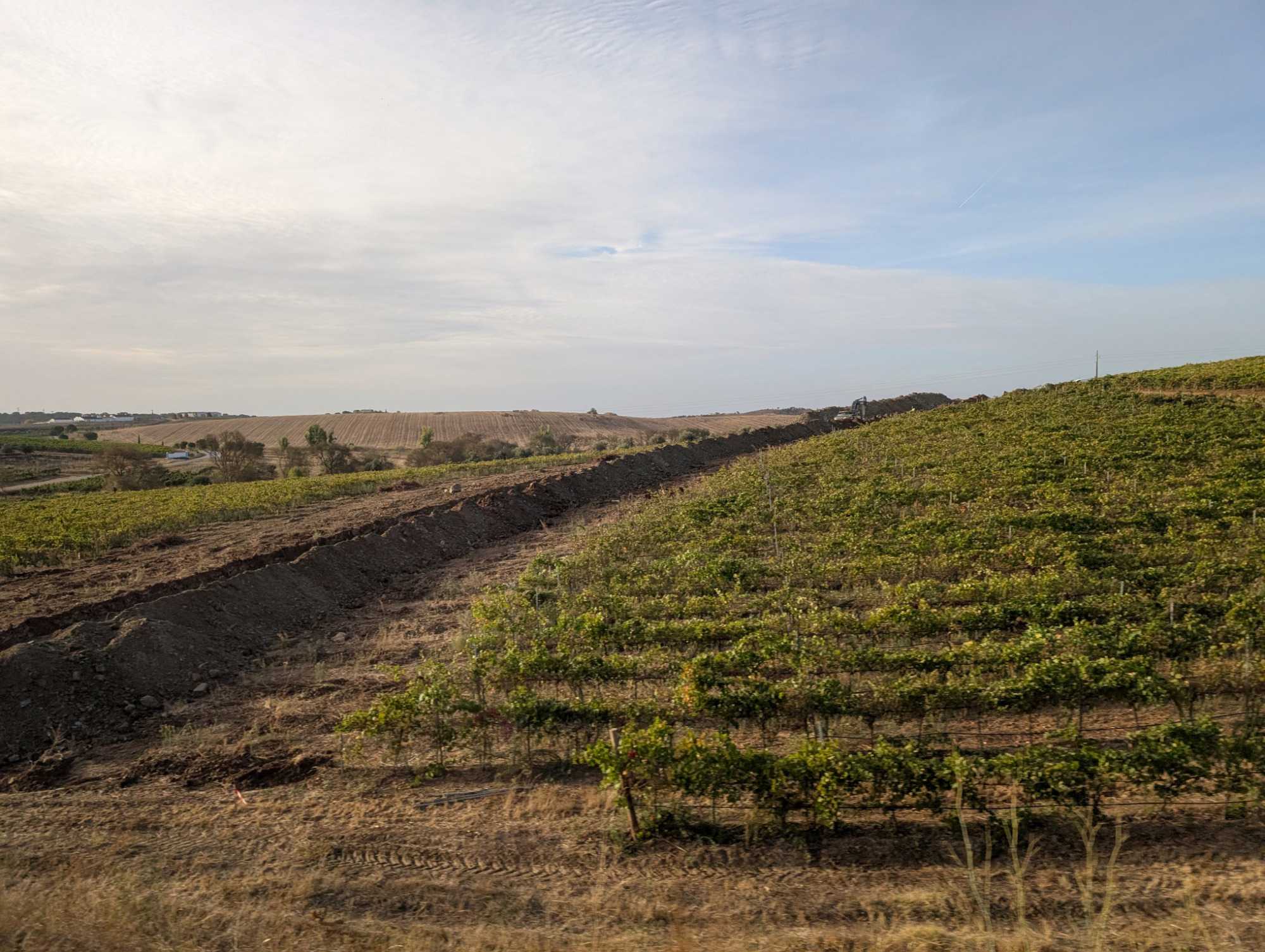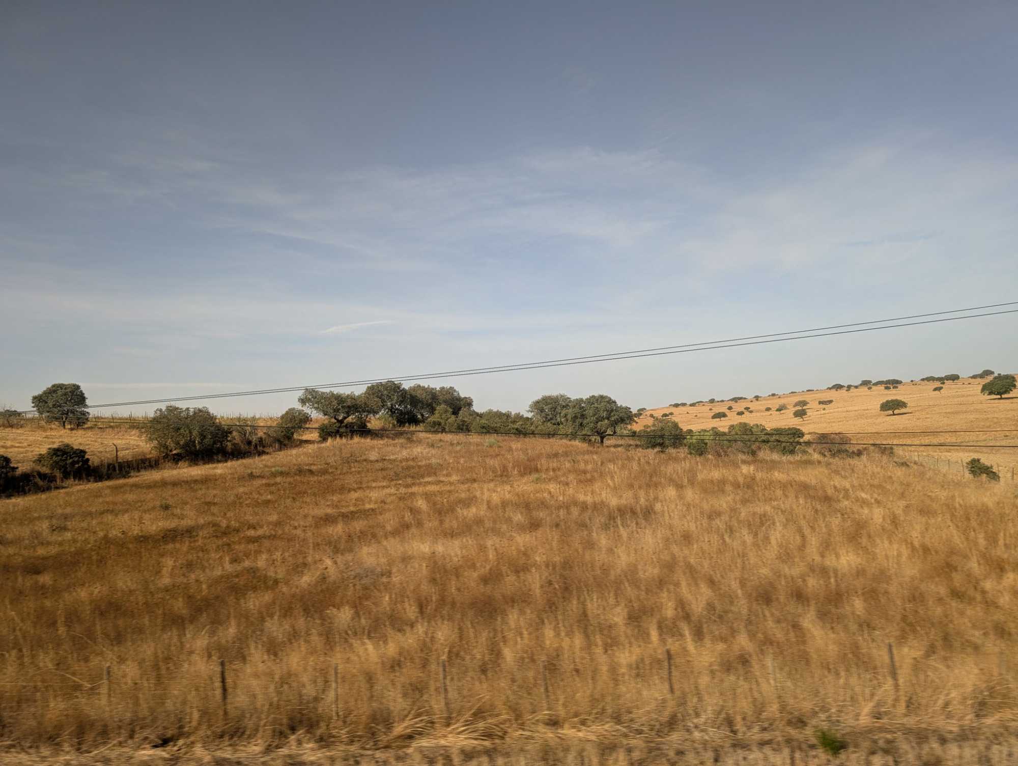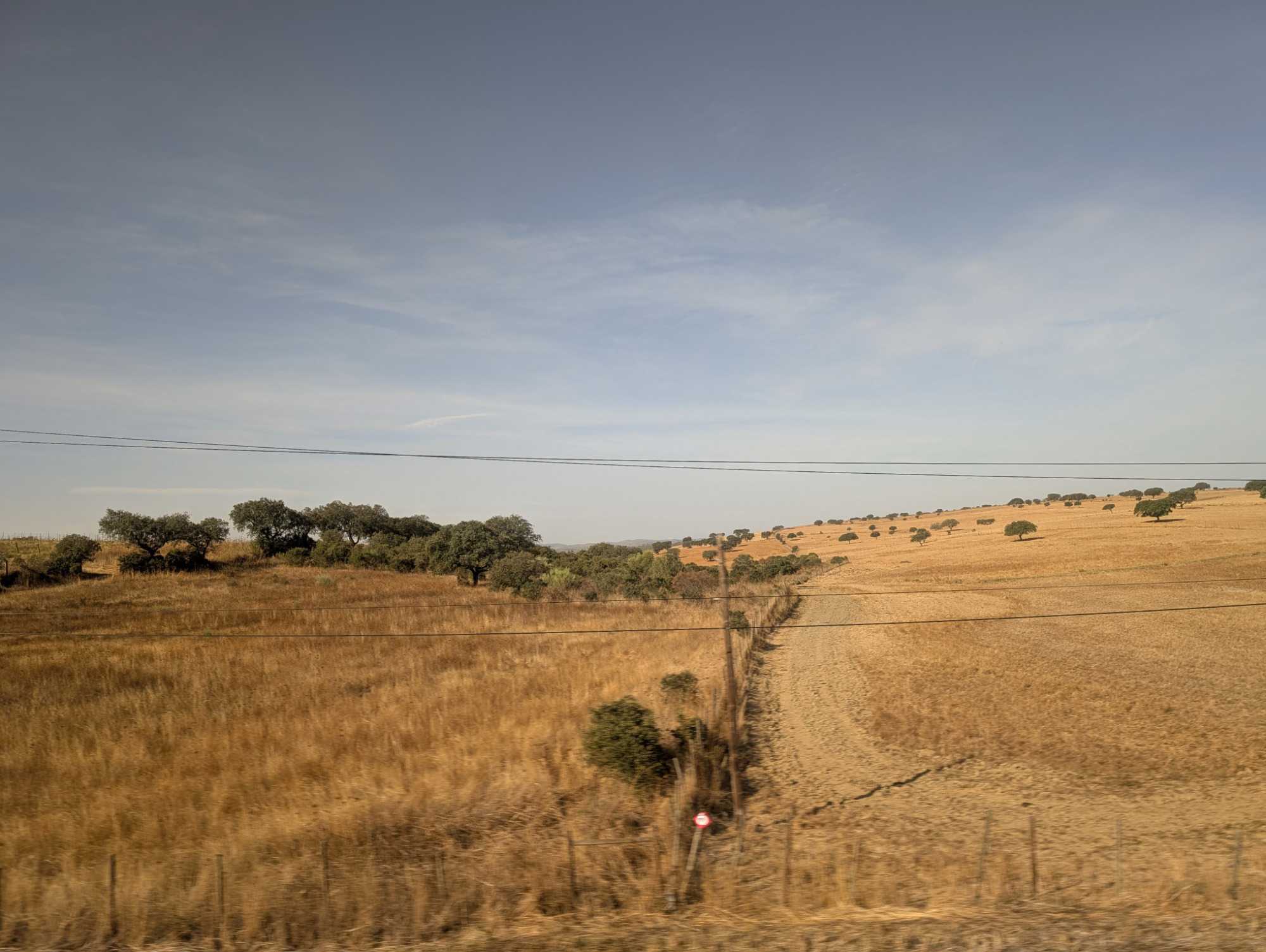 Le trajet d'Évora à Monsaraz est une traversée de l'Alentejo, où la route se déploie à travers un paysage doux et vallonné. Les champs d'oliviers argentés et de chênes-lièges majestueux s'étendent à perte de vue, ponctués de temps à autre par des monticules de granit et des villages blanchis à la chaux. L'air, souvent parfumé par le thym sauvage et le romarin, porte le murmure de l'histoire ancienne de la région. En Alentejo, les vignes, les amandiers, les oliveraies et les chênes-lièges sont les trois piliers du paysage et de l'économie. Les vignobles dessinent des lignes géométriques sur les collines, produisant des vins robustes et élégants. Les oliveraies, avec leurs arbres séculaires aux troncs tordus, semblent veiller sur la terre, et l'huile qu'elles donnent est une véritable richesse. Quant aux chênes-lièges, rois de cette terre, ils se dressent majestueusement, leur écorce ocre témoignant de la récolte passée, et leur ombre offrant un refuge précieux.