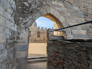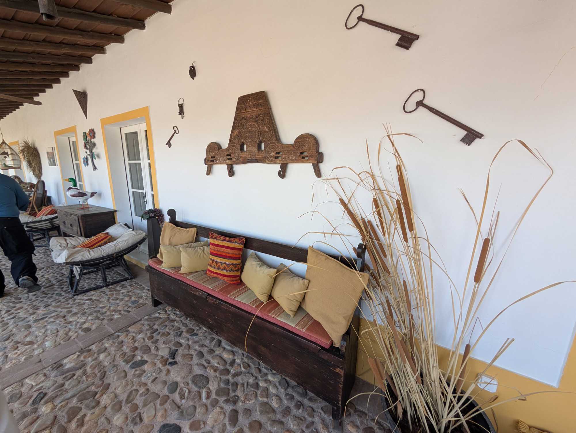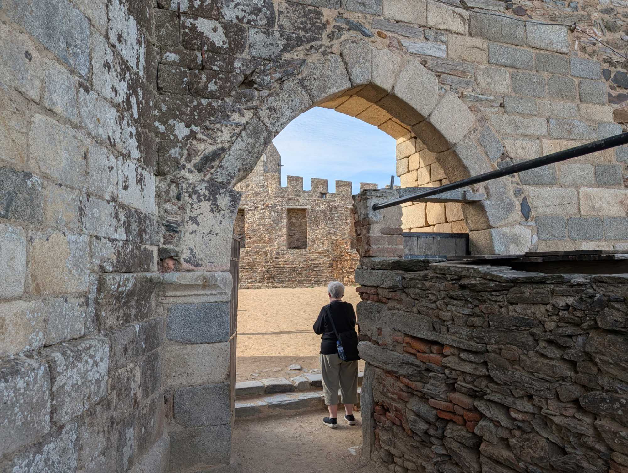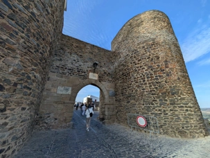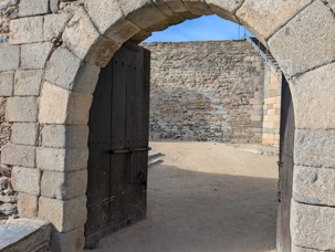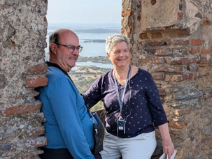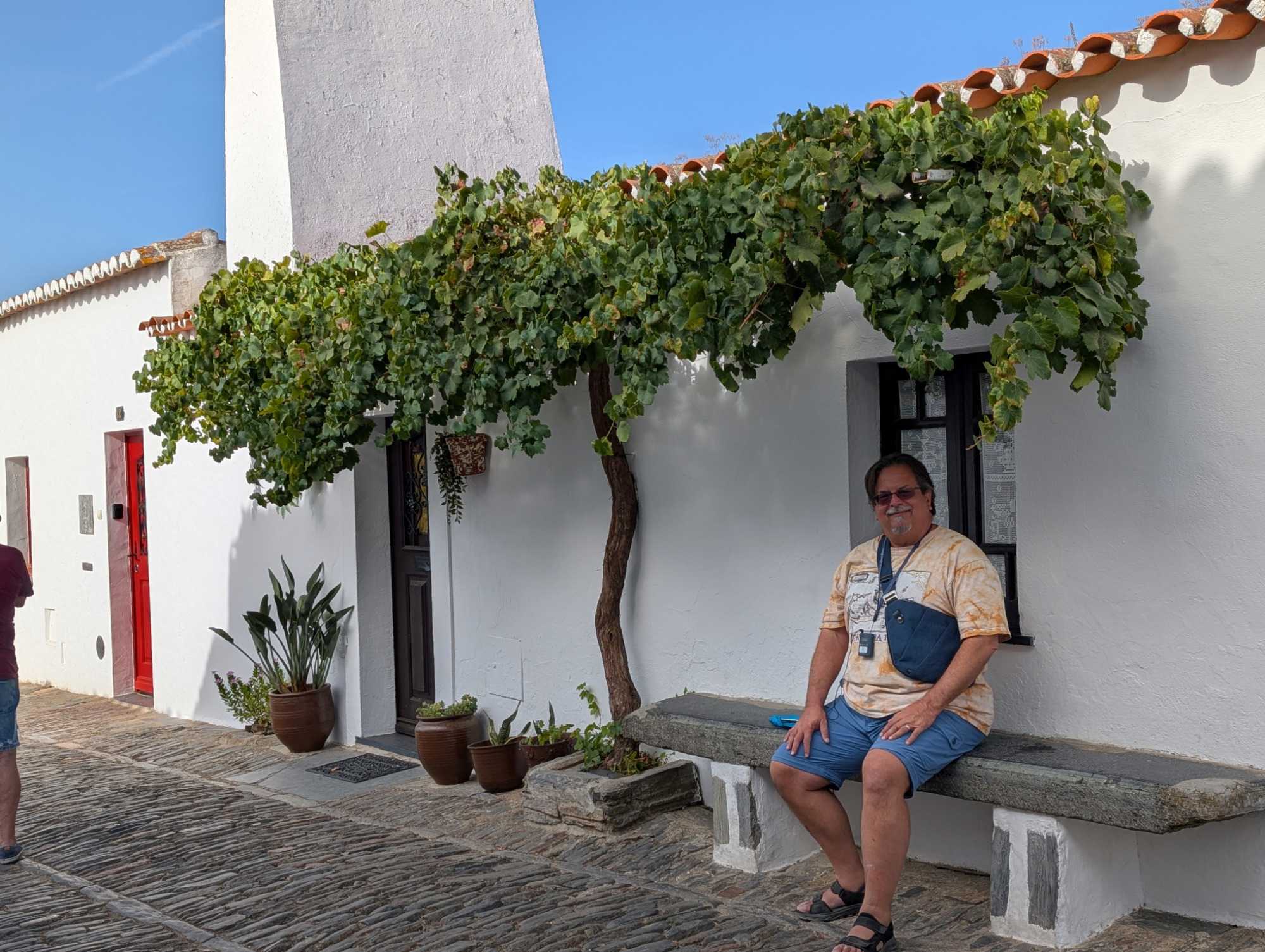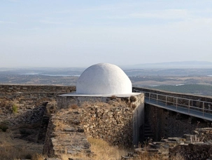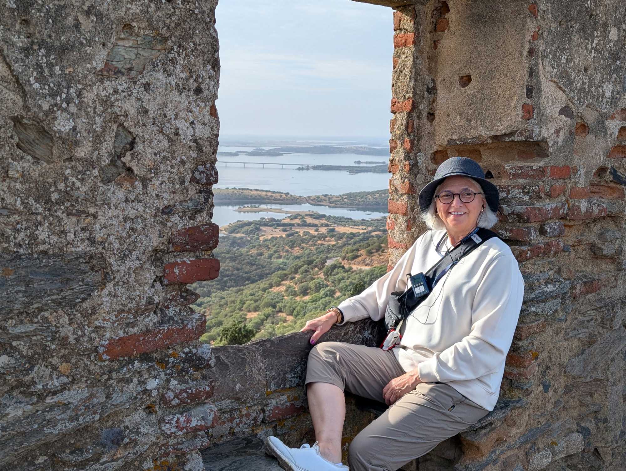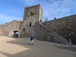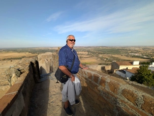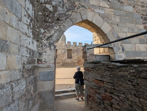 Nous arrivons à Monsaraz, tout près de la frontière espagnole. Perché au sommet d'une colline, le village médiéval de Monsaraz surplombe le plus grand lac artificiel d'Europe, le lac d'Alqueva. Ses rues étroites et pavées, bordées de maisons blanchies à la chaux, mènent à un château et à des remparts qui offrent une vue à couper le souffle sur le paysage de l'Alentejo. Le lieu dégage une atmosphère de paix et de sérénité, figée dans le temps. Son château médiéval aux toits rougeâtres fait face au arage hydro-électrique d'Alqueva.