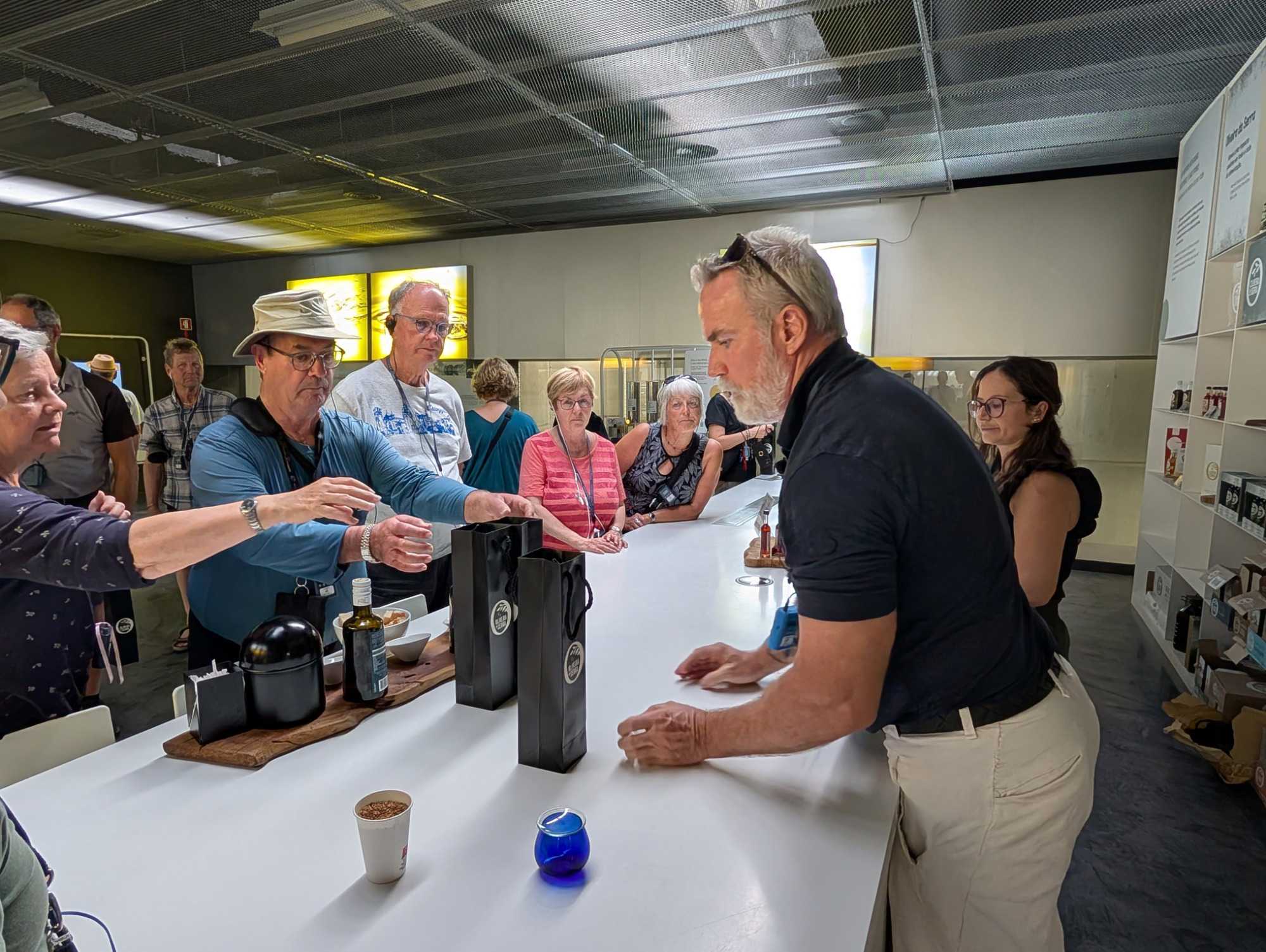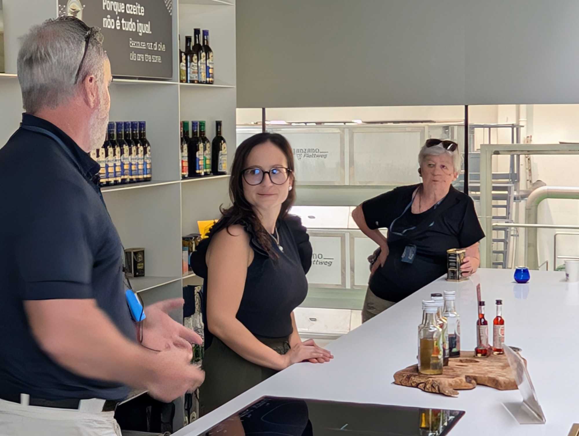 Nous nous arrêtons pour visiter la plus grande usine d'huile d'olive du Portugal à O Lagar do Marmelo. Joana, notre guide locale, nous instruit sur les processus amenant à la confection de différentes qualités d'huile d'olive.