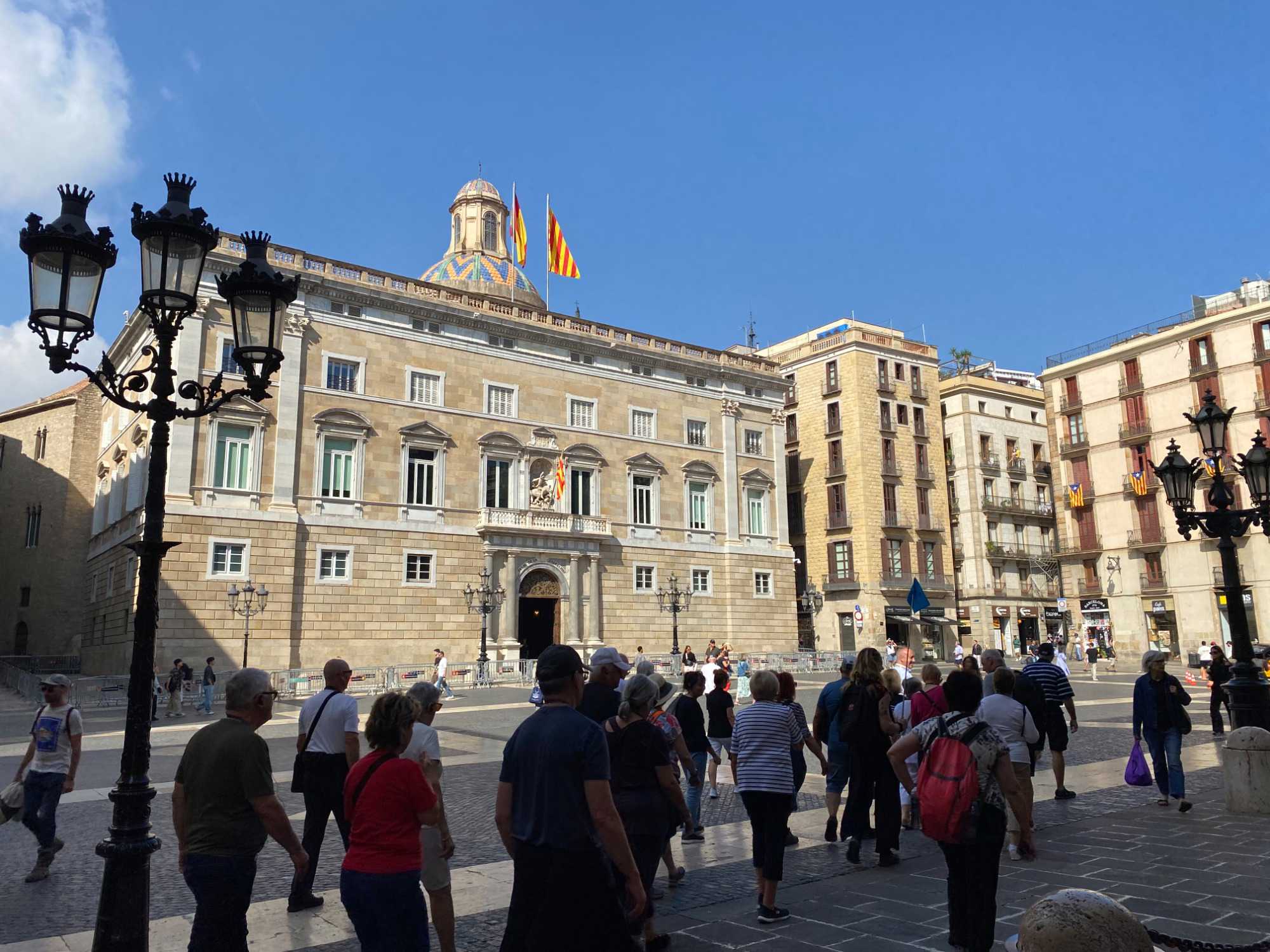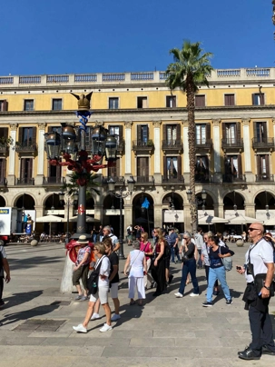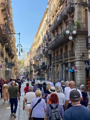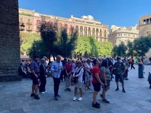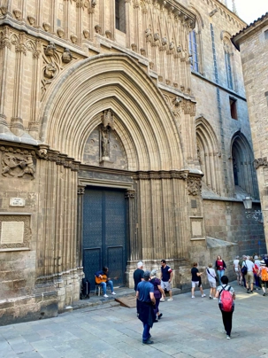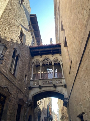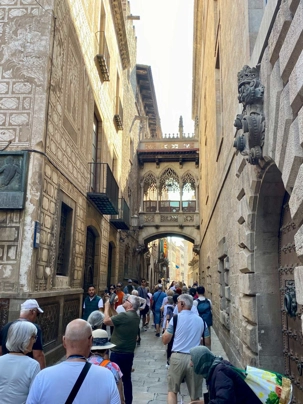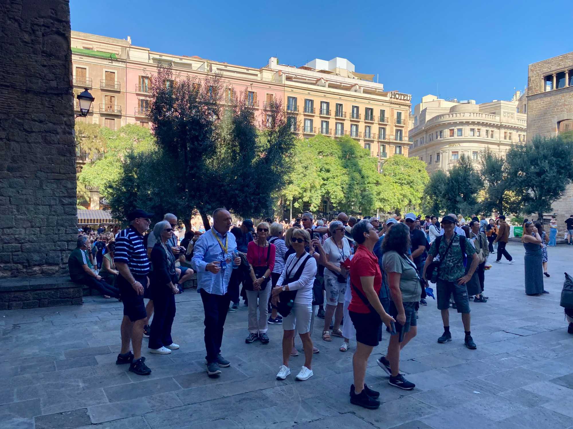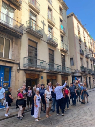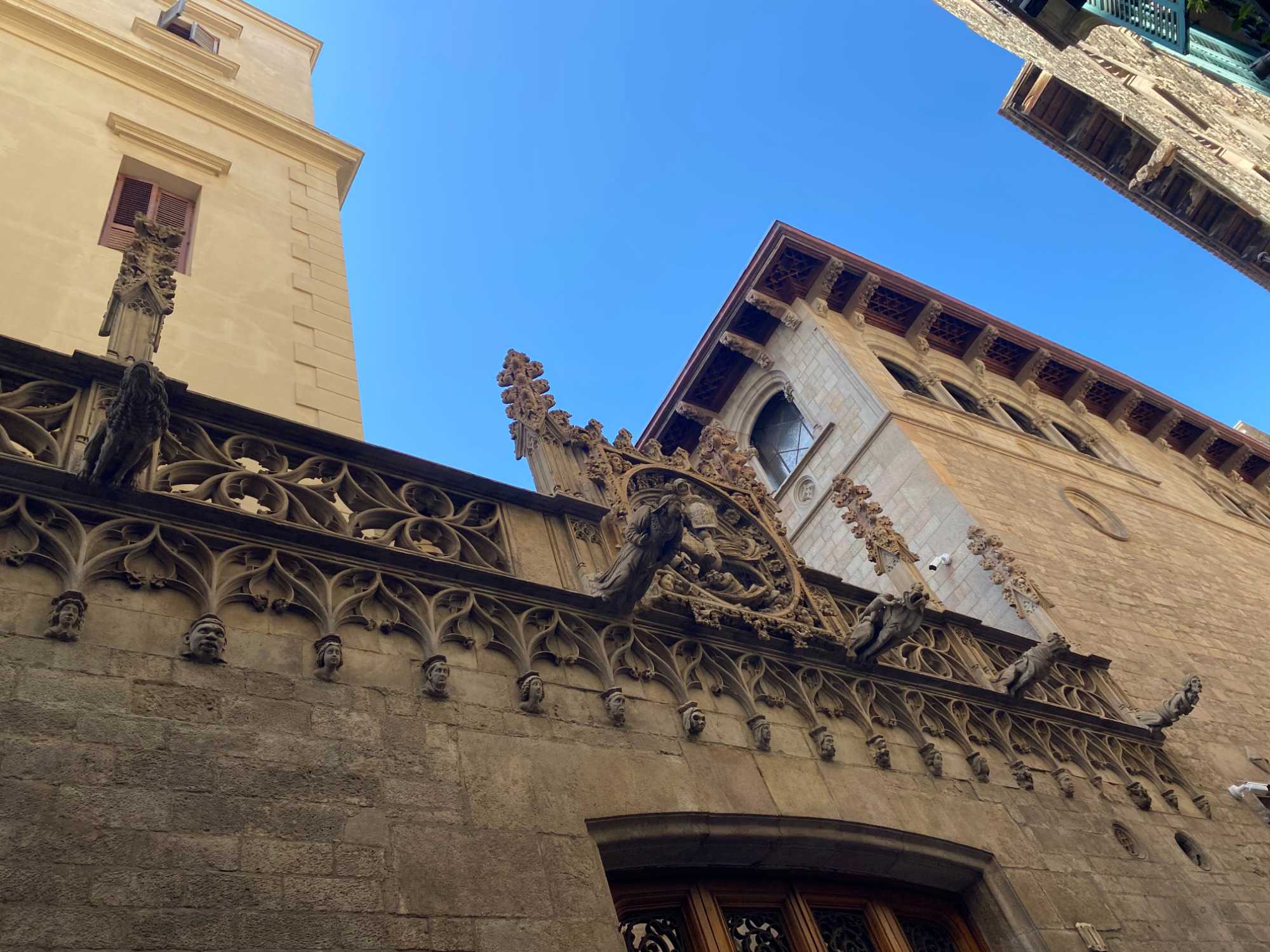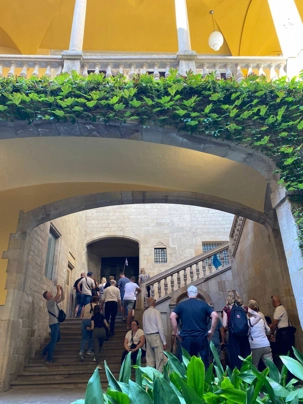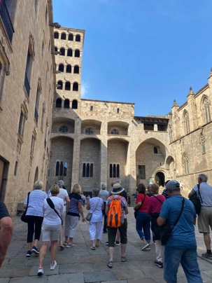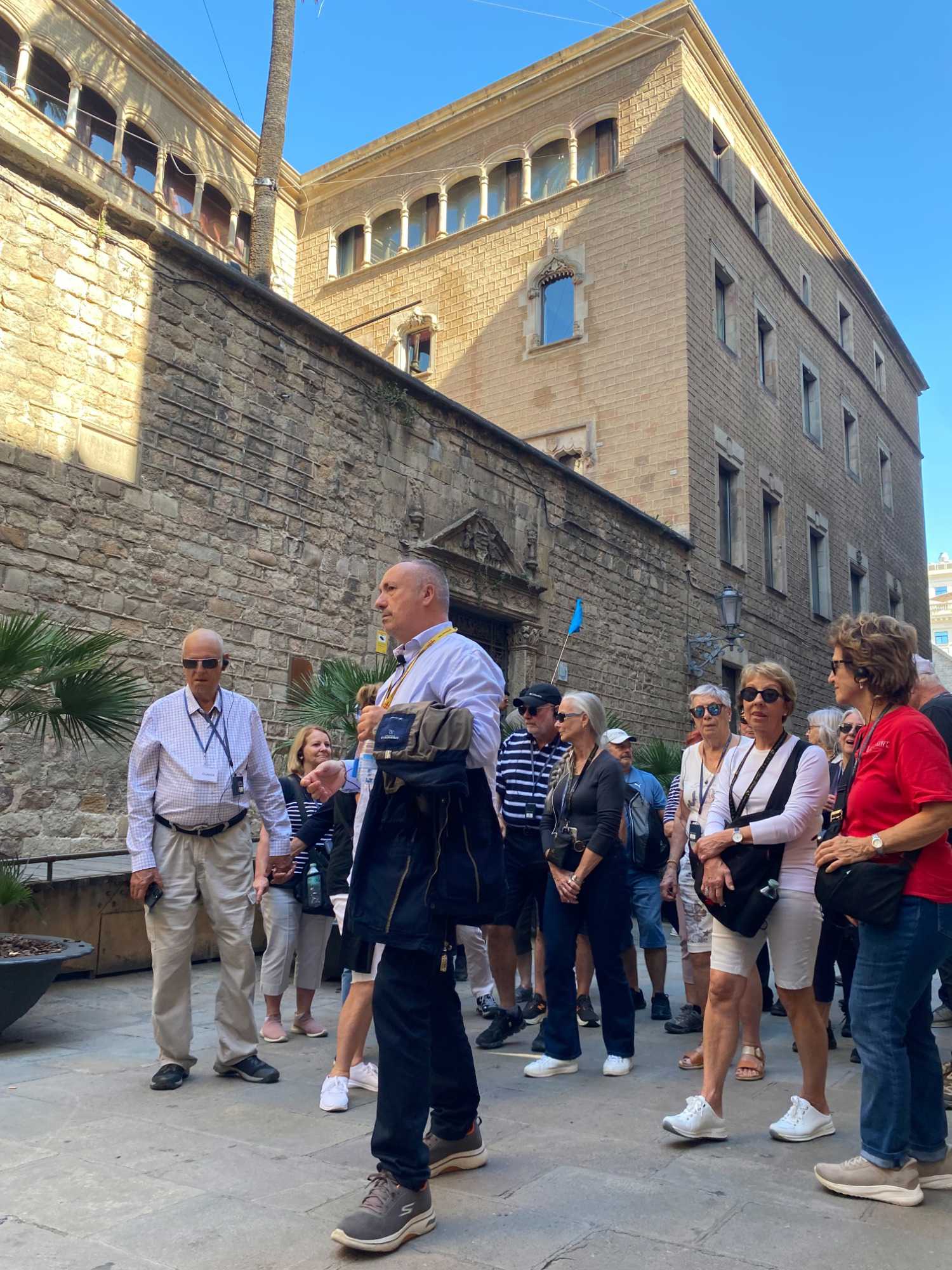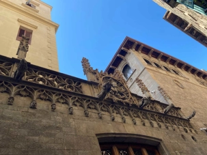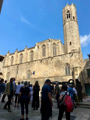 Nous enchaînons notre promenade dans le Barri Gòtic (Quartier Gothique), le cœur médiéval de Barcelone. Ses ruelles étroites regorgent de bâtiments historiques, de petites places pittoresques et de trésors cachés. Notre guide Miquel, véritable encyclopédie vivante, enrichit la visite de ses anecdotes et de ses explications passionnantes, donnant vie à chaque pierre et chaque façade, tout en répondant avec générosité à nos nombreuses questions!