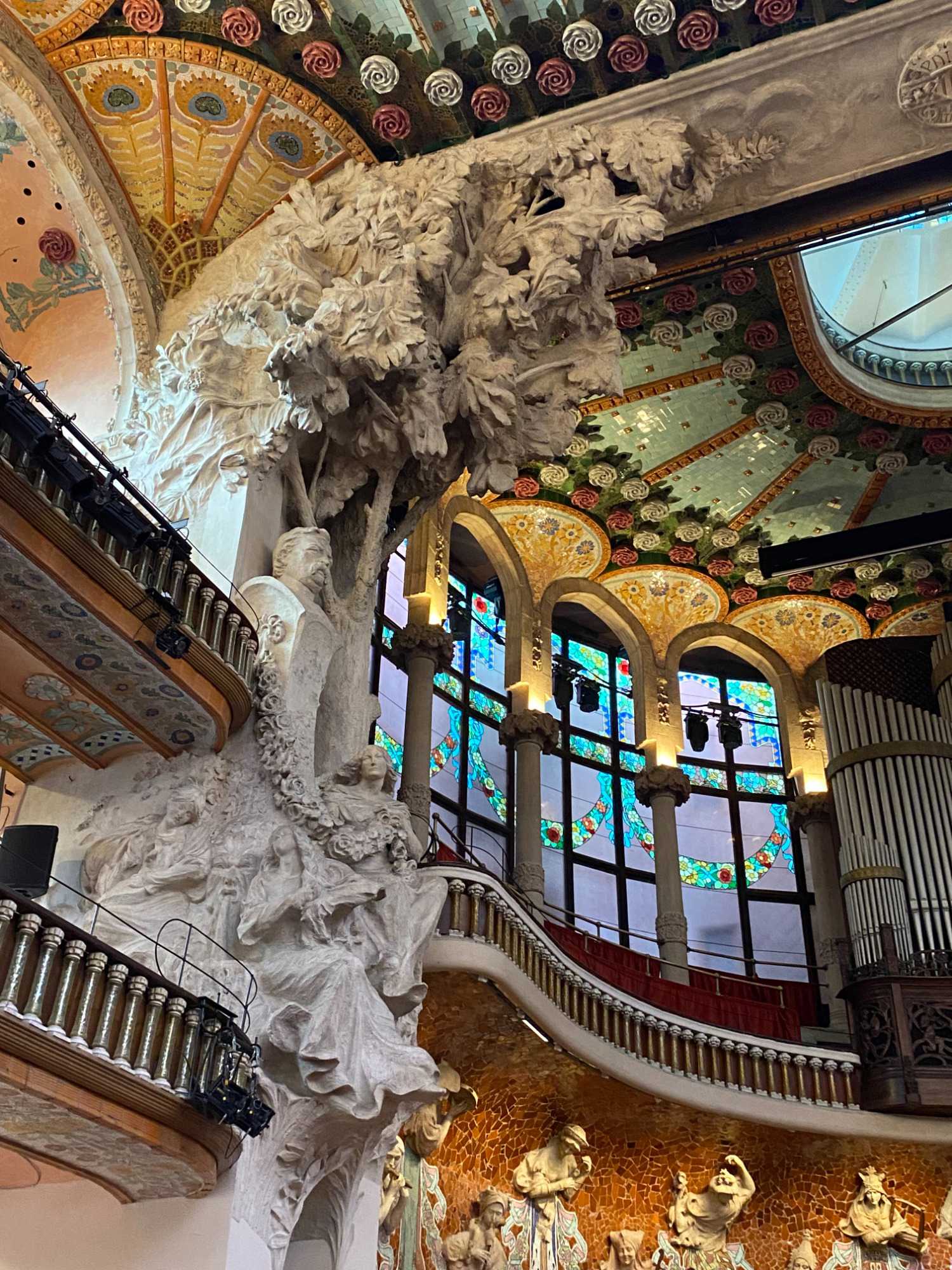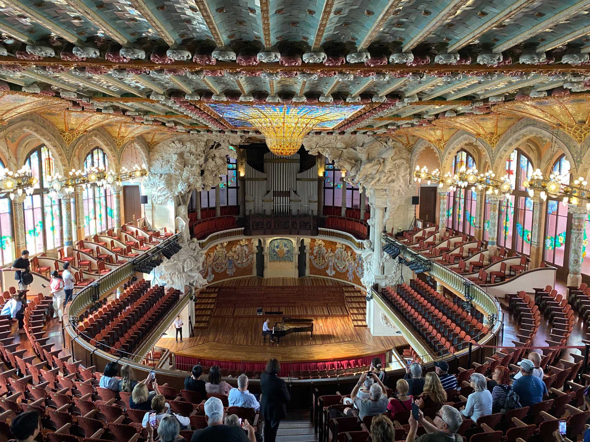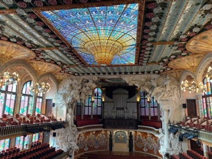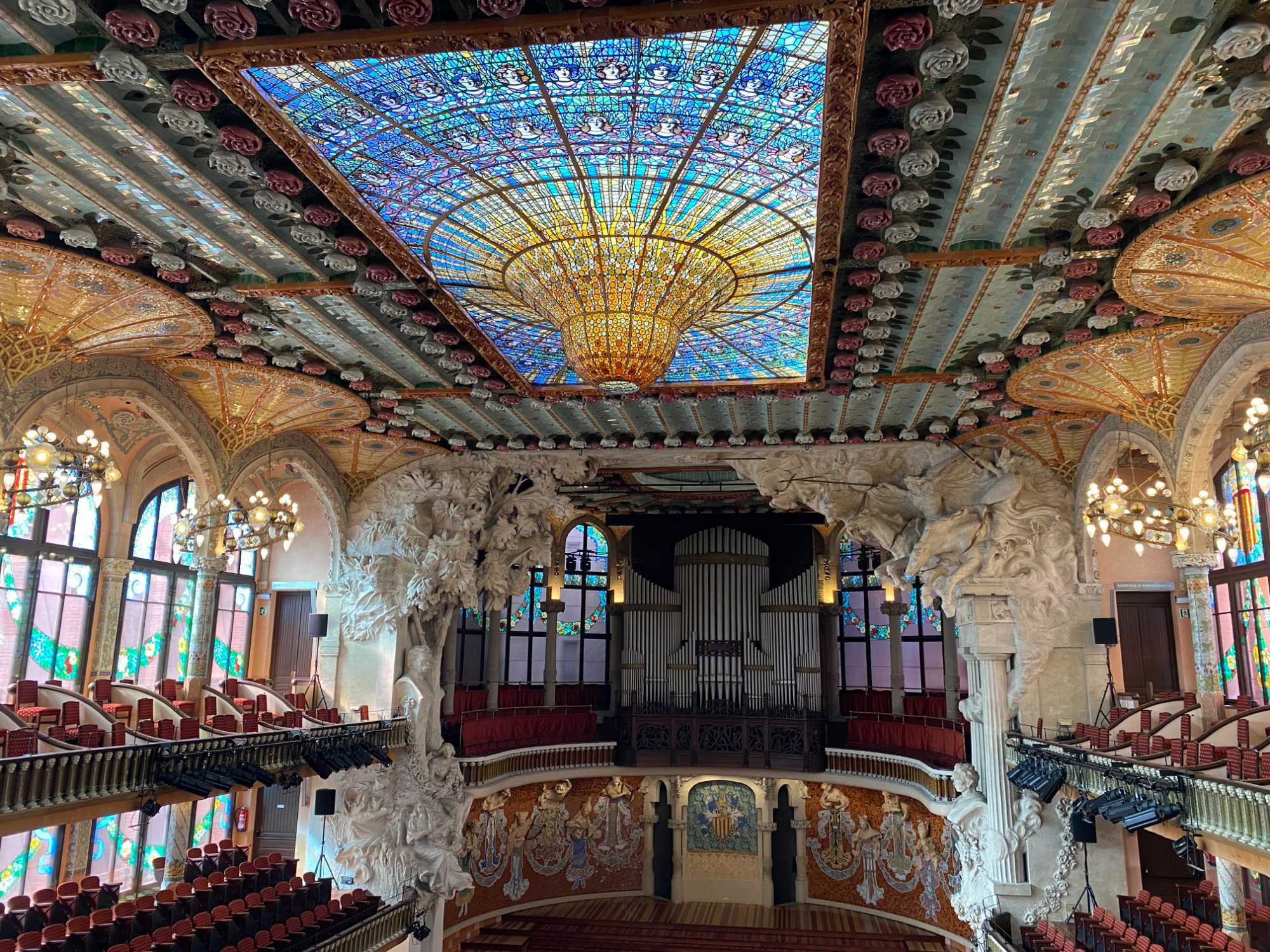 Après le repas, direction le magnifique Palau de la Música Catalana, conçu par Lluís Domènech i Montaner, l’un des grands maîtres du modernisme catalan. Souvent éclipsé par Gaudí, Domènech a pourtant marqué Barcelone de son style unique, plus ornemental et décoratif, où la lumière et la couleur occupent une place centrale.