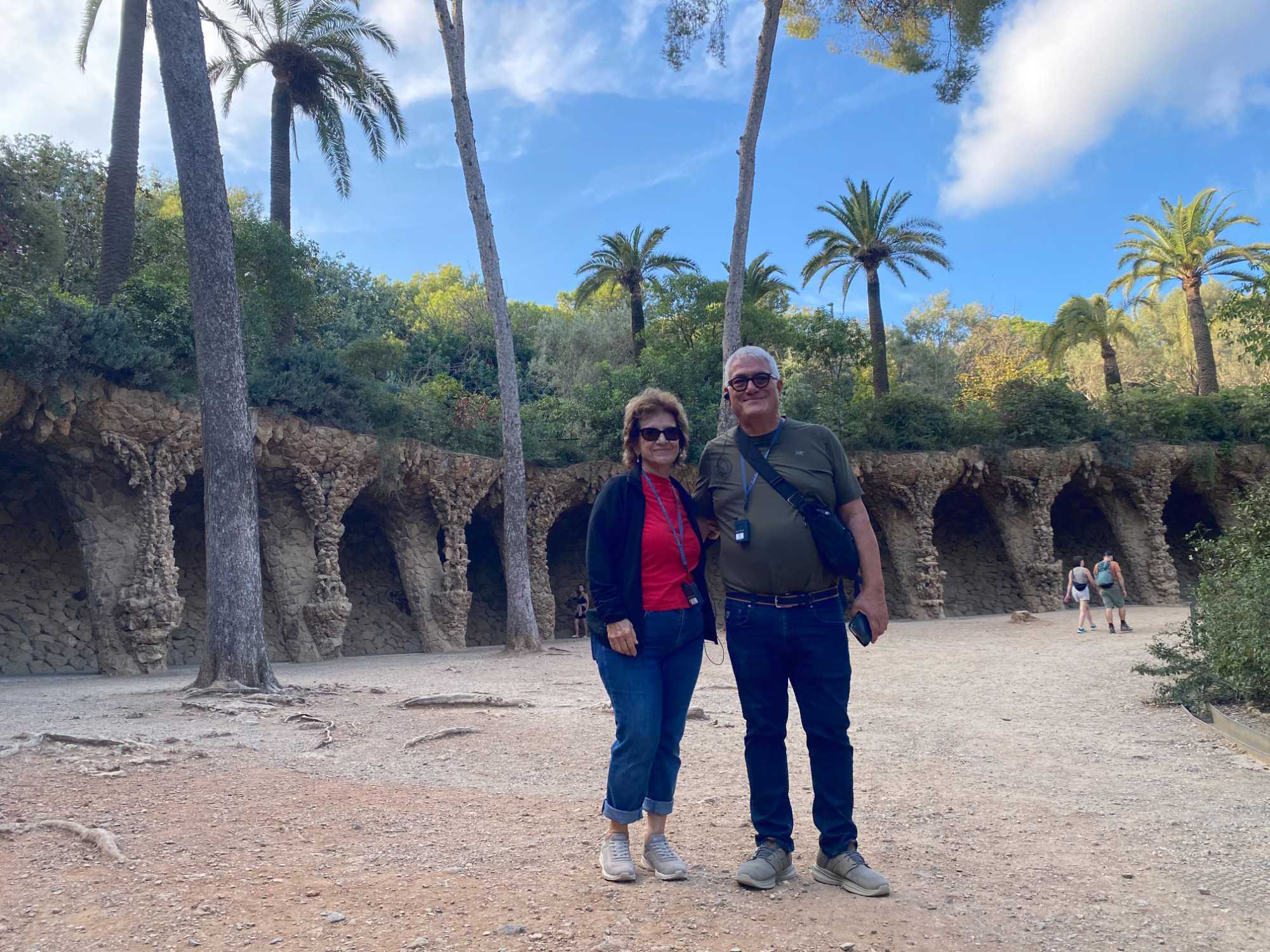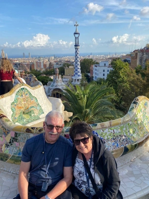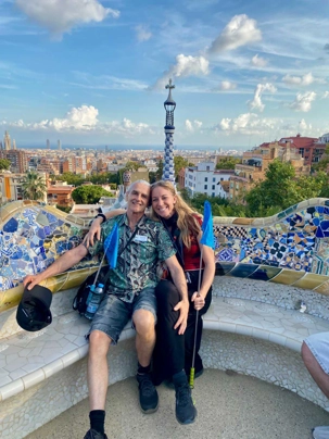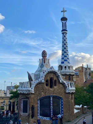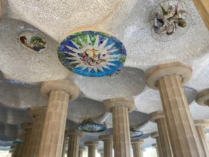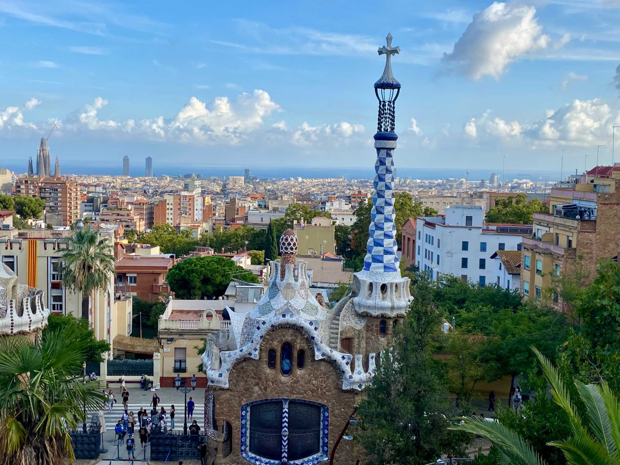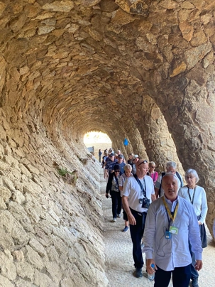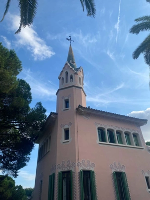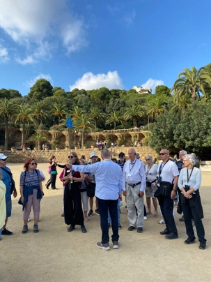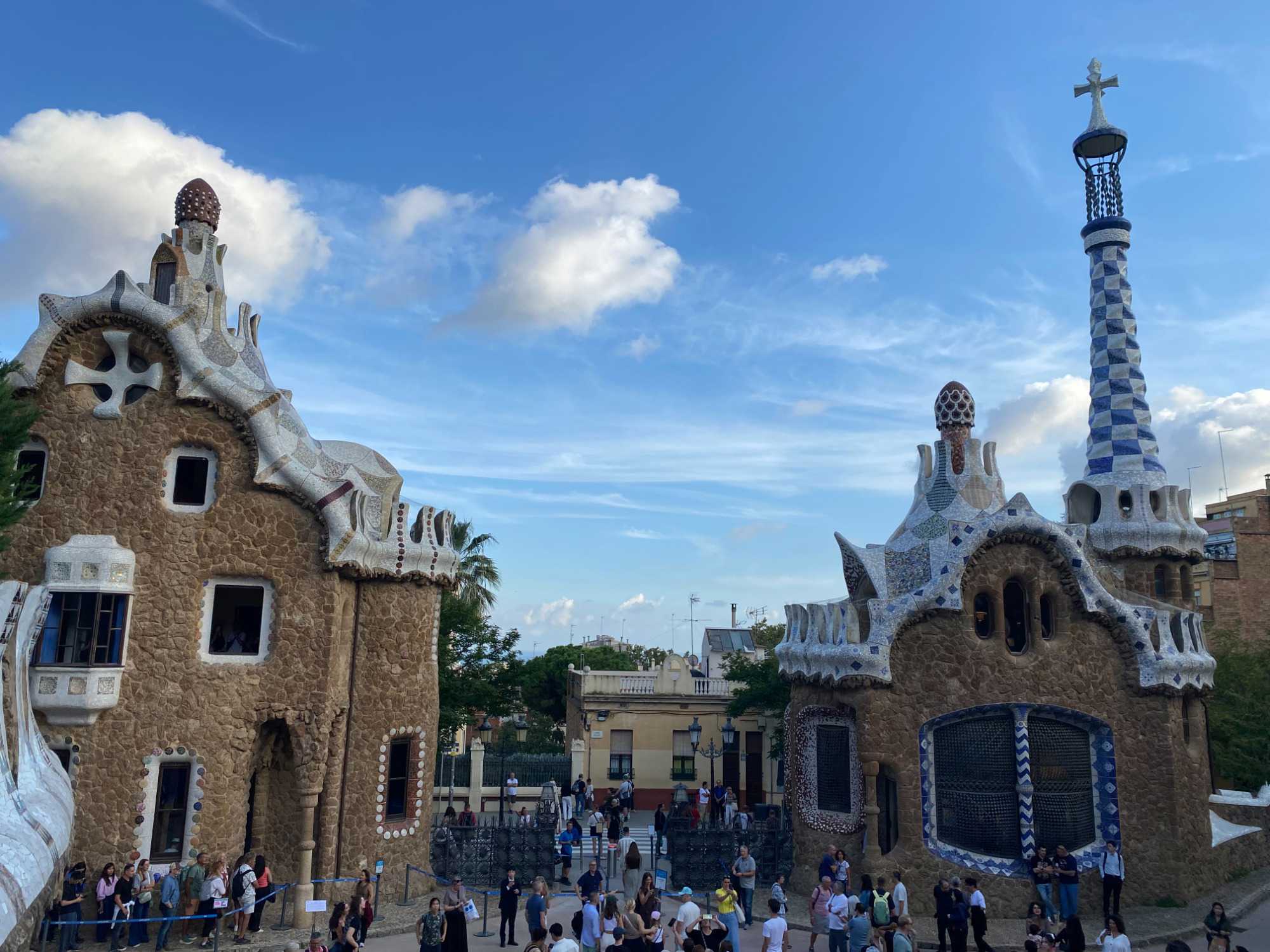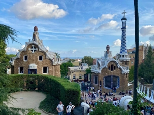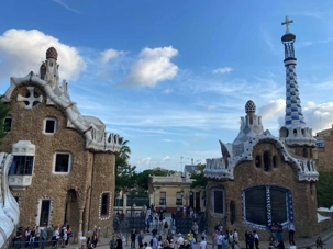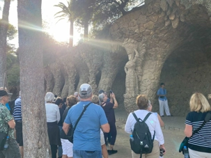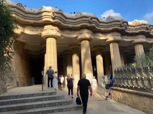 Après une trentaine de minutes, nous arrivons enfin au Parc Güell, une création emblématique de Gaudí, construite entre 1900 et 1914. Initialement conçu comme un projet immobilier par le riche entrepreneur Eusebi Güell, le parc devait accueillir une cité-jardin luxueuse composée de 60 maisons. Toutefois, en raison du manque d'intérêt pour ce concept à l’époque, seules quelques structures furent réalisées, dont la maison de Gaudí et les célèbres pavillons à l'entrée. Finalement, en 1926, le parc devint un espace public. Aujourd'hui, il est classé au patrimoine mondial de l'UNESCO et est l'un des exemples les plus remarquables de l'architecture moderniste, mêlant harmonieusement la nature et l’art.