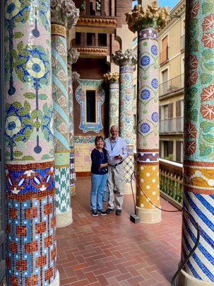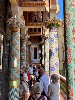 Nous reprenons le bus en direction du Parc Güell et, en chemin, Miquel nous fait découvrir plusieurs chefs-d’œuvre du modernisme catalan. Nous apercevons entre autres: