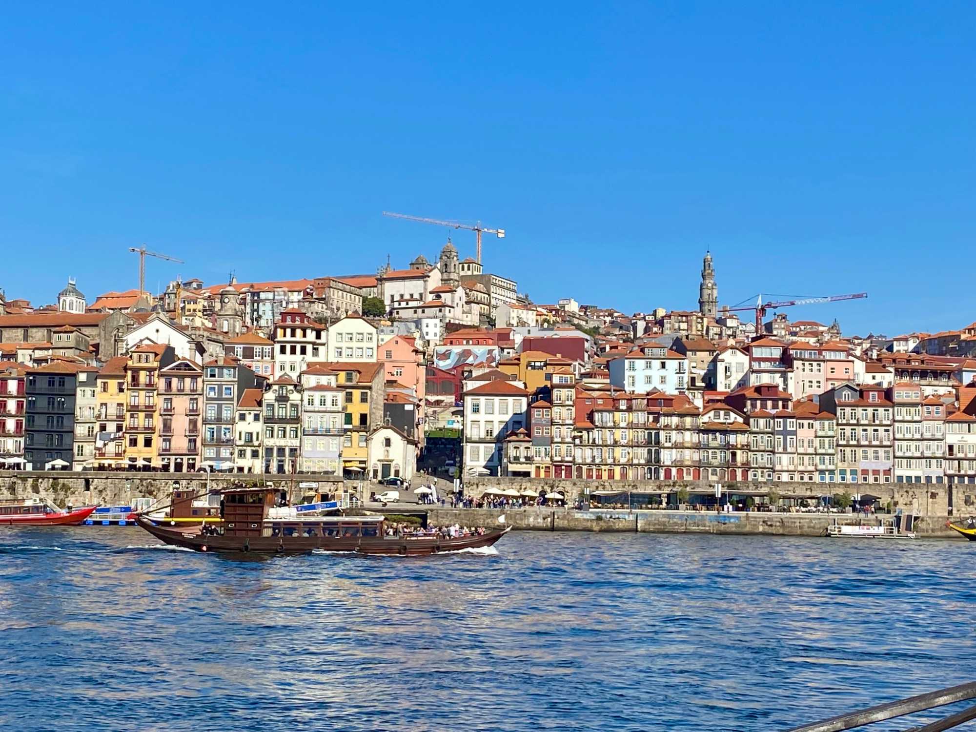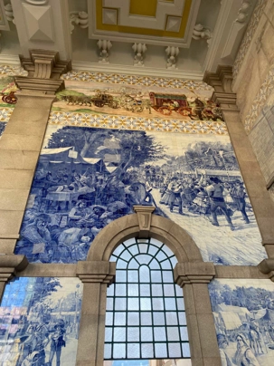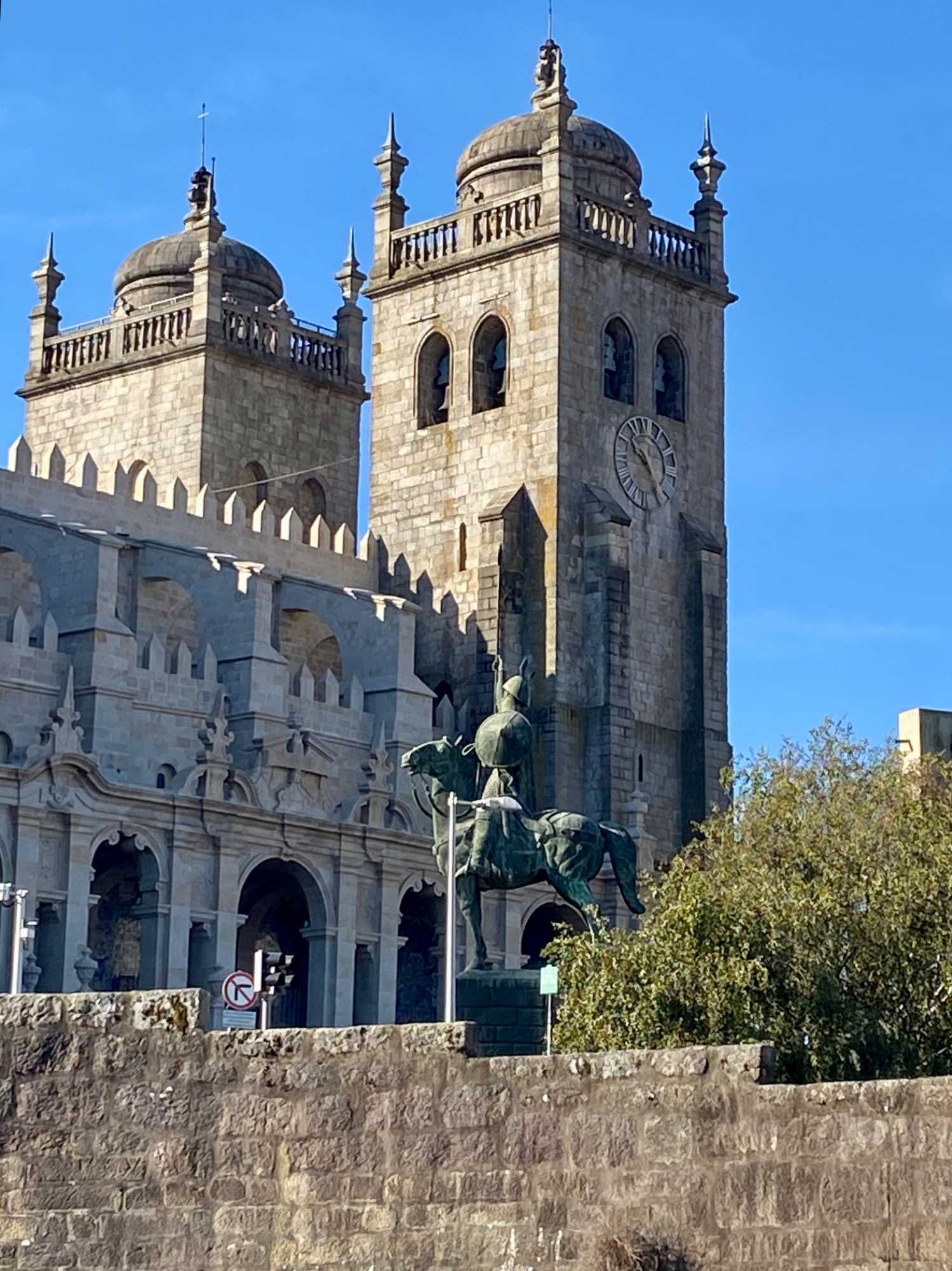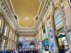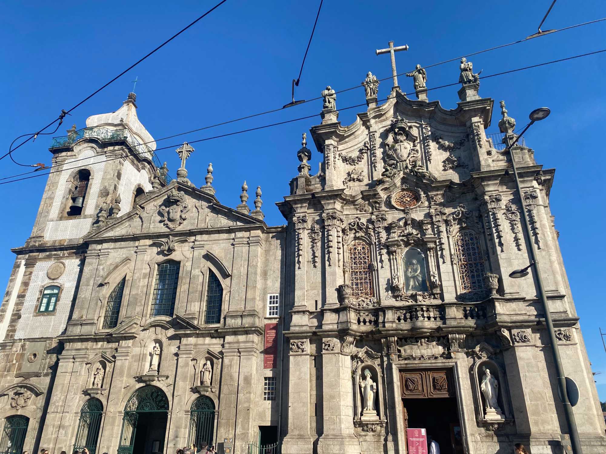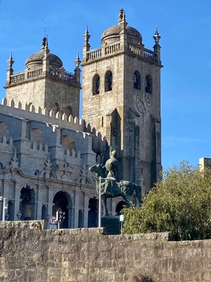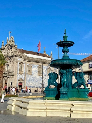 Nous avons débuté notre balade à pied dans le quartier historique de la Ribeira, avec ses ruelles étroites et pavées qui serpentent jusqu’aux rives du Douro. Ce quartier, classé au patrimoine mondial de l’UNESCO, déborde de vie avec ses cafés animés, ses petites boutiques et ses maisons aux façades ornées de faïences colorées. En chemin, nous avons admiré la fontaine du Lion et découvert la plus ancienne gare de Porto, puis nous avons poursuivi vers deux joyaux emblématiques: L’église dos Clérigos et sa tour de 76 mètres (érigée à l’emplacement du tout premier fort de la ville), ainsi que la cathédrale de Porto, datant du XIIᵉ siècle — deux magnifiques exemples de l’architecture religieuse portugaise. 🔔