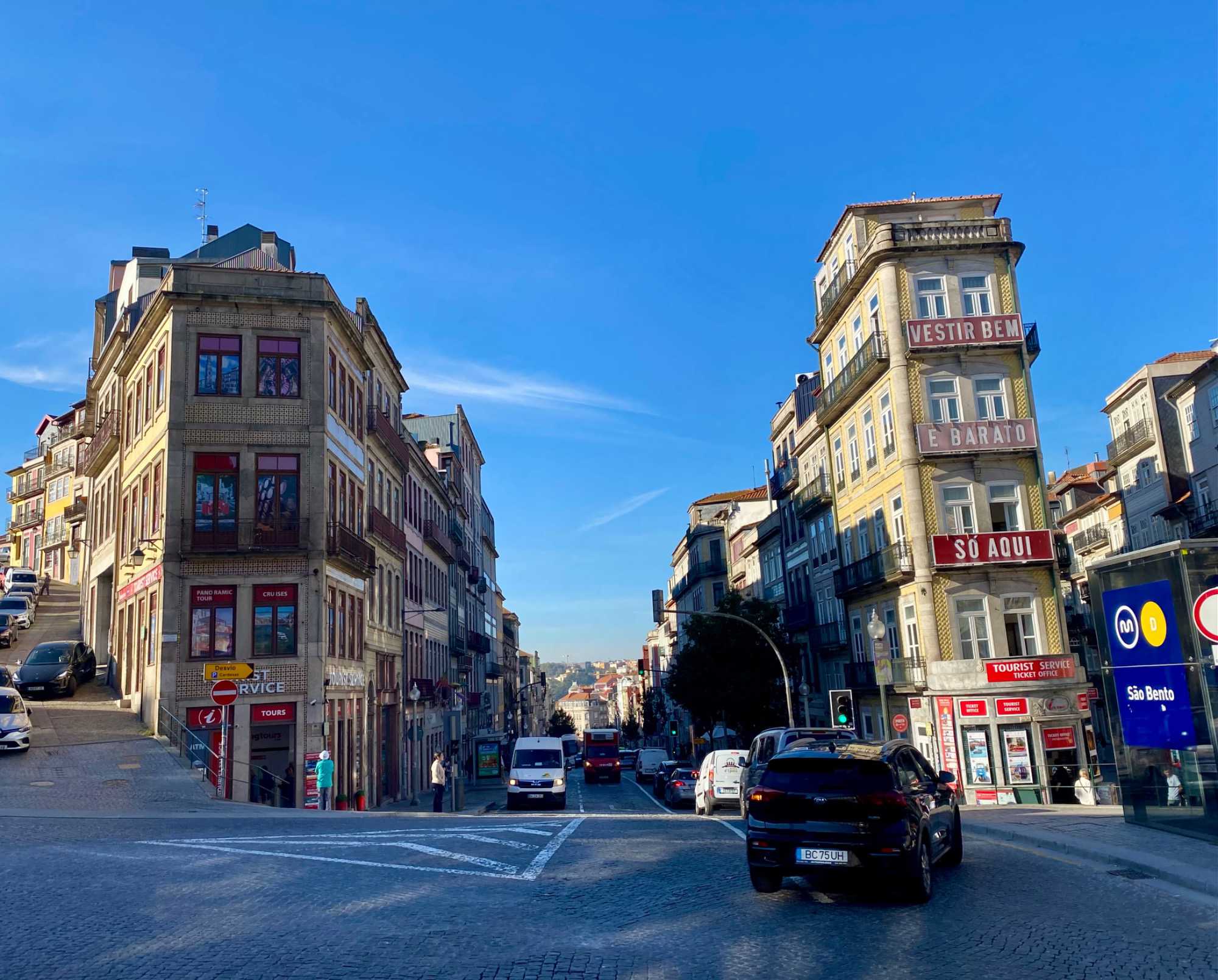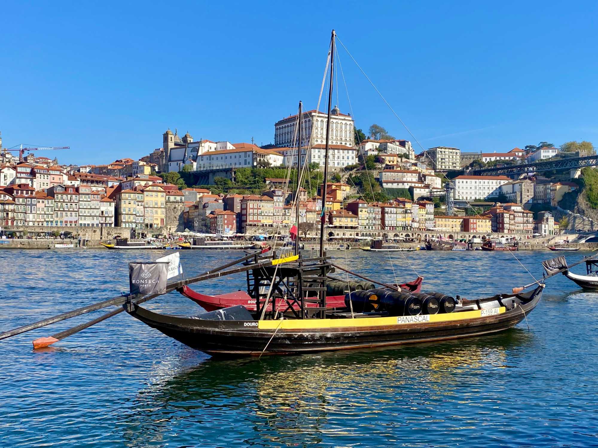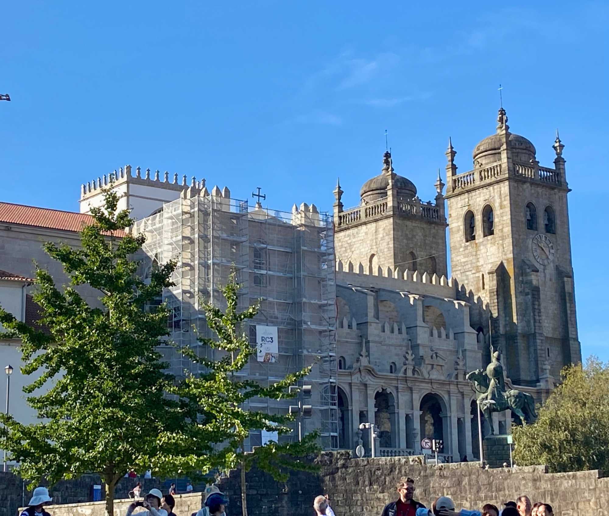 Nous avons débuté notre balade à pied dans le quartier historique de la Ribeira, avec ses ruelles étroites et pavées qui serpentent jusqu’aux rives du Douro. Ce quartier, classé au patrimoine mondial de l’UNESCO, déborde de vie avec ses cafés animés, ses petites boutiques et ses maisons aux façades ornées de faïences colorées. En chemin, nous avons admiré la fontaine du Lion et découvert la plus ancienne gare de Porto, puis nous avons poursuivi vers deux joyaux emblématiques: L’église dos Clérigos et sa tour de 76 mètres (érigée à l’emplacement du tout premier fort de la ville), ainsi que la cathédrale de Porto, datant du XIIᵉ siècle — deux magnifiques exemples de l’architecture religieuse portugaise. 🔔