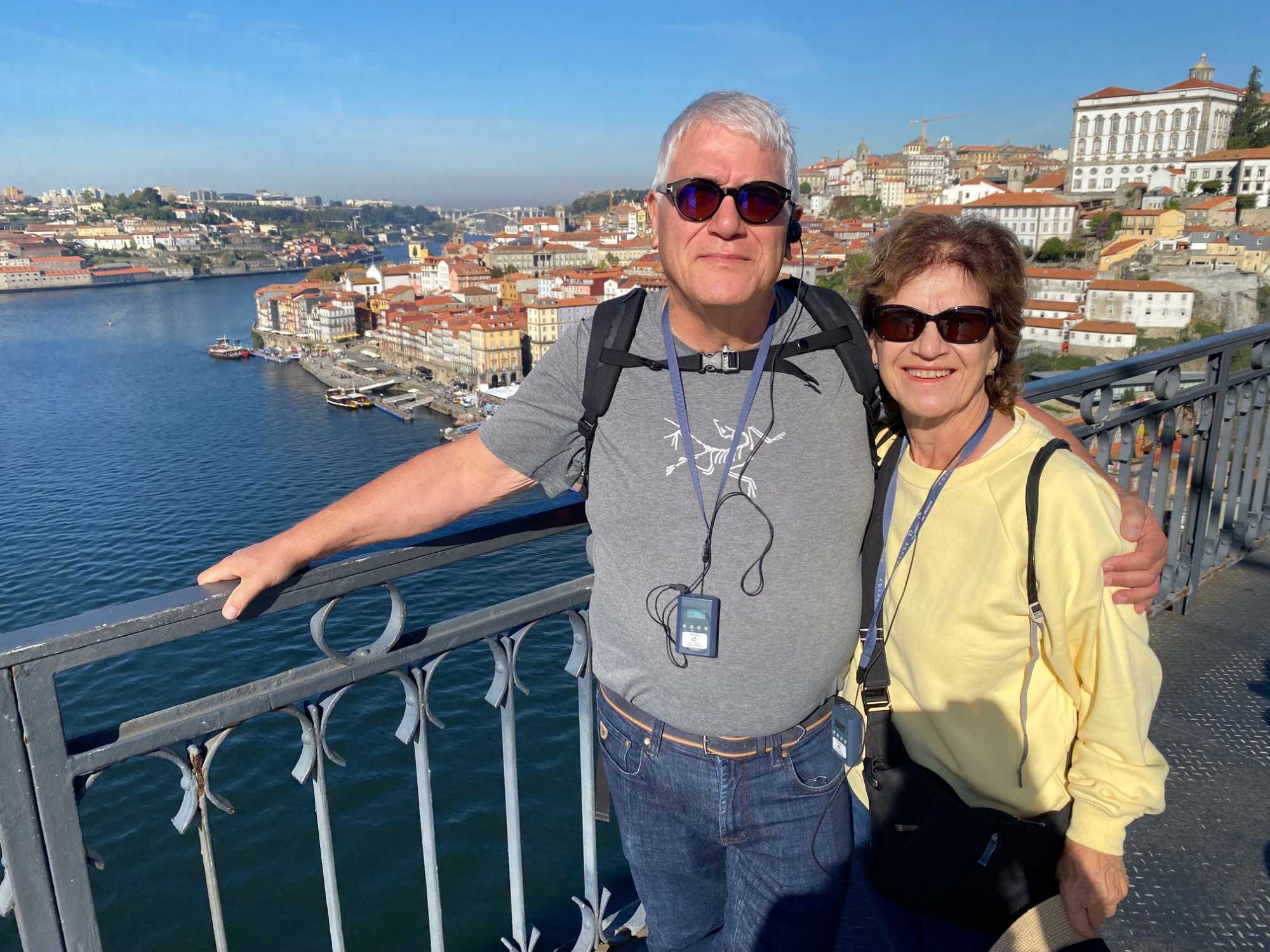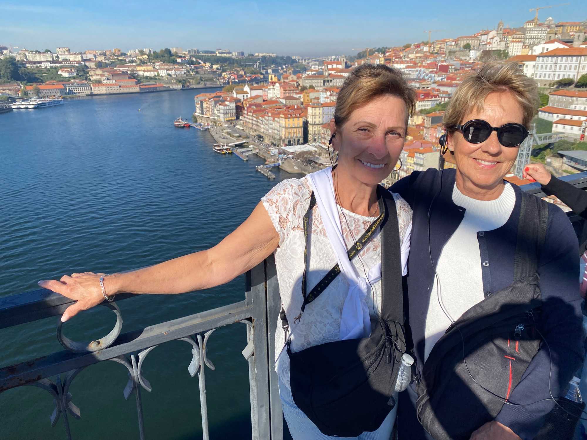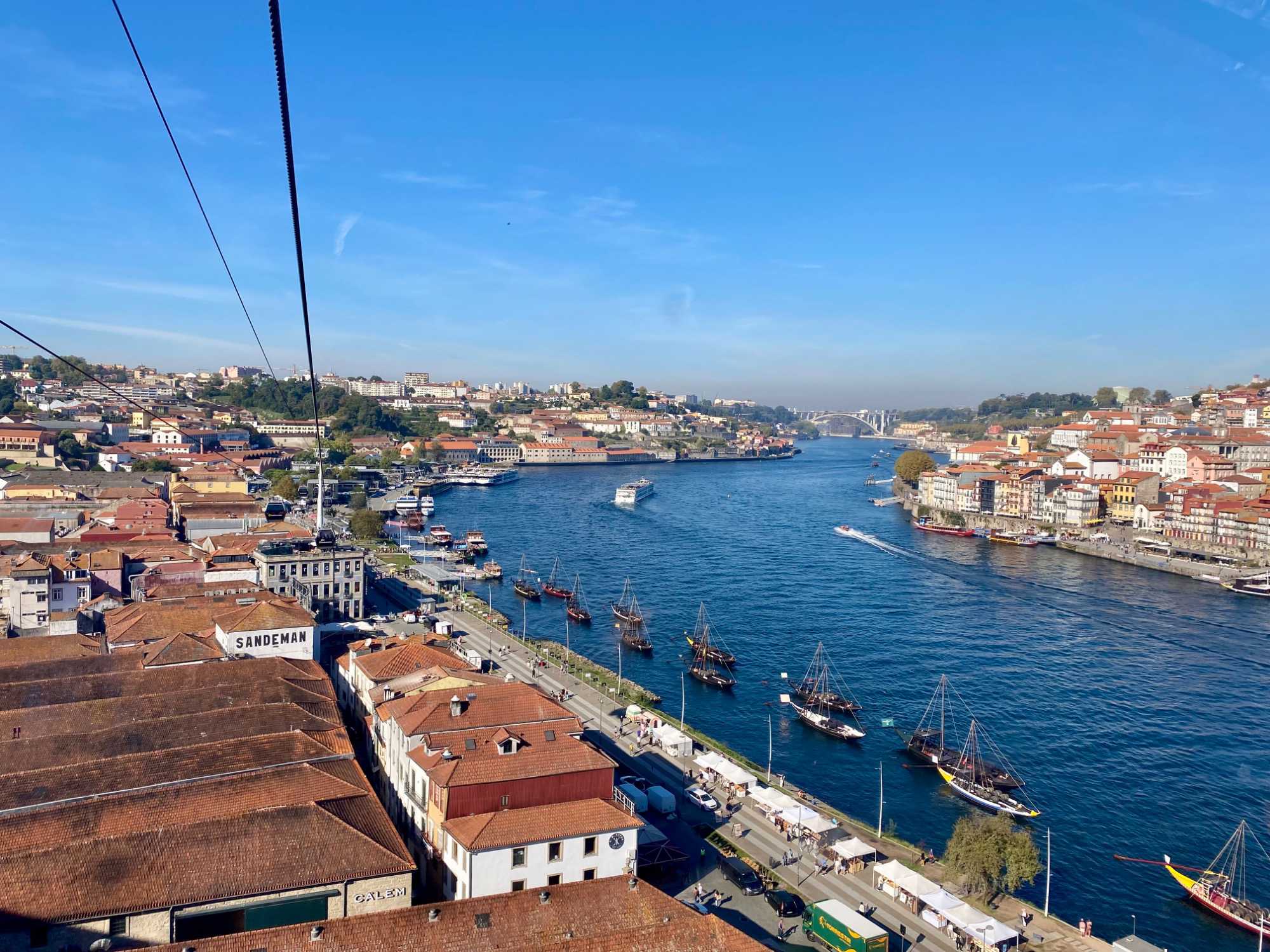 Nous avons ensuite traversé le pont Dom Luís I, chef-d’œuvre de l’ingénieur Théophile Seyrig, ancien collaborateur de Gustave Eiffel. Sa structure métallique à deux niveaux est impressionnante et offre une vue spectaculaire sur le fleuve et les toits colorés de Porto — un panorama digne d’une carte postale que plusieurs ont immortalisé en photo. De l’autre côté du Douro, à Vila Nova de Gaia, nous avons emprunté le Teleférico de Gaia, un parcours d’environ 600 mètres suspendu à près de 60 mètres de hauteur. La vue y était à couper le souffle, bien que certains voyageurs aient préféré garder les yeux rivés au plancher plutôt que d’admirer le paysage à l’extérieur! 🚡