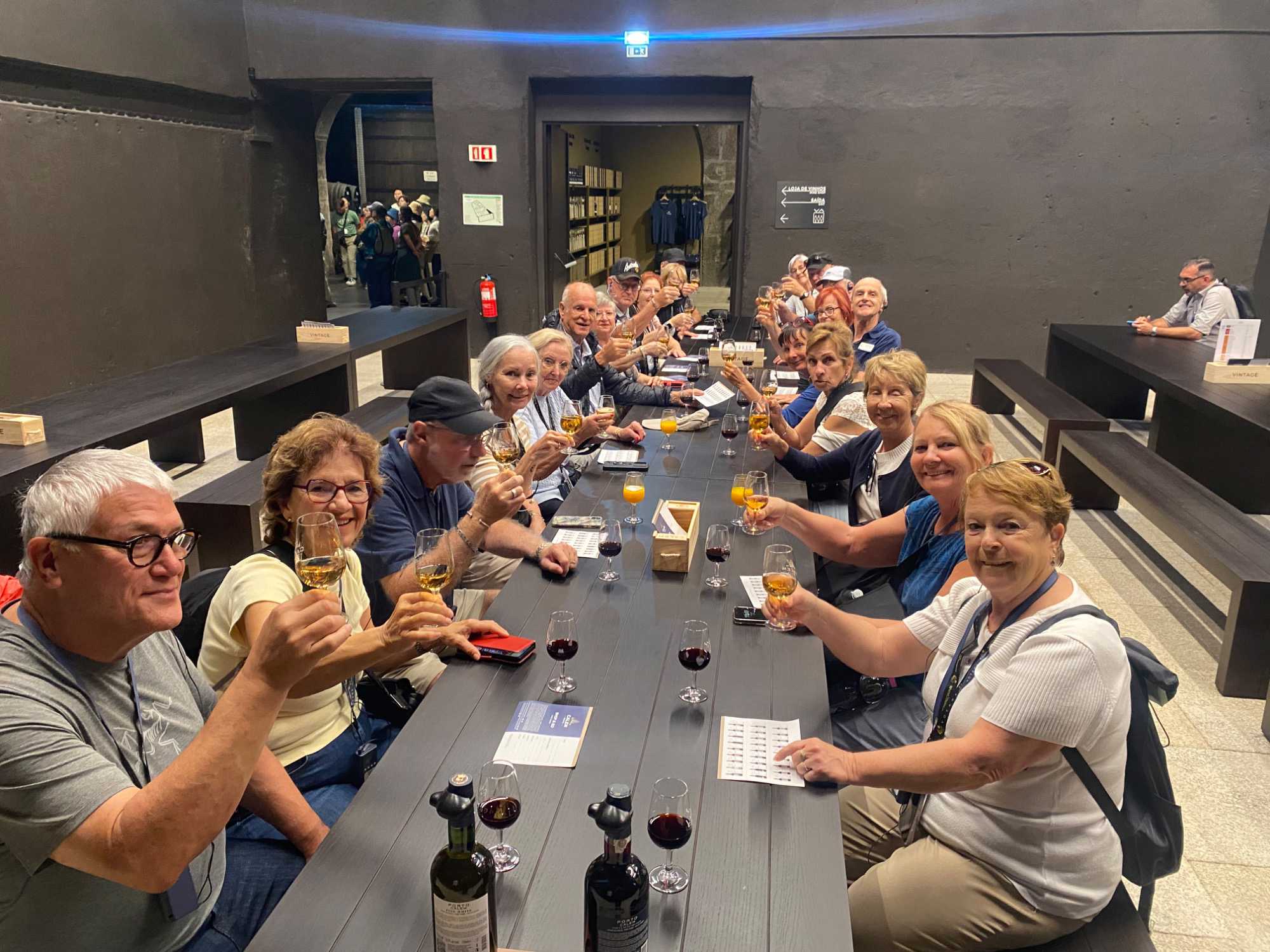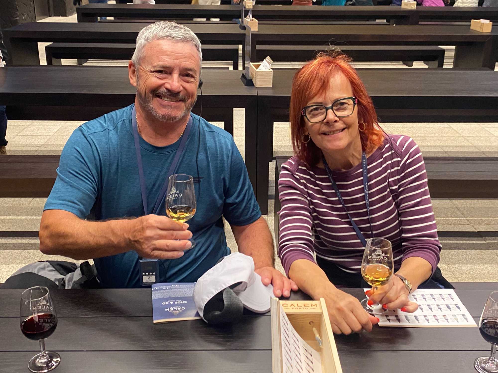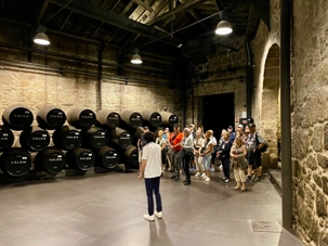 Notre excursion nous a ensuite menés à la célèbre maison de production de porto: Calem. Nous y avons découvert les secrets de la fabrication de ce vin fortifié qui fait la renommée de la région depuis des siècles. Le porto, qu’il soit rouge, blanc ou rosé, est élaboré à partir de raisins récoltés dans la vallée du Douro, où les vignes s’étendent sur des collines escarpées. Après la fermentation, le vin est vieilli dans des fûts de chêne avant d’être mis en bouteille. Nous avons eu la chance de déguster deux types de porto, un blanc et un rouge, qui ont été particulièrement appréciés par tous. L’atmosphère était joyeuse, et quelques membres de notre groupe ont profité de l’occasion pour acheter des bouteilles en souvenir. 🍷