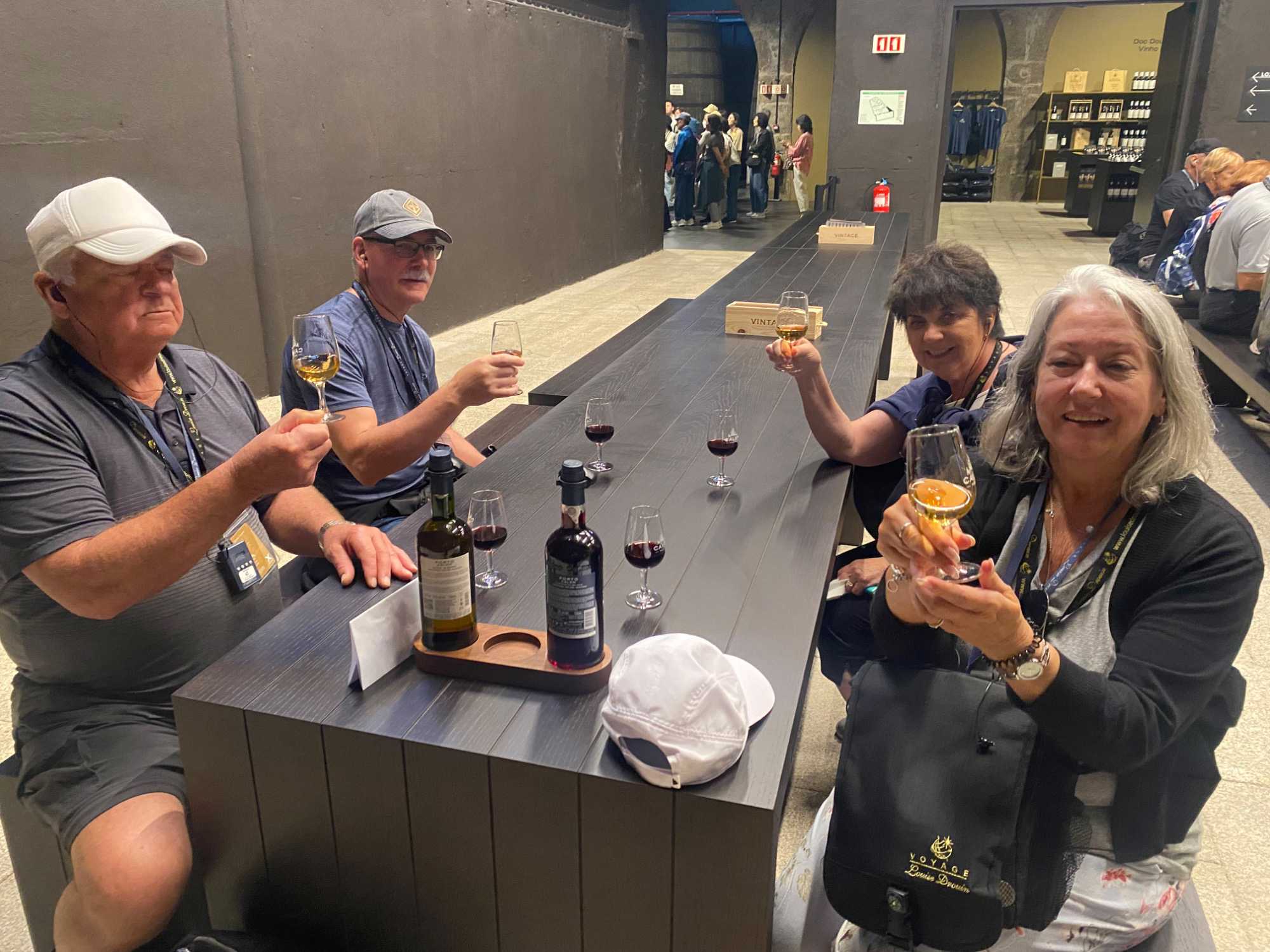 Nous avons quitté Porto avec des images plein les yeux — un véritable coup de cœur pour plusieurs d’entre nous. Les voyageurs sont repartis avec un petit cadeau de Juliane et Martin: trois mini bouteilles de porto Calem, un souvenir gourmand de cette belle journée! Le navire a levé l’ancre à 19h, et les voyageurs ont ensuite savouré le souper avant de profiter des nombreuses commodités et activités offertes à bord. 🍸