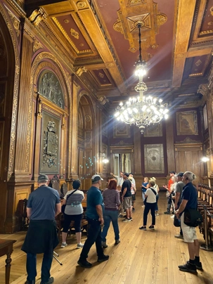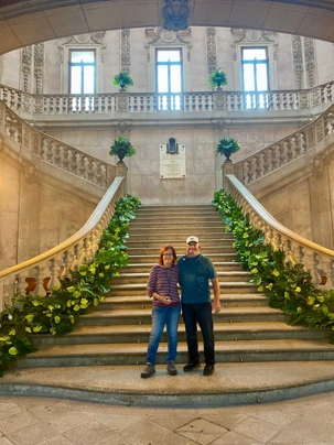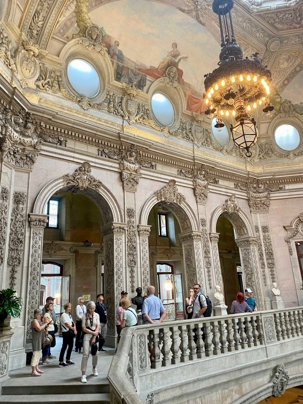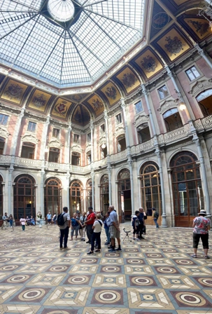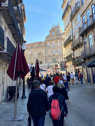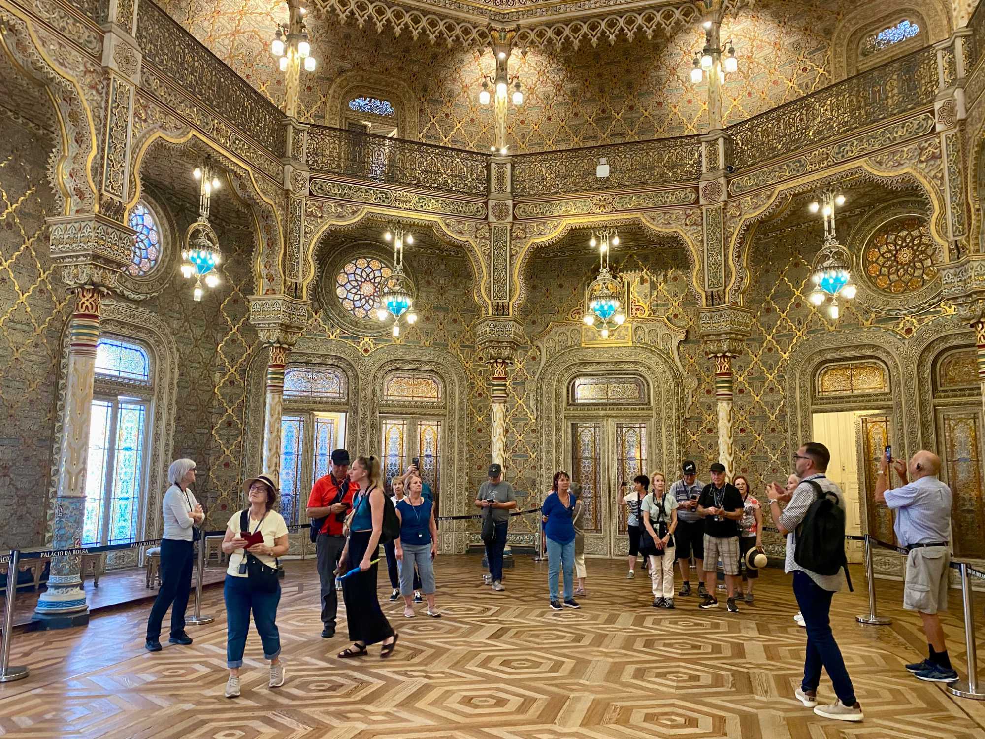 Les voyageurs ont ensuite eu un moment pour magasiner et faire le plein de souvenirs. Notre excursion s’est terminée par la visite du somptueux Palais de la Bourse. Ses salons richement décorés, aux styles néomanuélin et néo-arabe, nous ont impressionnés. Ce bâtiment est un symbole de l’histoire commerciale prospère de Porto, un véritable joyau d’architecture.