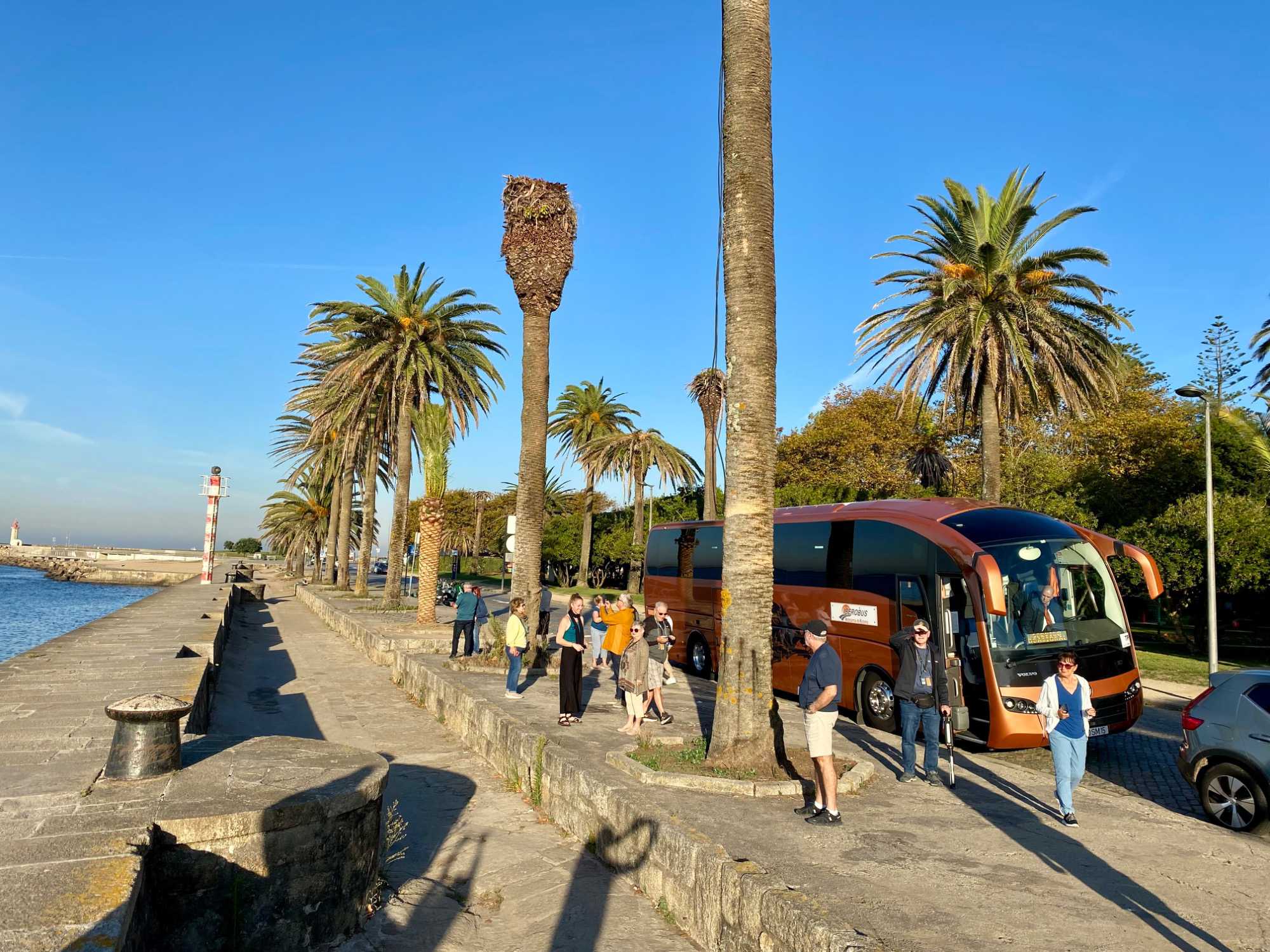 Nous sommes encore une fois choyés par Mère Nature avec une superbe journée ensoleillée à 24 degrés. À notre arrivée au port de Leixões, notre guide local francophone Carlos (une véritable encyclopédie sur deux pattes!) et notre chauffeur Nelson nous attendaient chaleureusement. La journée a débuté par un tour panoramique en autocar à travers le quartier de Foz do Douro, là où le fleuve rencontre l’océan Atlantique. Nous avons longé les plages dorées et aperçu les anciens châteaux fortifiés qui bordent cette zone paisible, offrant une vue splendide sur l’horizon marin. 🌊