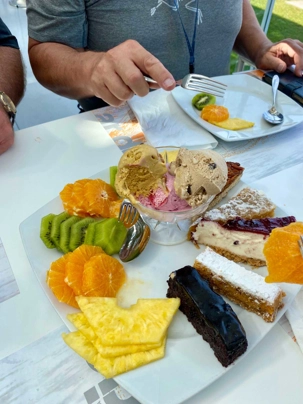 Pour le dîner, nous nous sommes installés dans un restaurant offrant une vue spectaculaire sur le Douro et la Vieille Ville. Au menu, un plat typiquement portugais: le Bife à Cavalo, un steak surmonté d’un œuf au plat et accompagné de frites. Le tout était servi avec du vin à volonté et une sélection de desserts typiques, dont une variété de gâteaux et de fruits. Le sorbet au citron a d’ailleurs été particulièrement apprécié par certains! 😉