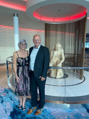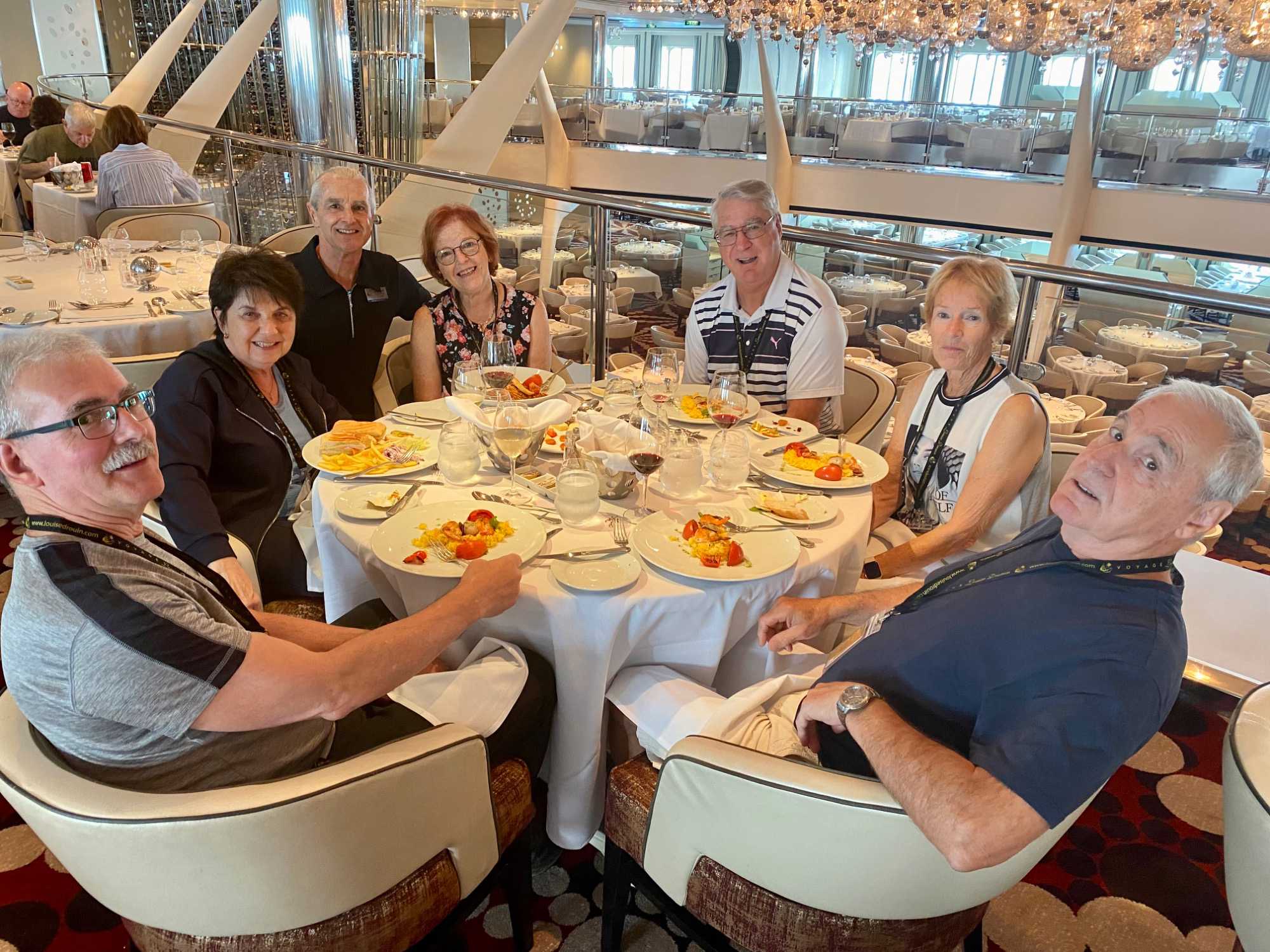 Au souper, la majorité des voyageurs se sont régalés avec le traditionnel homard, toujours servi lors de la soirée du capitaine. 🦞 Certains ont même eu la chance de rencontrer notre capitaine Michael Karatzas et de poser avec lui pour une photo souvenir. Le saviez-vous? Capitaine Michael a été nommé capitaine de l’année chez Celebrity?! Nous sommes vraiment entres de bonnes mains!