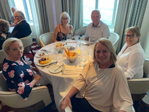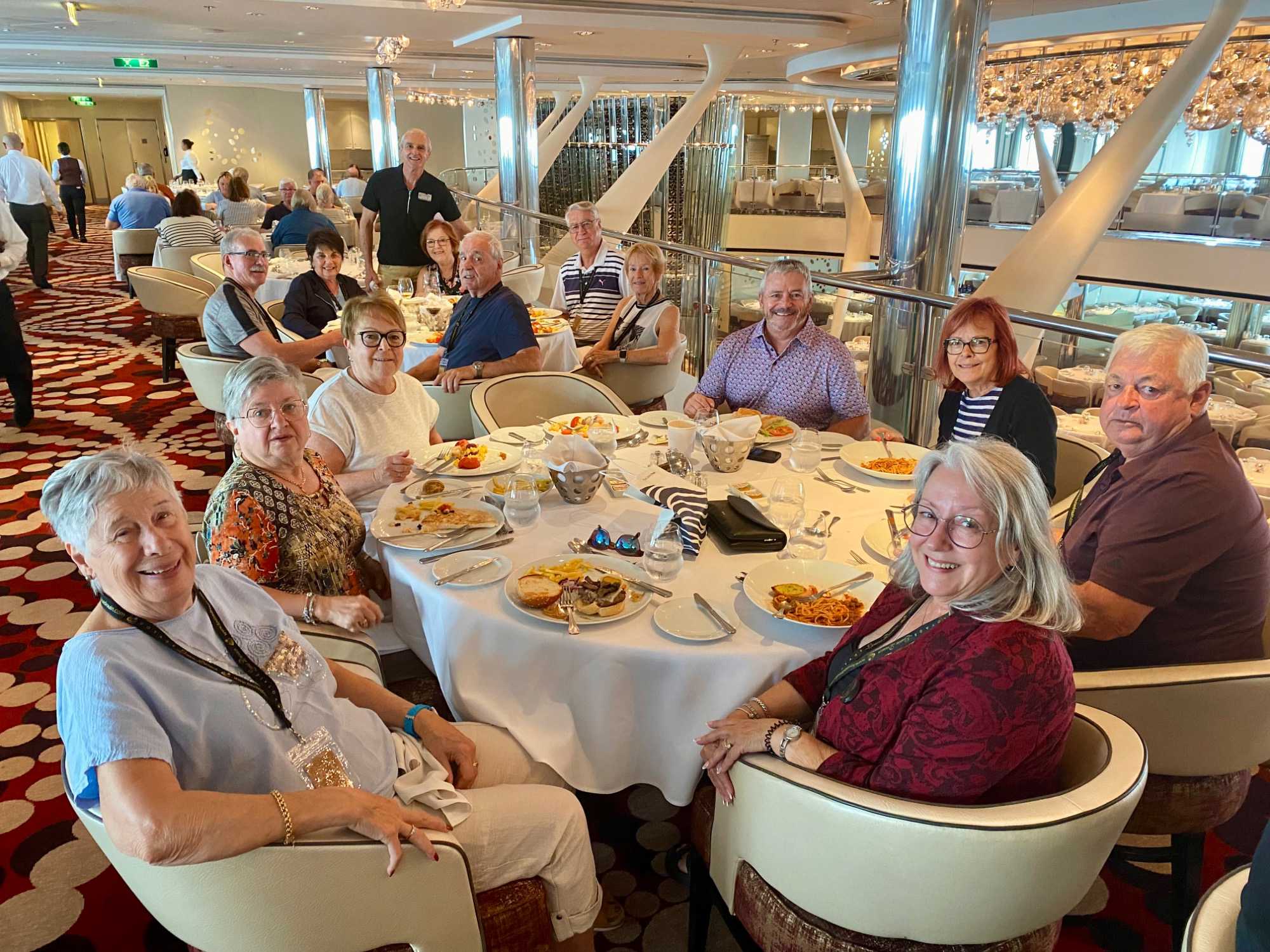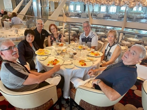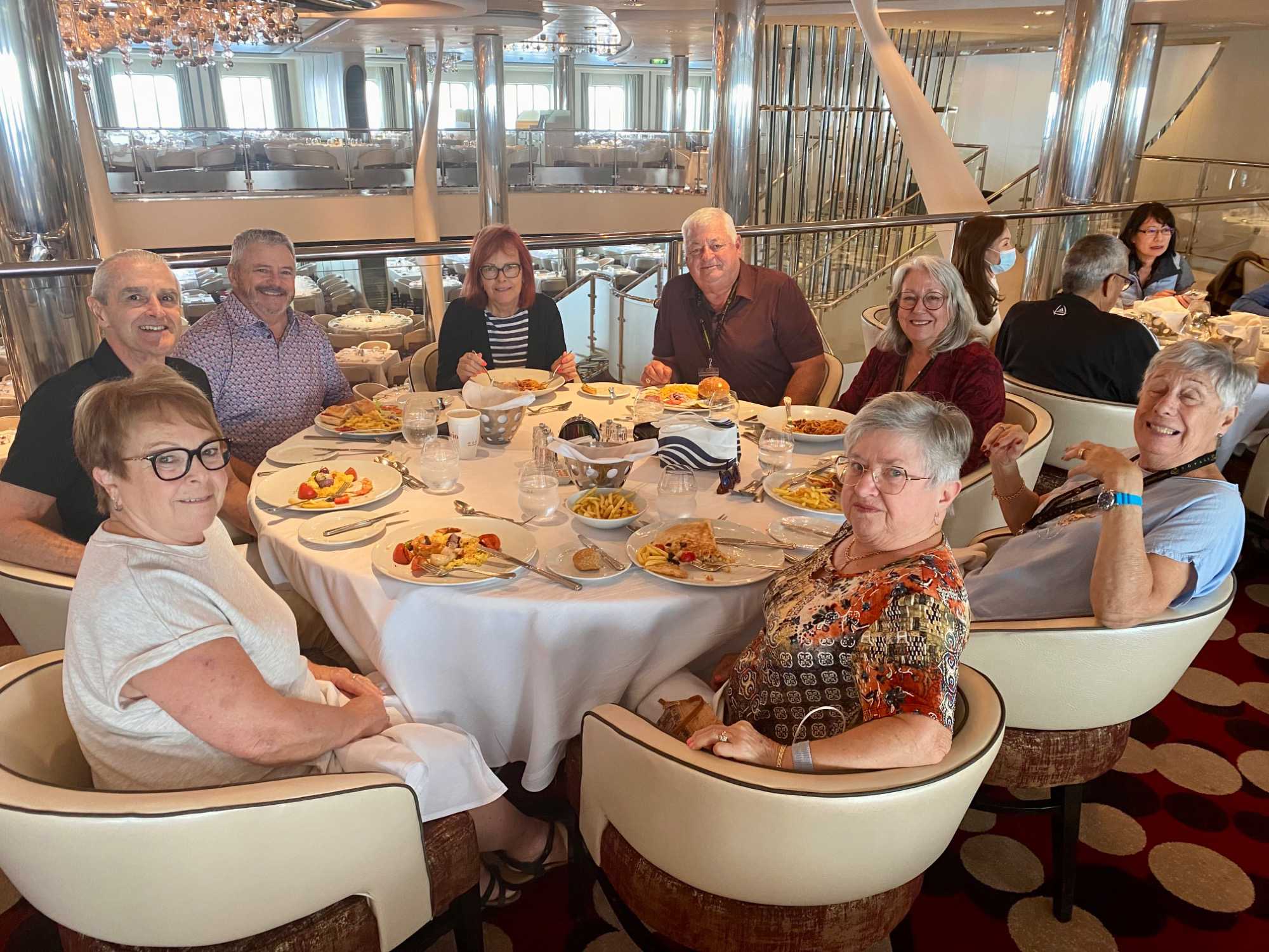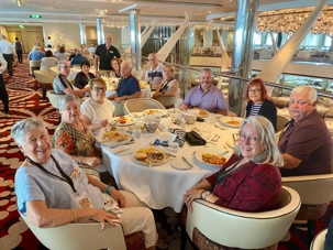 À midi, nous nous sommes retrouvés pour un dîner communautaire dans la salle à manger du navire. Dans une ambiance conviviale, nous avons partagé notre repas ensemble. C’était l’occasion parfaite pour échanger des anecdotes et continuer de tisser des liens entre nous. En après-midi, certains savourent une petite sieste, d’autres s’offrent un bain de soleil près de la piscine, d’autres en profitent pour faire du magasinage pour utiliser leur généreux crédit à bord, tout en bénéficiant de toutes les activités que le navire offre à la satisfaction de tous! ✨