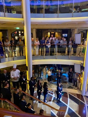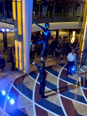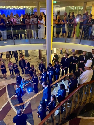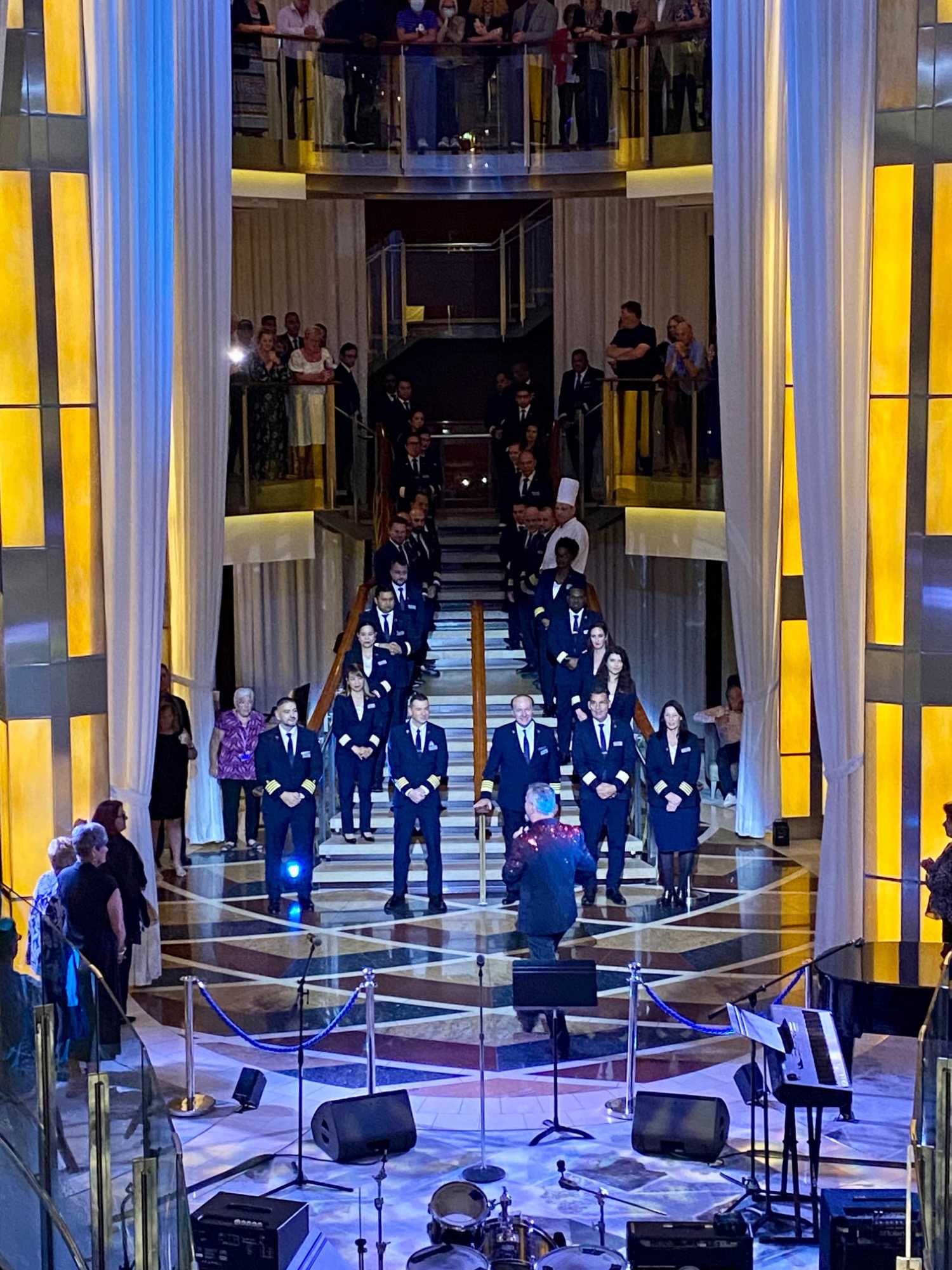 En soirée, tous les membres de l’équipage ont été présentés avec éclat dans le hall principal, sous les applaudissements des passagers. Le tout a été suivi d’un spectacle d’acrobaties, une belle façon de célébrer notre équipage exceptionnel! Pour couronner cette mémorable soirée, le spectacle de magie et d’illusions de Matt McGurk nous en a fait voir de toutes les couleurs! Avec ses tours de cartes impressionnants et ses numéros d’illusions grandioses, il a su captiver et émerveiller tout le public du début à la fin. 🎩