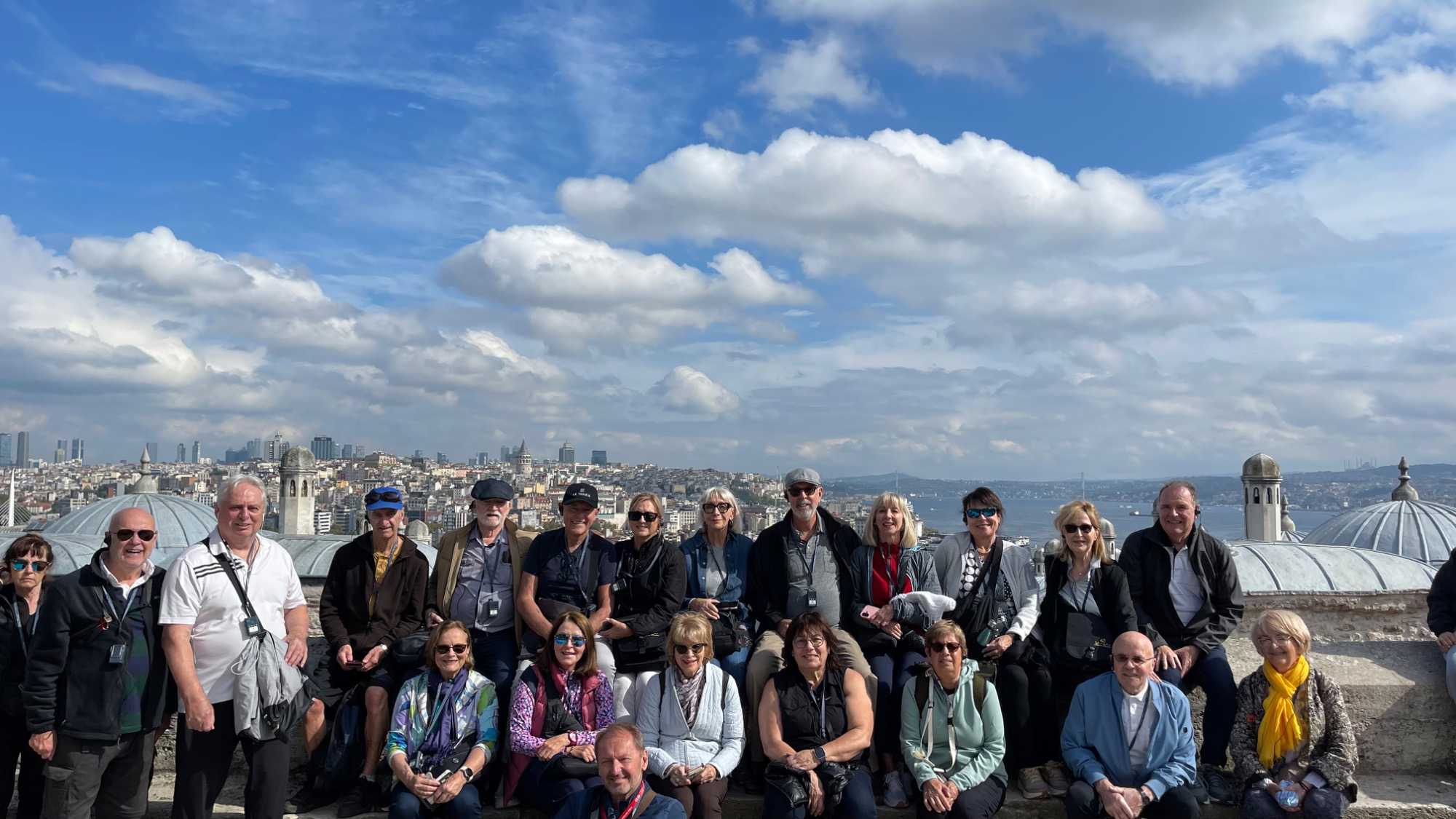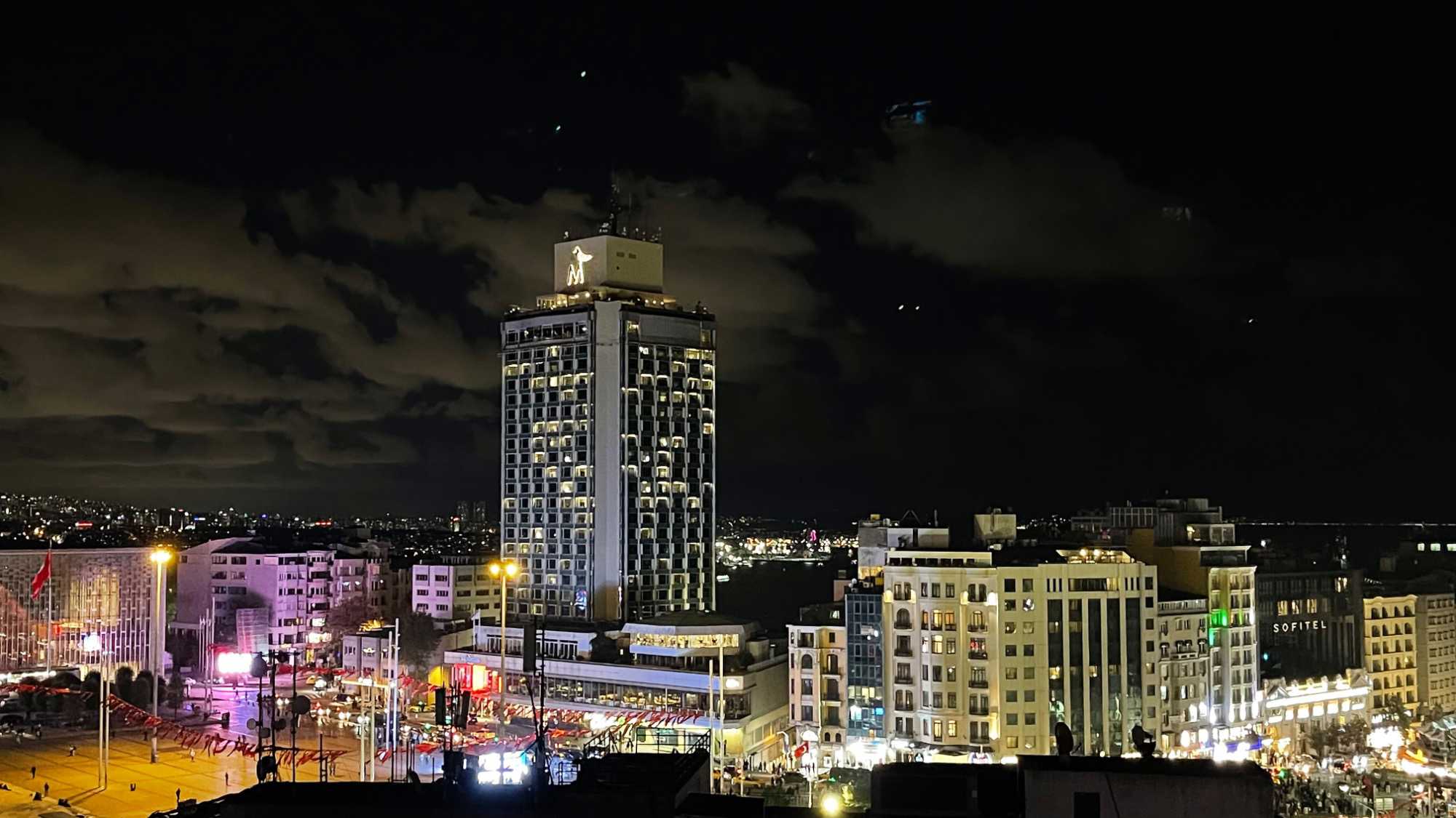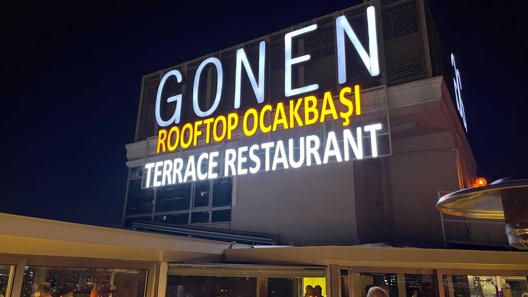 Nous bravons la circulation, si vous pensez que Montréal et Québec subissent les coups de la circulation venez faire un tour à Istanbul, pour nous rendre à l’hôtel pour une très courte période et partons, à pied, pour notre souper de groupe. Le restaurant, le Gonen, est situé au dernier étage, 11e, d’un ’hôtel. La vue sur la ville illuminée est magnifique avec la lune en fond de toile.