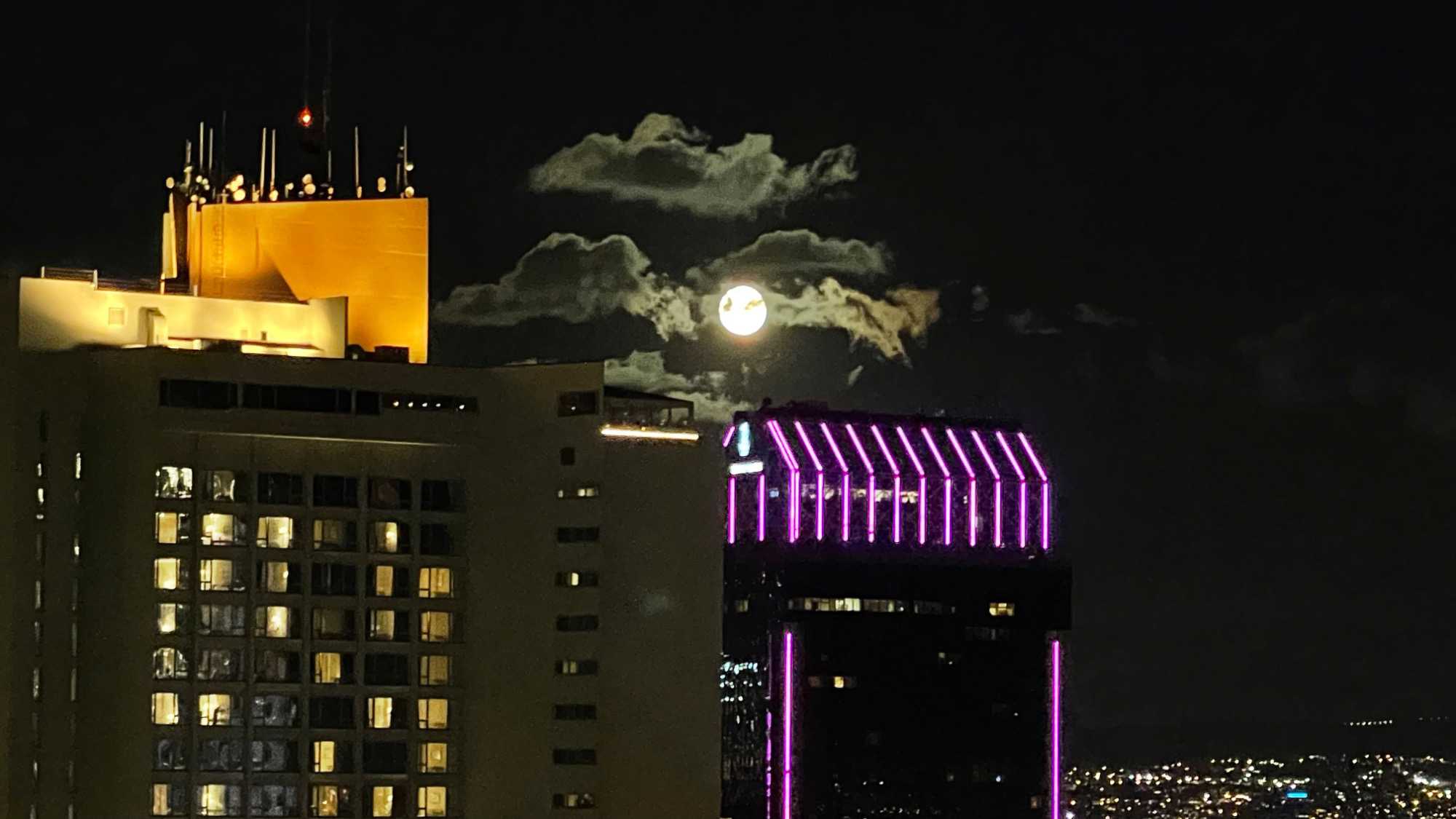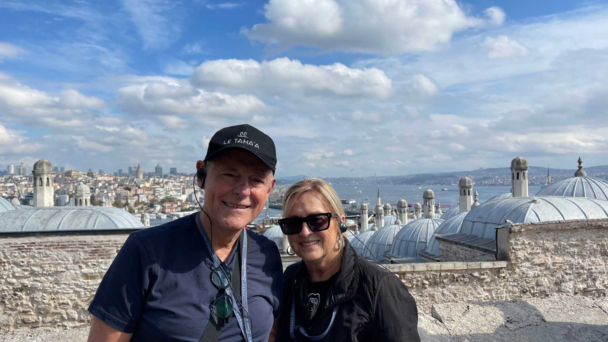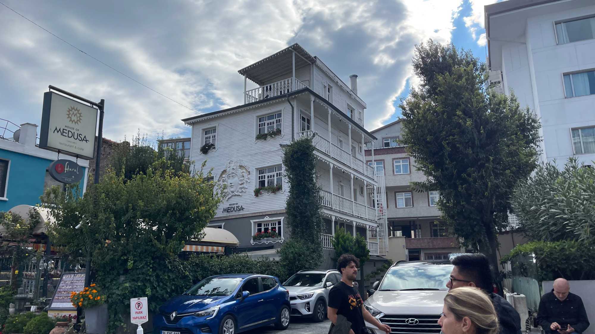 Nous bravons la circulation, si vous pensez que Montréal et Québec subissent les coups de la circulation venez faire un tour à Istanbul, pour nous rendre à l’hôtel pour une très courte période et partons, à pied, pour notre souper de groupe. Le restaurant, le Gonen, est situé au dernier étage, 11e, d’un ’hôtel. La vue sur la ville illuminée est magnifique avec la lune en fond de toile.