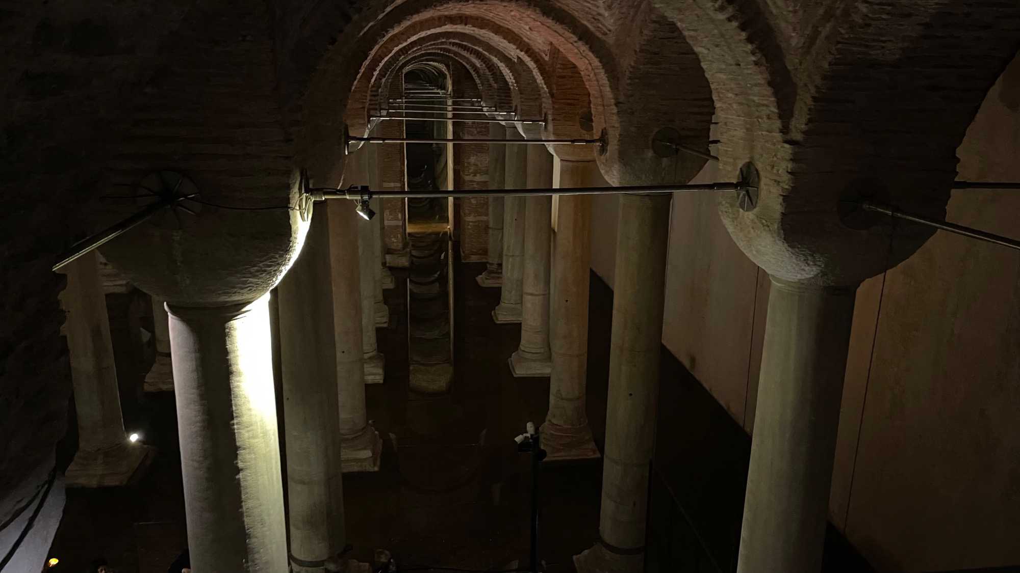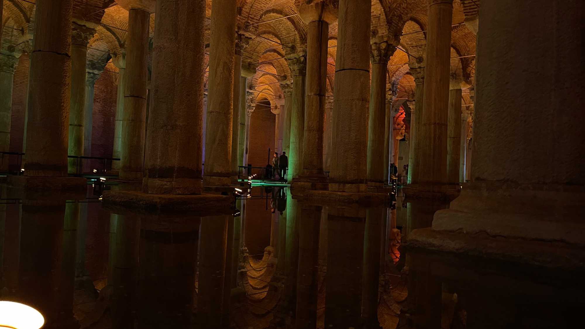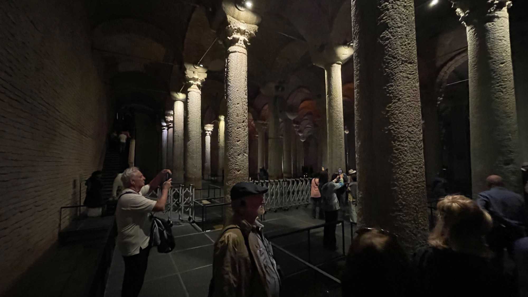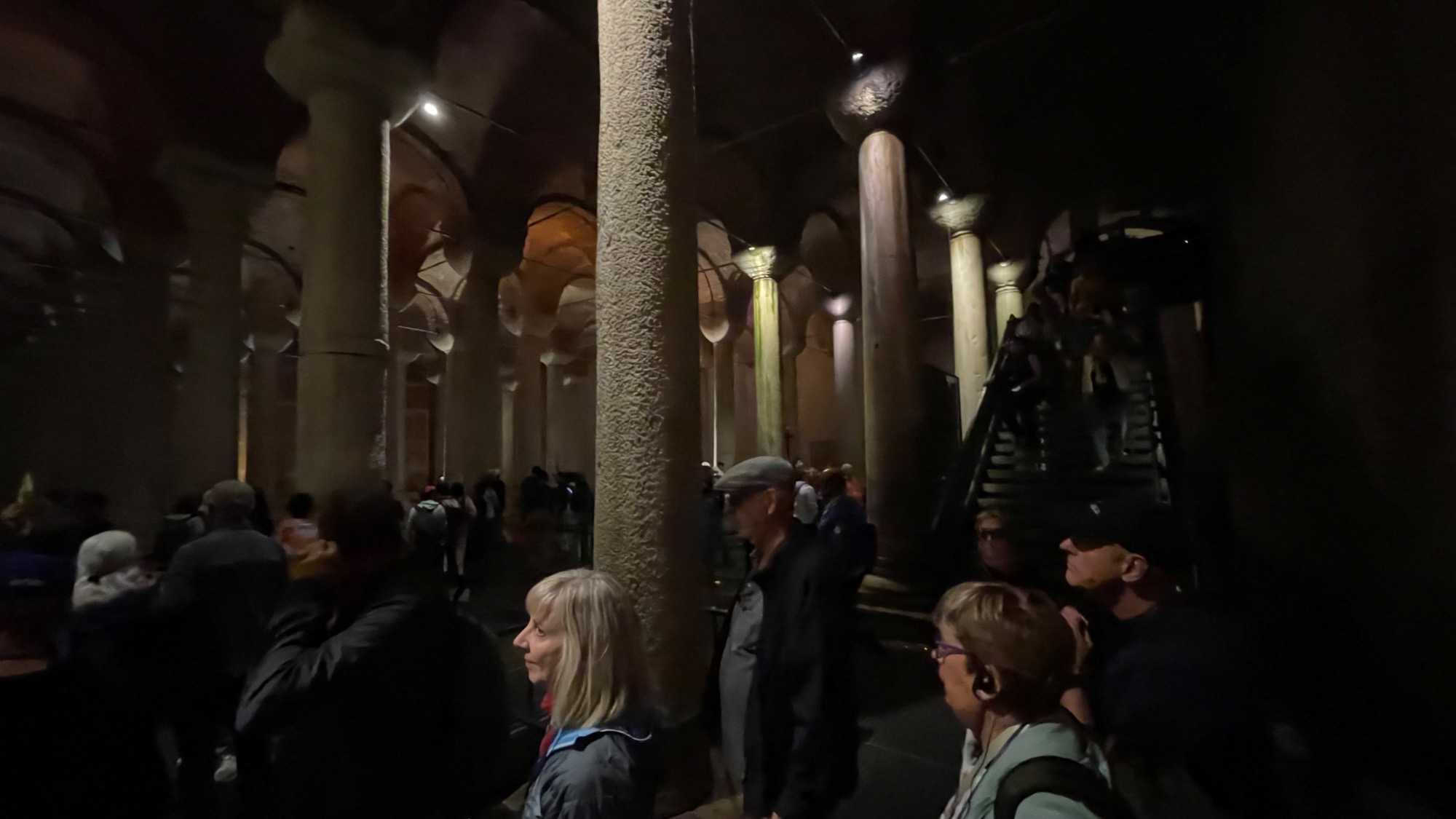 La citerne, c’est une gigantesque citerne souterraine à l’époque de Constantinople, la capitale de l'Empire Byzantin, dont elle est l'un des monuments les plus spectaculaires encore visibles aujourd'hui. L'empereur Justinien créa un réservoir convenable pour l'été contenant les eaux en surabondance des autres saisons et sa capacité est estimée à 78 000 m3 d’eau. L'espace intérieur est subdivisé par 12 rangées de 28 colonnes en marbre, soit un total de 336 colonnes. Un jeu de lumière nous présente la Citerne Basilique de façon exceptionnelle. Encore là, il y avait un monde fou.