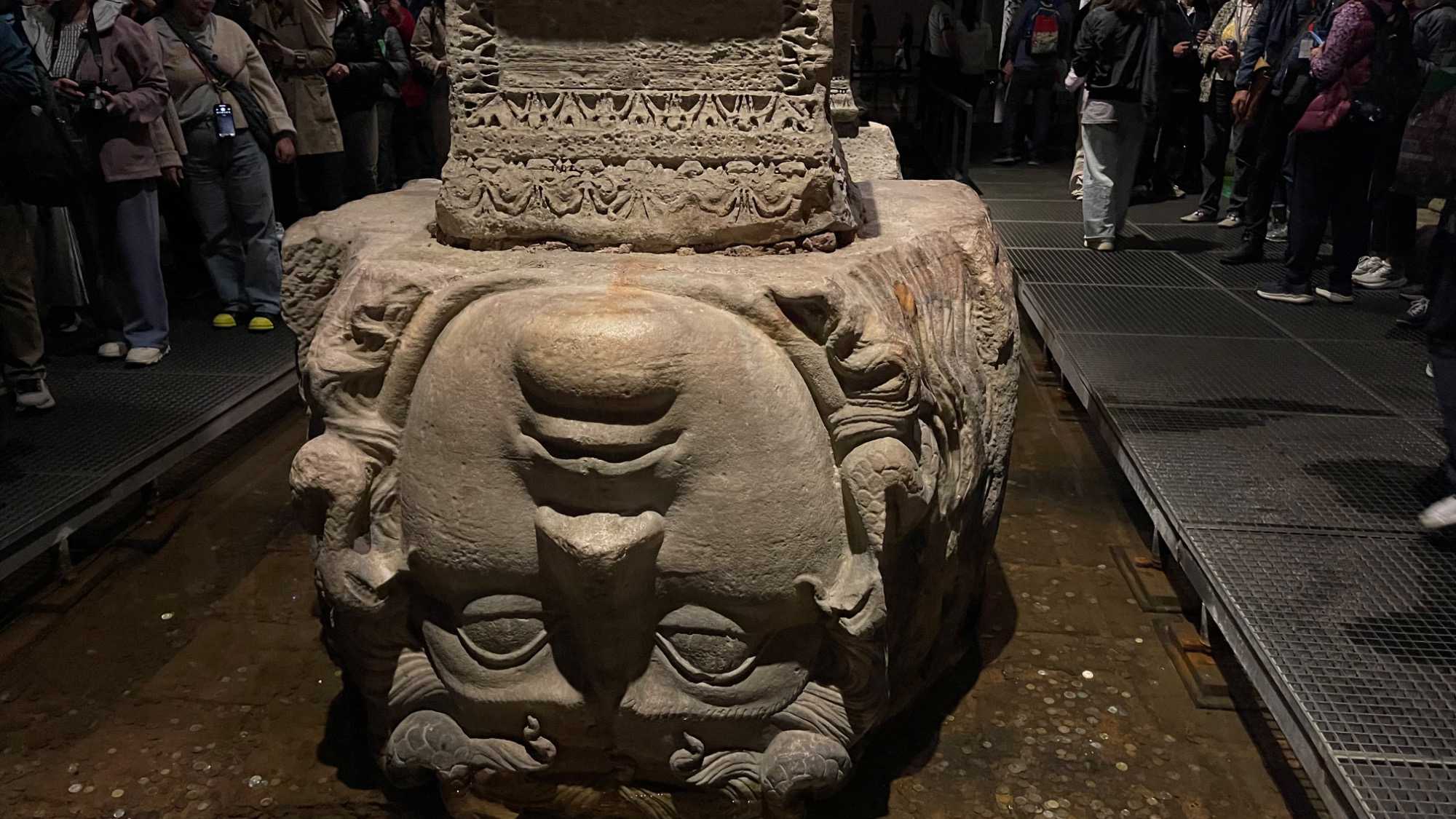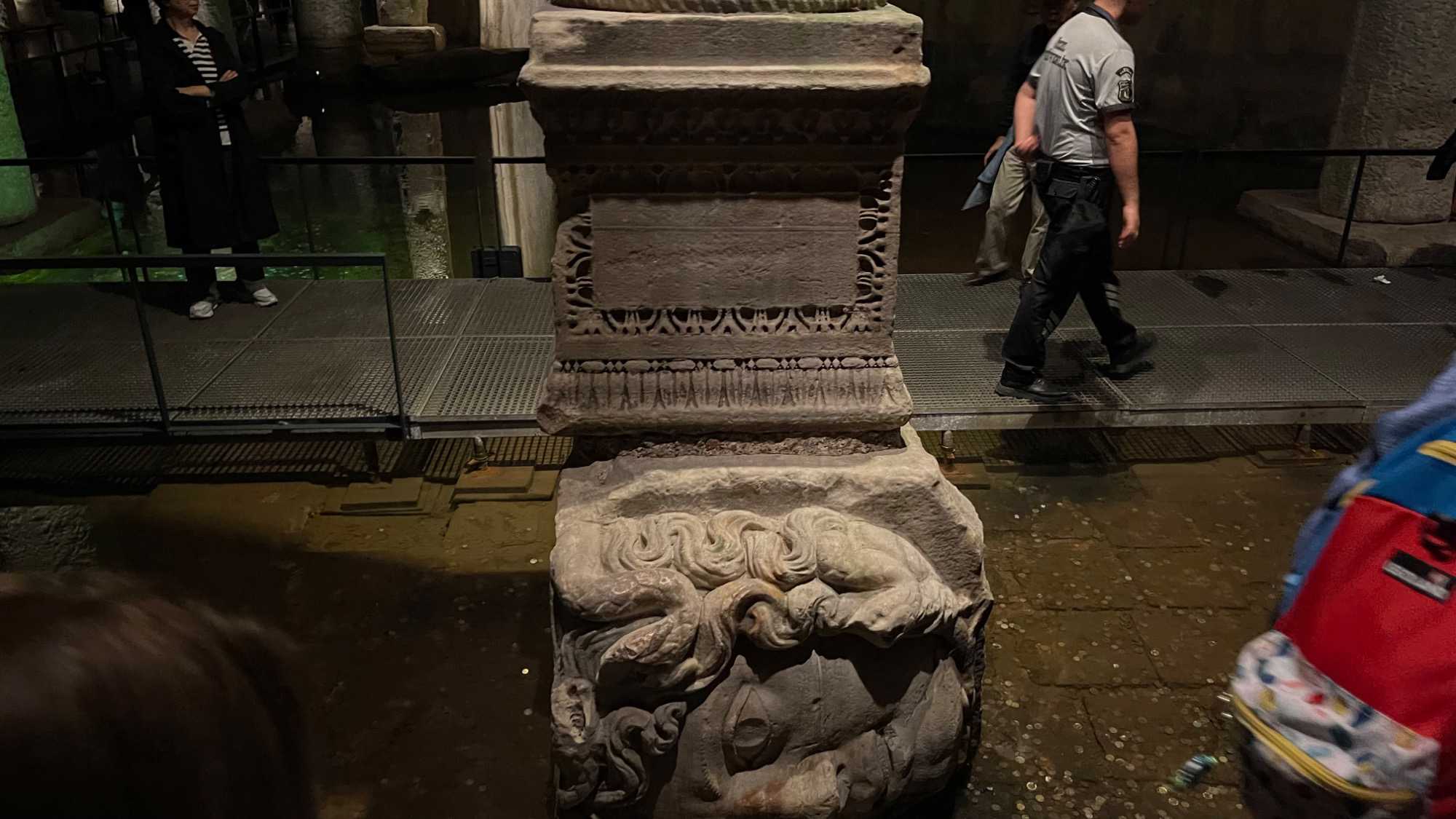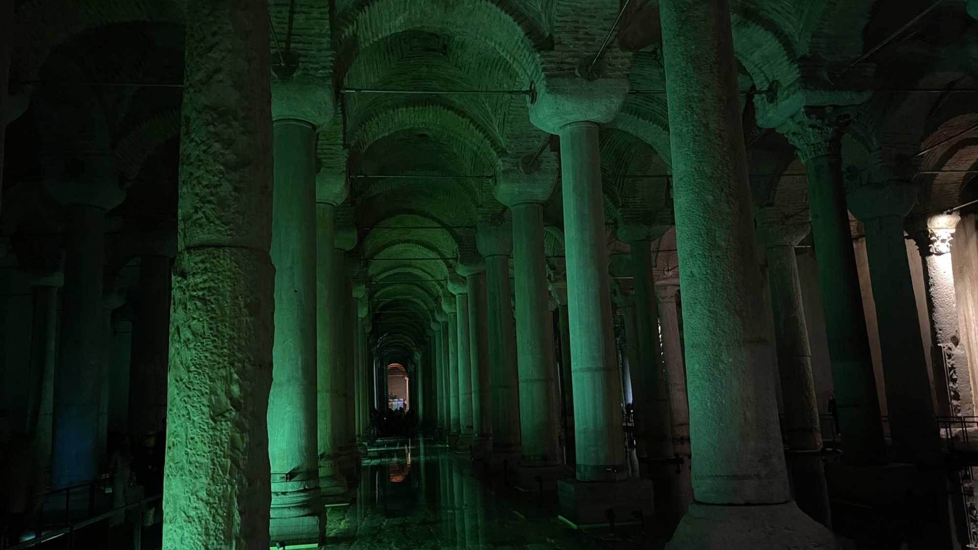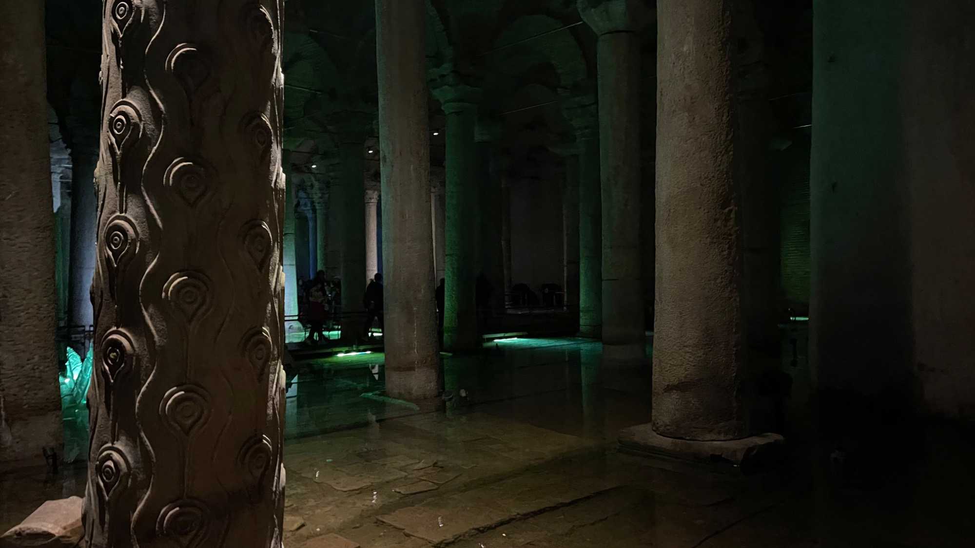 La citerne, c’est une gigantesque citerne souterraine à l’époque de Constantinople, la capitale de l'Empire Byzantin, dont elle est l'un des monuments les plus spectaculaires encore visibles aujourd'hui. L'empereur Justinien créa un réservoir convenable pour l'été contenant les eaux en surabondance des autres saisons et sa capacité est estimée à 78 000 m3 d’eau. L'espace intérieur est subdivisé par 12 rangées de 28 colonnes en marbre, soit un total de 336 colonnes. Un jeu de lumière nous présente la Citerne Basilique de façon exceptionnelle. Encore là, il y avait un monde fou.