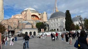 À l'origine basilique chrétienne, elle est construite au IVe siècle, puis reconstruite bien plus grande au VI siècle sous l’empereur byzantin. Elle est le plus important monument de l'architecture byzantine et demeure l'une des plus prestigieuses églises de la chrétienté jusqu'au XVe siècle. C’est magnifique et incroyable de voir tout le travail qui s’est fait, à l’époque.