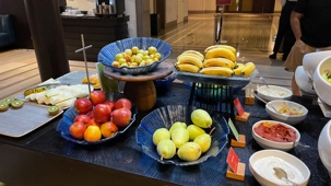 Il fait 130C au réveil ce matin, il pleut! Encore un excellent déjeuner à l’hôtel, je vous ai placé les photos du buffet 😉 vous verrez la variété qui s’offre à nous.