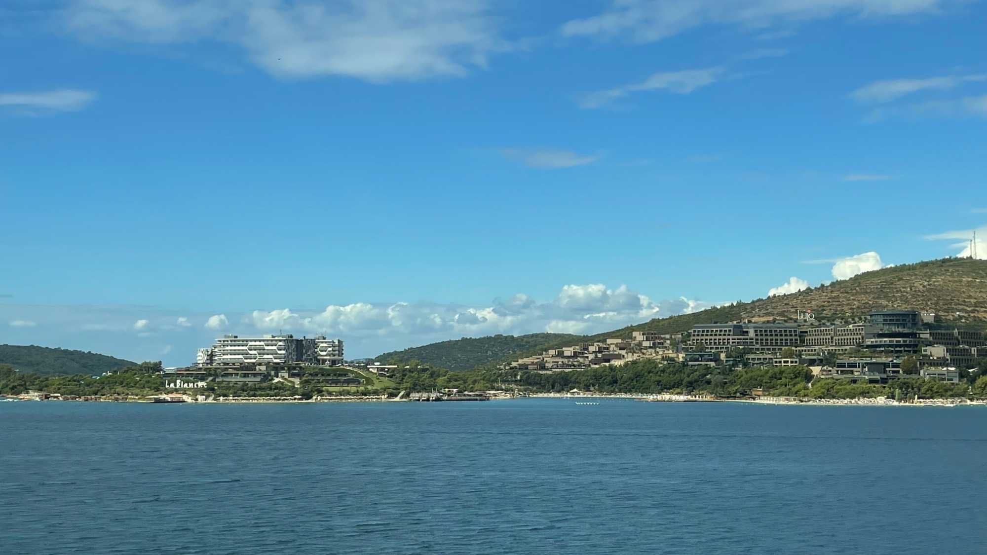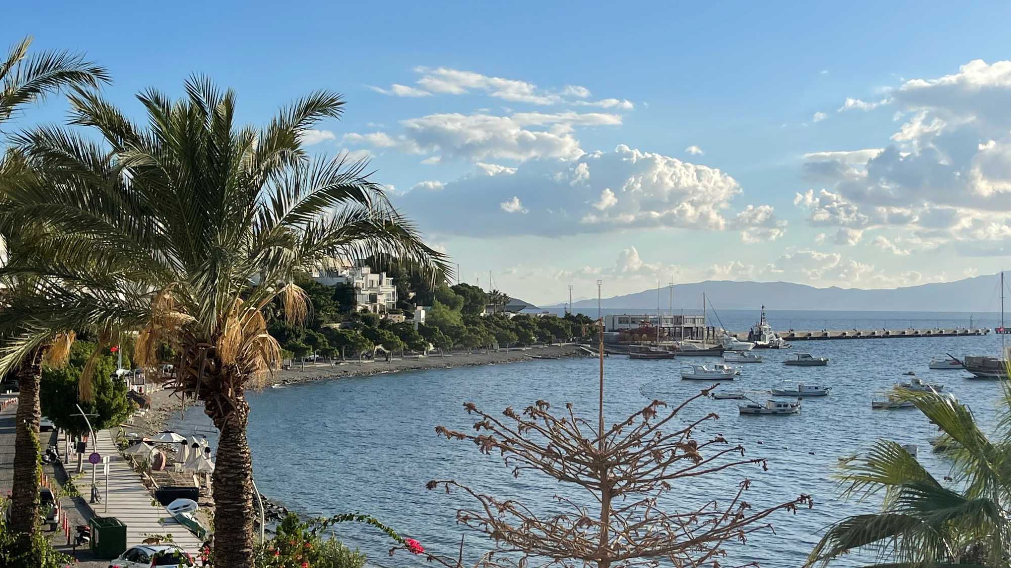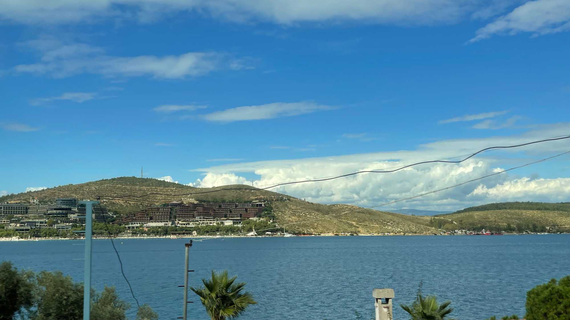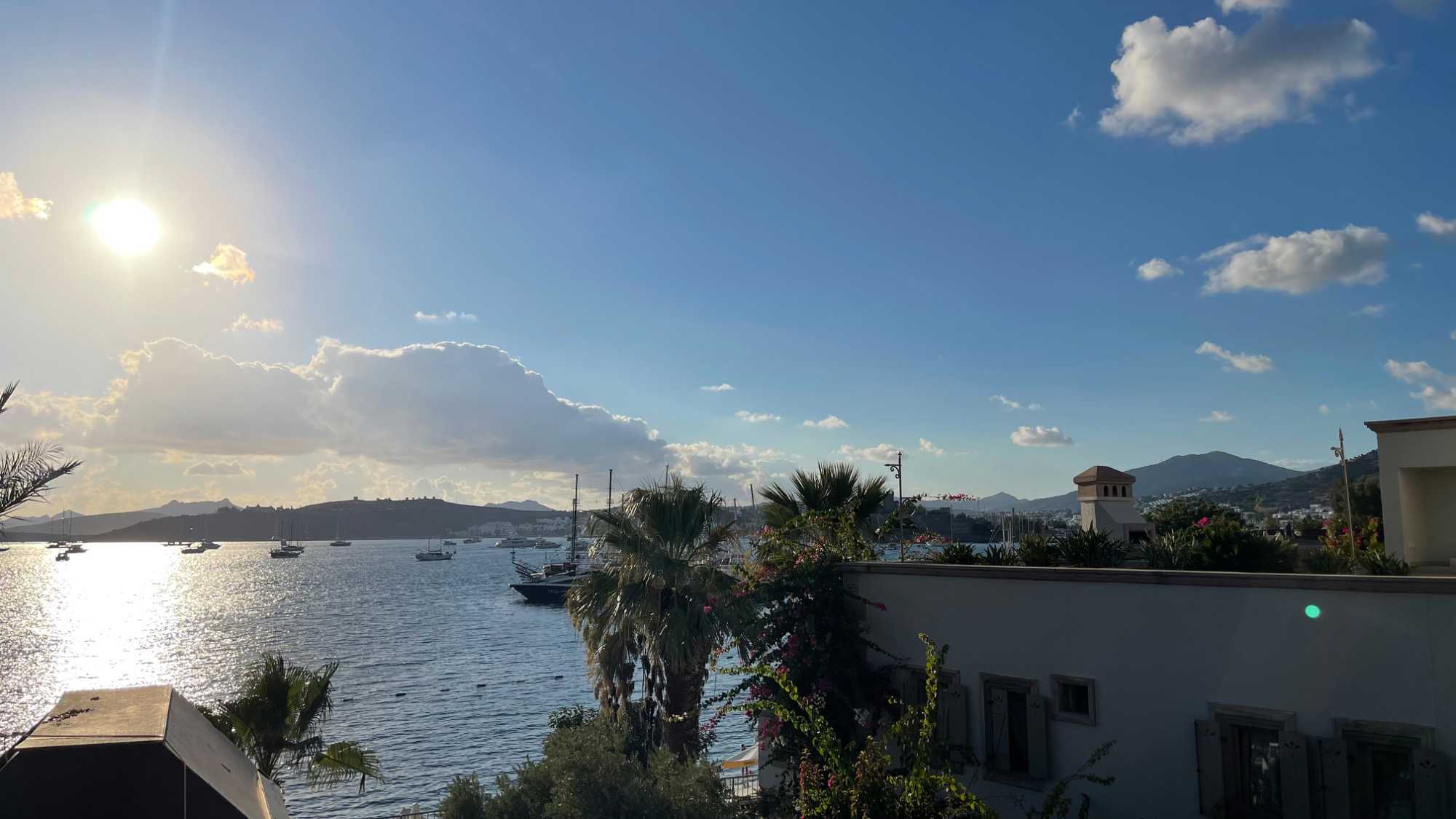 L’hôtel est bien situé et le décor est enchanteur, au bord du golfe de Gokova, golfe long et étroit de la mer Égée. Égée était l'un des rois d’Athènes dans la mythologie grecque. On peut apercevoir le château Saint-Pierre et plusieurs bateaux de plaisance ainsi que des goélettes (voilier équipé de deux mâts ou plus) en bois. Une promenade borde le golfe à gauche et à droite.