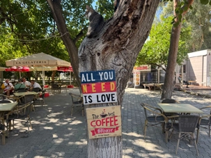 Il fait chaud à l’heure du dîner, le soleil est très présent à notre grand bonheur sauf que là, nous cherchons l’ombre. Nous allons dîner dans un restaurant du centre-ville tout près de site de Myra, à deux pas du musée du Père Noël, notre prochaine visite. Pizza turque ou kebab accompagné d’une bonne salade au menu.